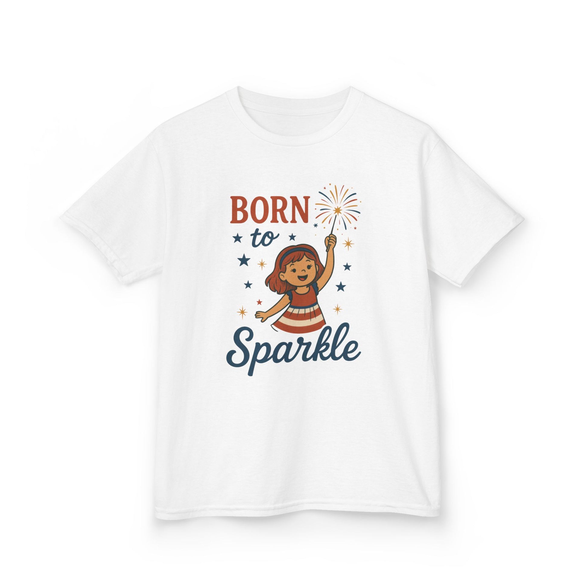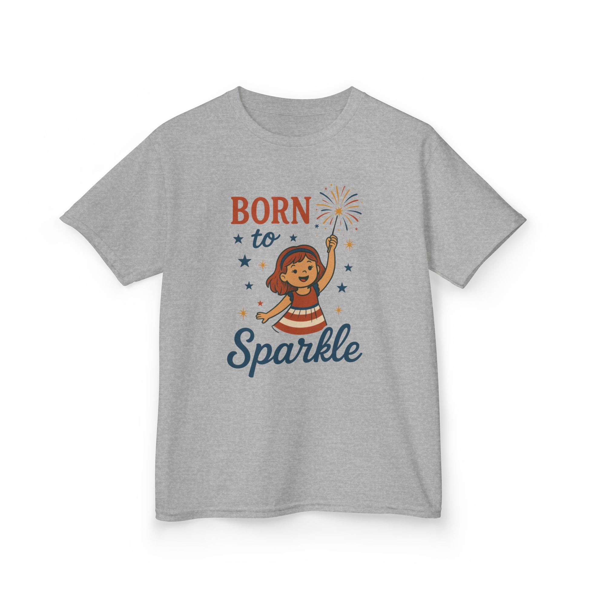 4th of July Shirt for Girls, Born to Sparkle Tee For Kids, Patriotic Fireworks Youth T-Shirt, Independence Day Outfit for Tween Girls