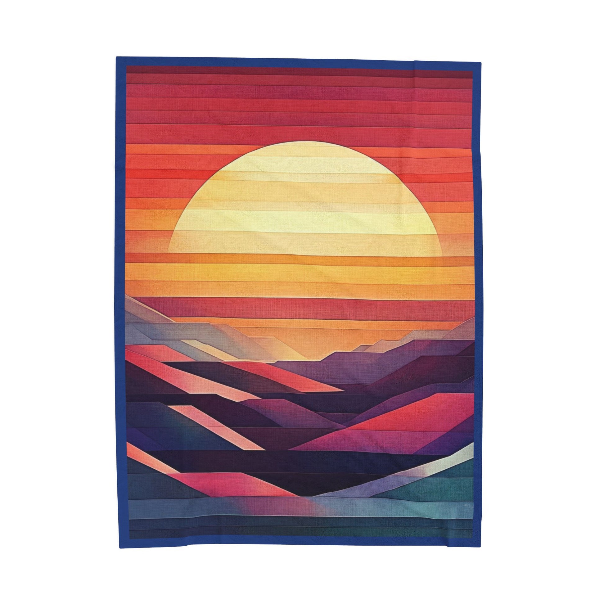 Abstract Sunset Mountain Velveteen Plush Blanket, Geometric Boho Landscape Throw Blanket, Warm Cozy Modern Art Home Decor Gift