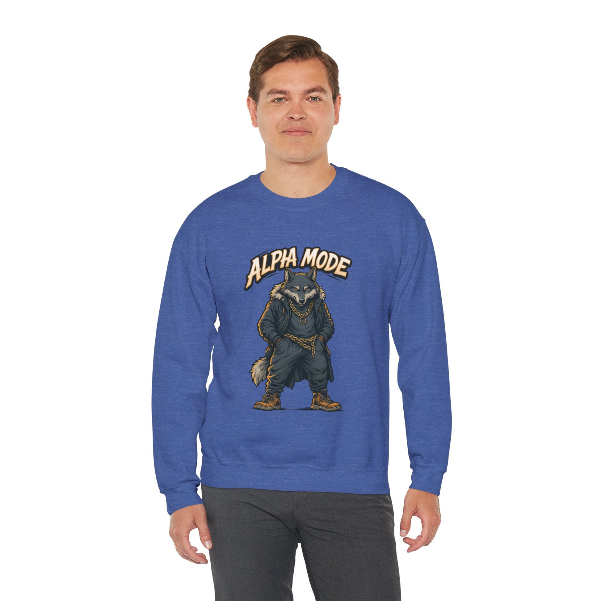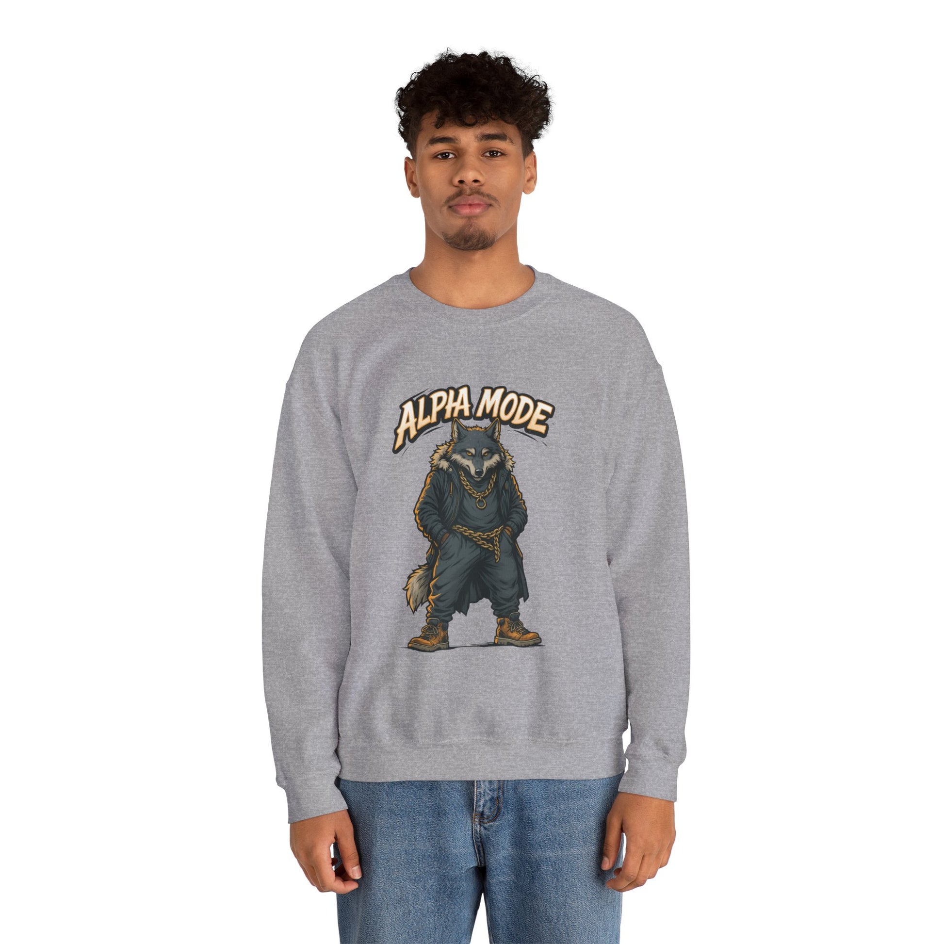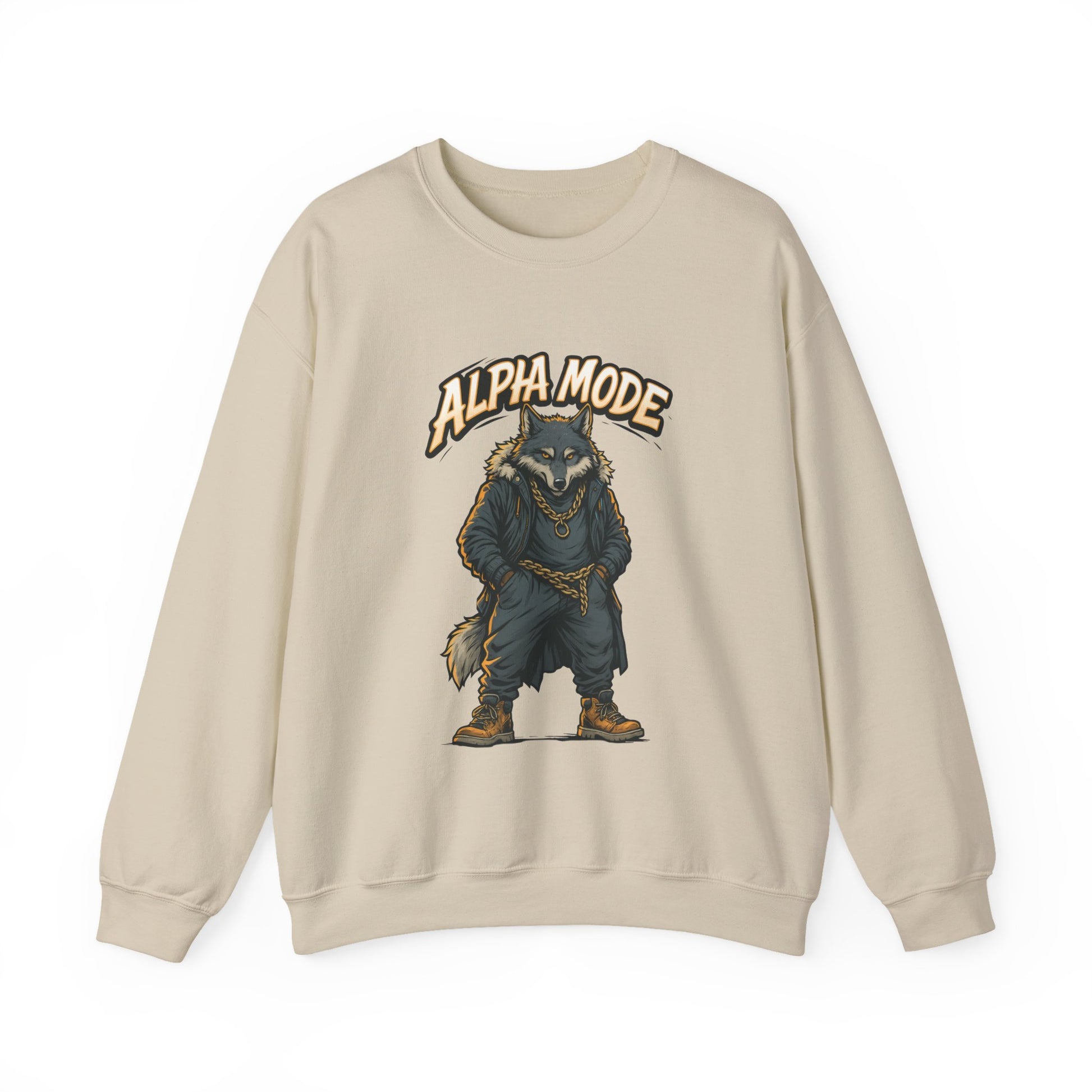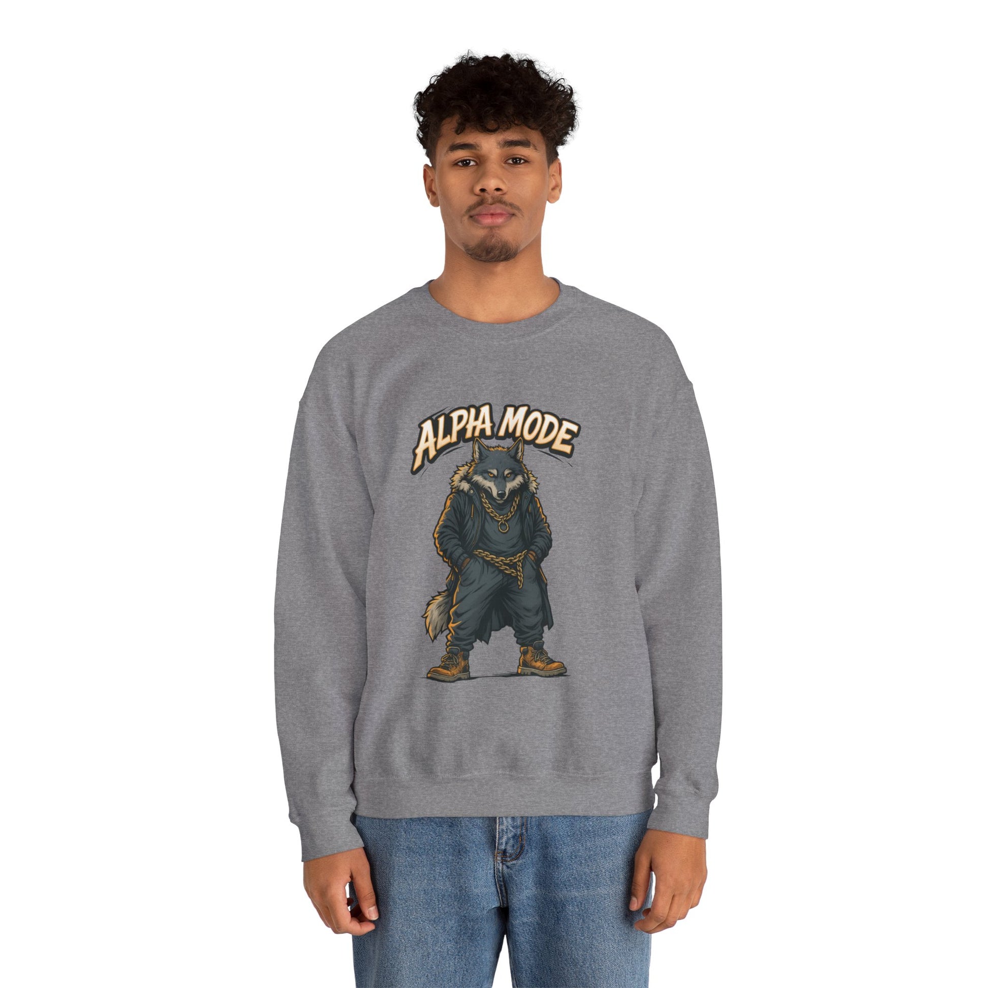 Alpha Mode Wolf Crewneck Sweatshirt, Mens Streetwear Pullover, Hip Hop Savage Wolf Sweater, Alpha Male Graphic Crewneck, Urban Wolf Gift
