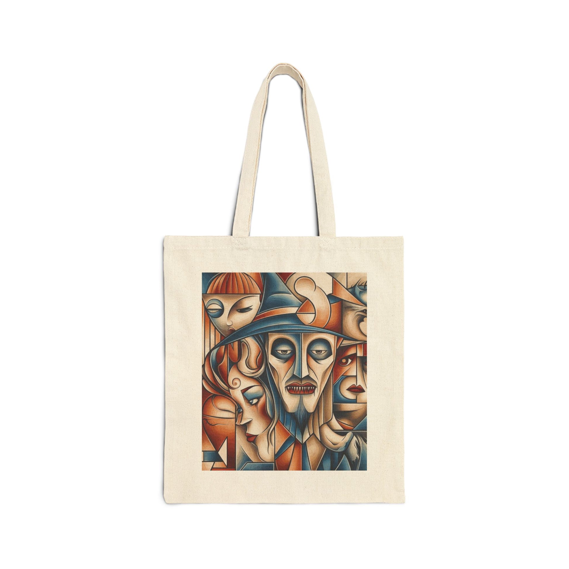 Artistic Tote Bag, Haunting Cubist Faces, Gothic Witchcore Abstract Wall Art, Dark Surreal Vampire Painting, Moody Expressionist Print