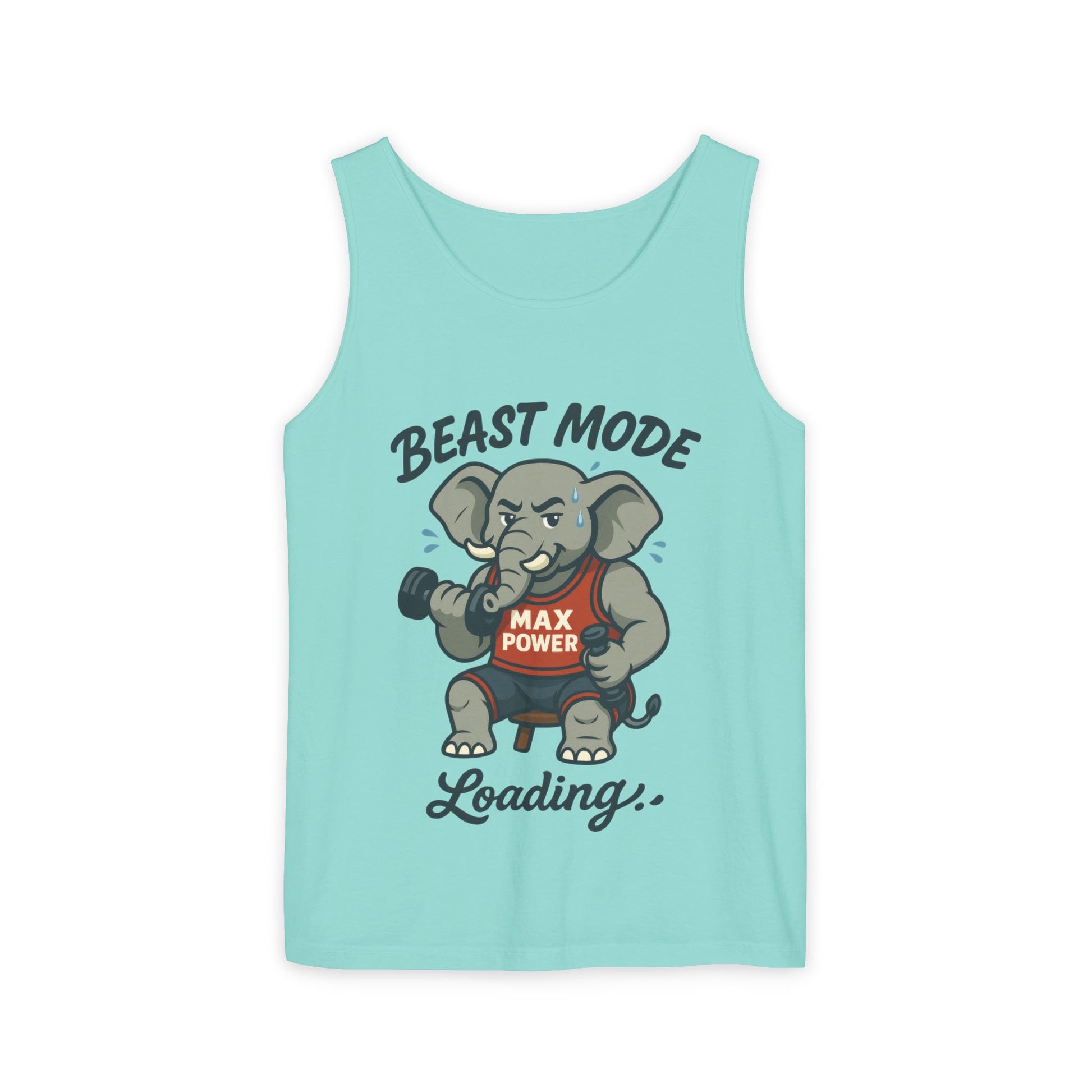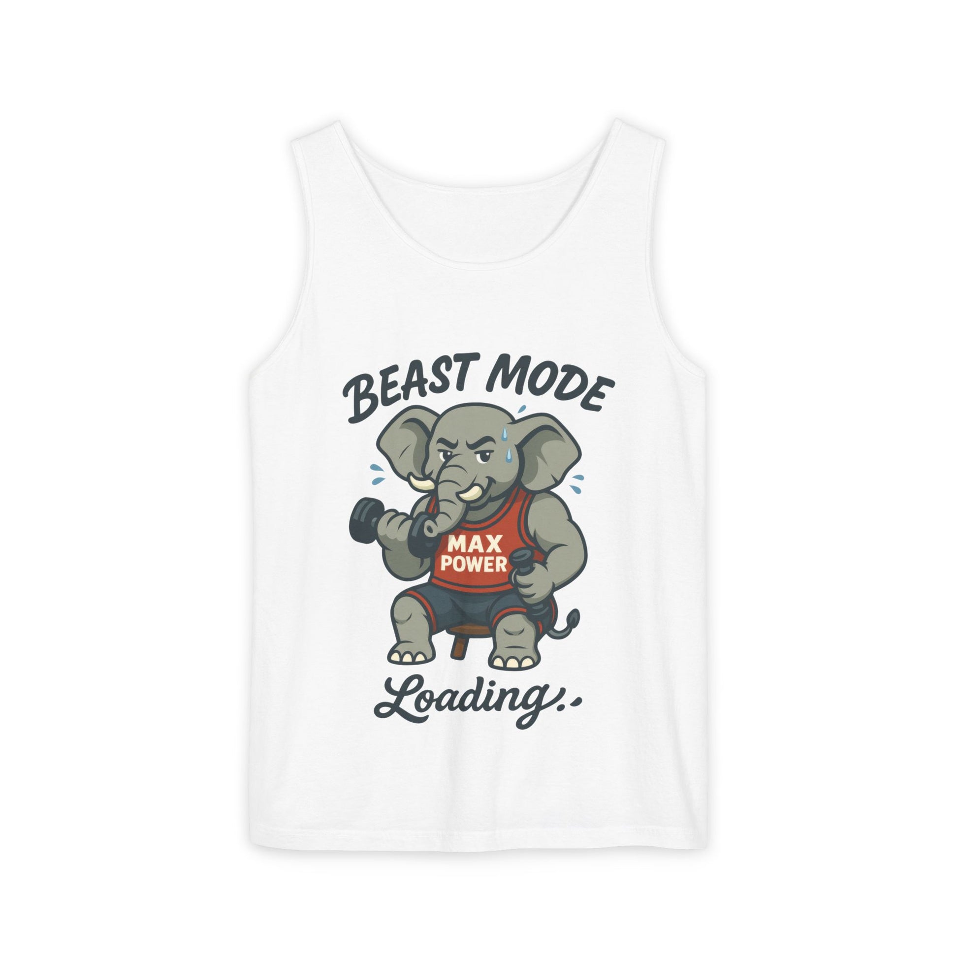 Discover your new go-to for casual outings and workouts with this Unisex Garment-Dyed Tank Top. The playful ‘Beast Mode Loading’ design featuring an adorable elephant adds a fun vibe, making it perfect for brightening your day. Its relaxed fit ensures all-day comfort, whether you’re at the gym or lounging at home. Ideal for fitness enthusiasts and animal lovers alike, this tank top makes a great gift for birthdays, holidays, or any occasion that calls for a smile and a touch of motivation. Embrace your inner strength and style! Product features - 100% ring spun cotton for a strong and smooth feel. - Self-fabric bindings enhance durability and style. - No side seams for a clean, attractive look. - Garment-dyed for a unique soft color and texture. - Medium fabric weight offers comfort without compromising on quality. Care instructions - Machine wash: cold (max 30C or 90F) - Non-chlorine: bleach as needed - Tumble dry: low heat - Iron, steam or dry: low heat - Do not dryclean