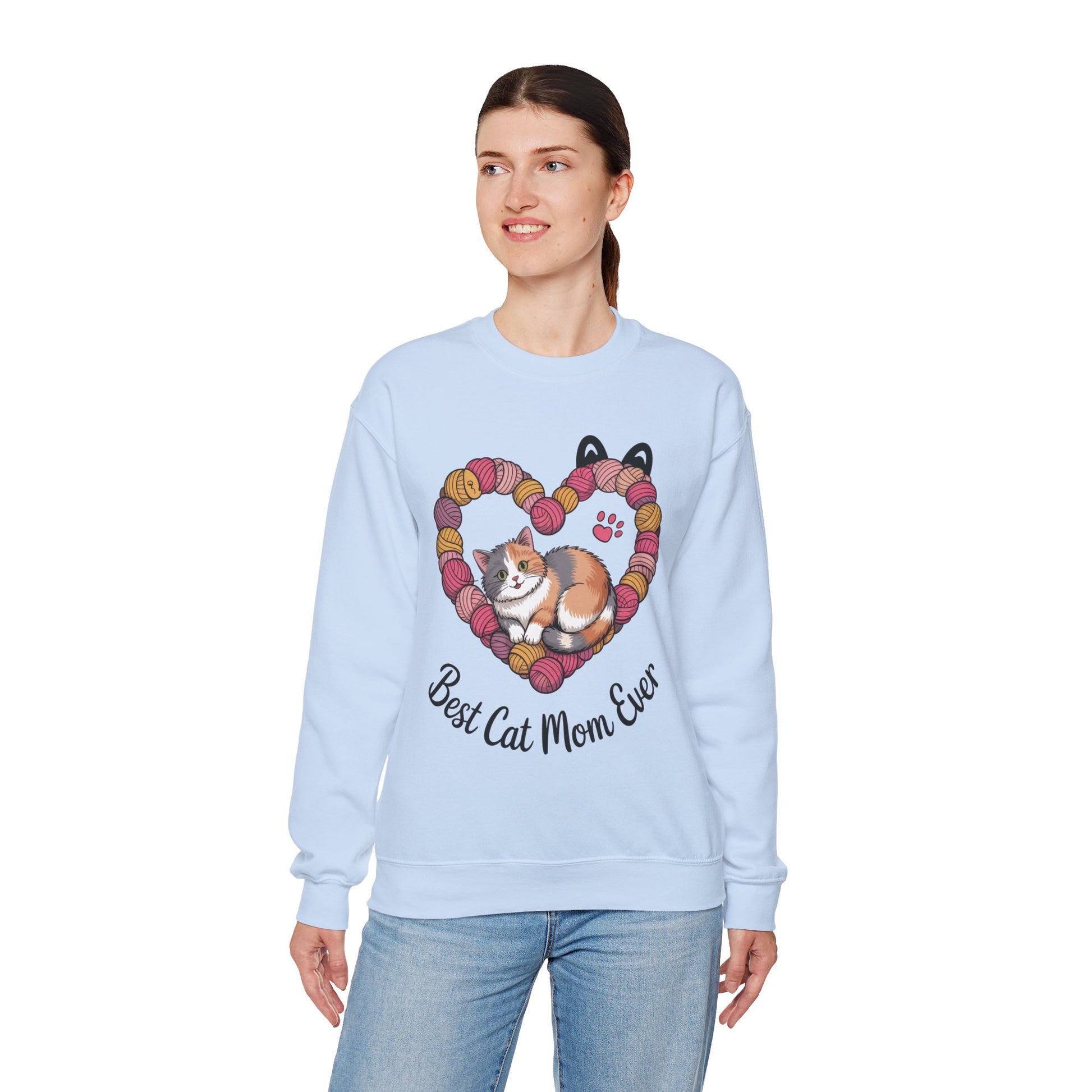 Best Cat Mom Ever Sweatshirt, Cozy Cat Lover Gift, Mother's Day Apparel, Pet Owner Sweatshirt, Cute Gift for Cat Moms, Yarn Themed