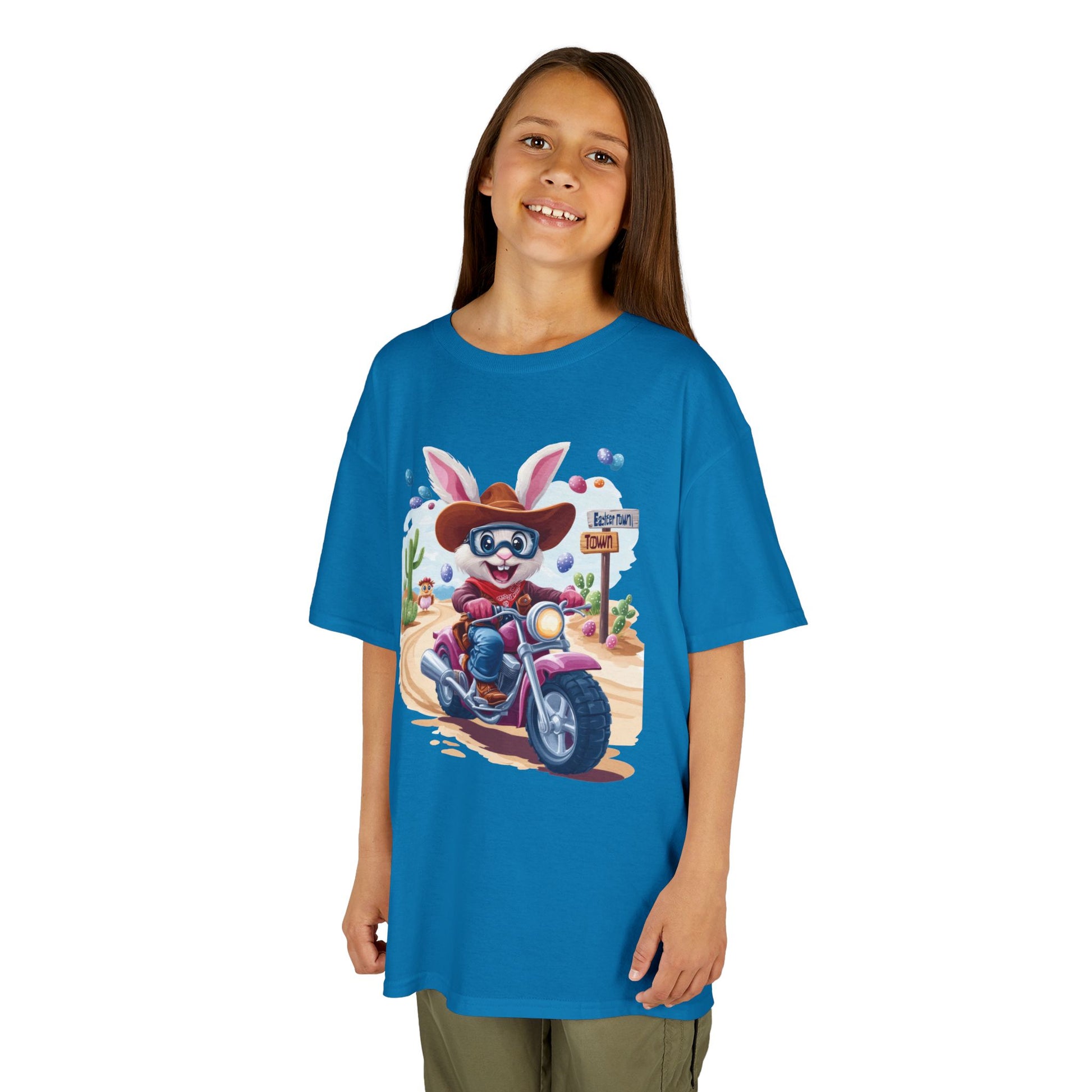 Biker Bunny Kids Tee - Fun Easter Shirt for Boys & Girls, Cute Spring Outfit with Motorcycle Rabbit Heavy Cotton Toddler T-Shirt Bunny Rider