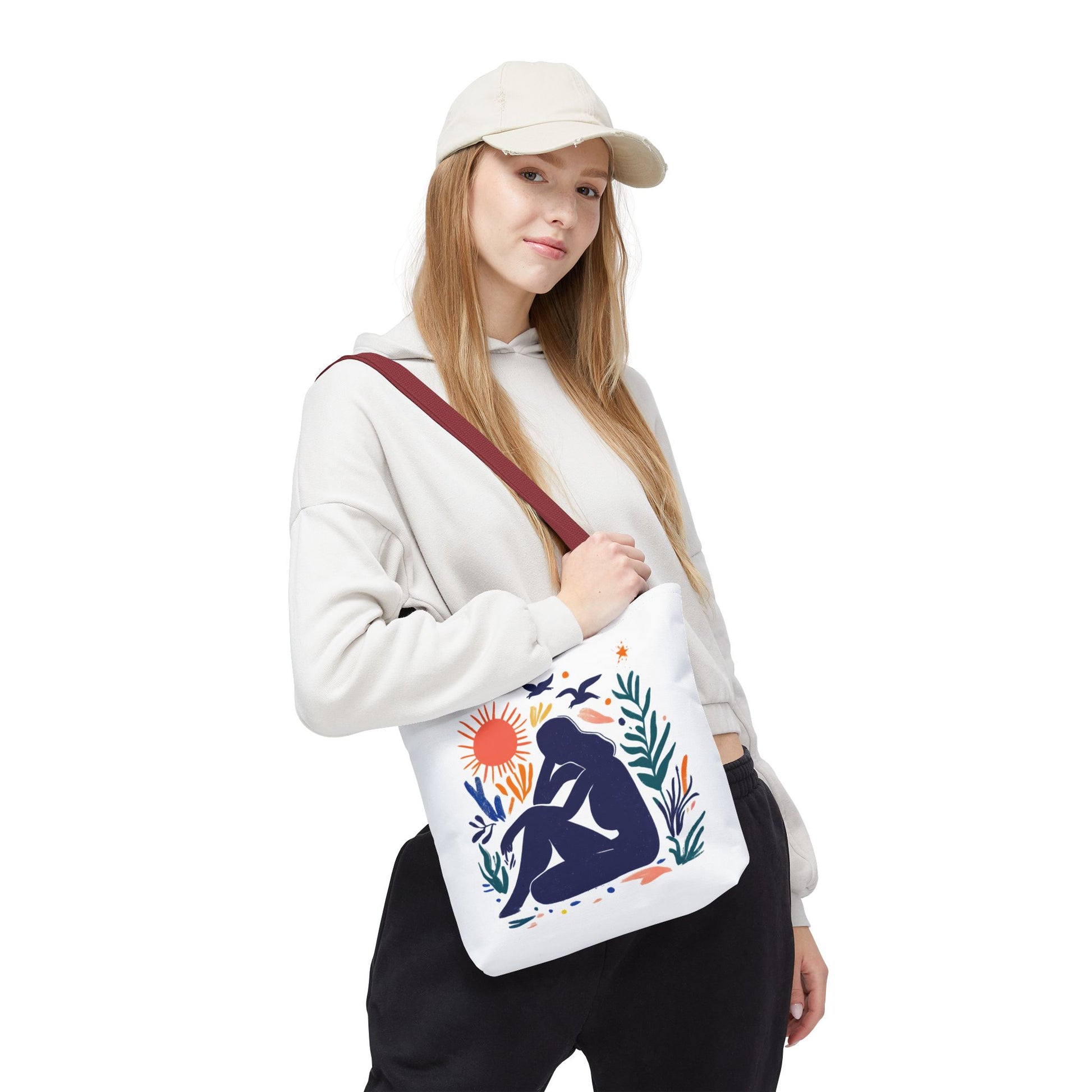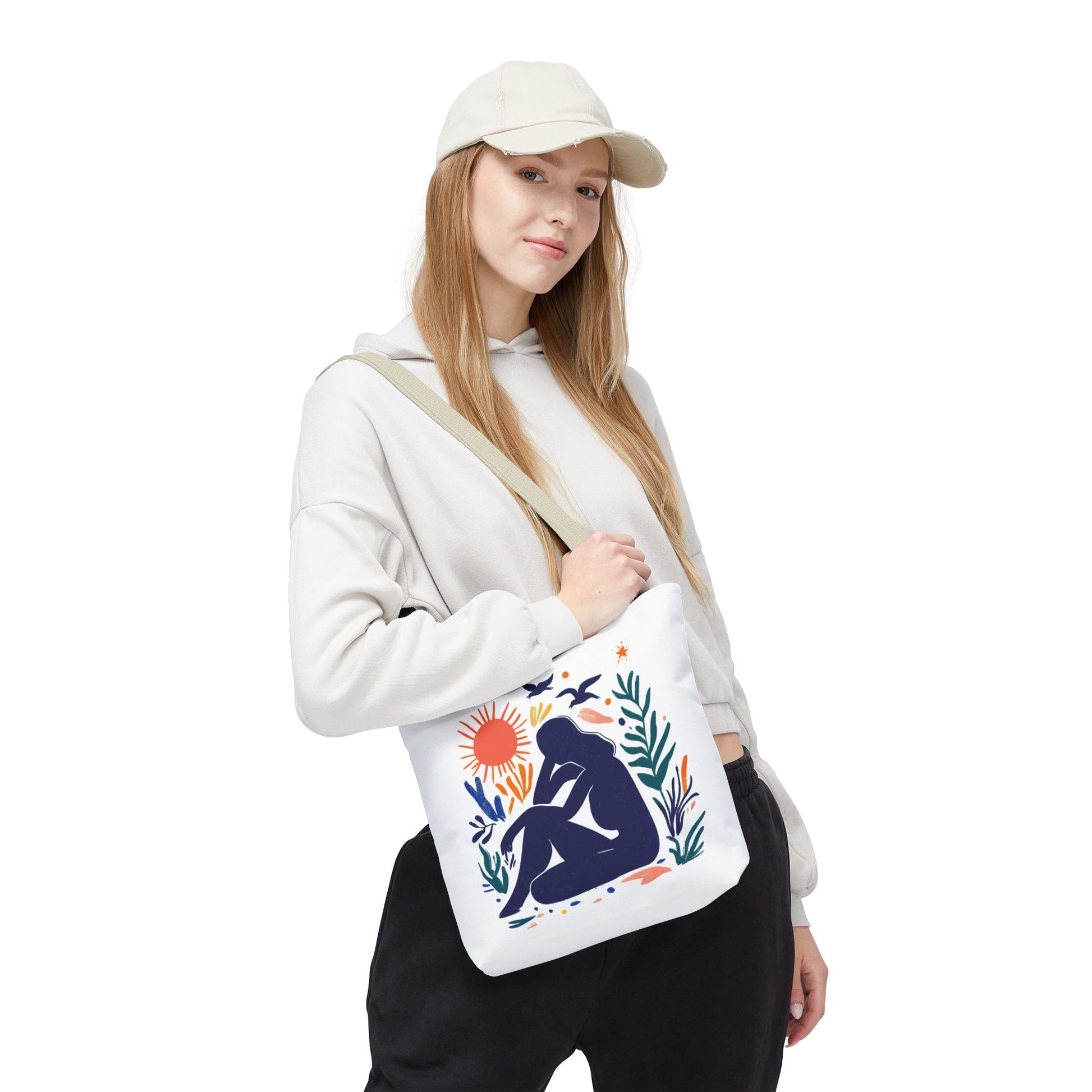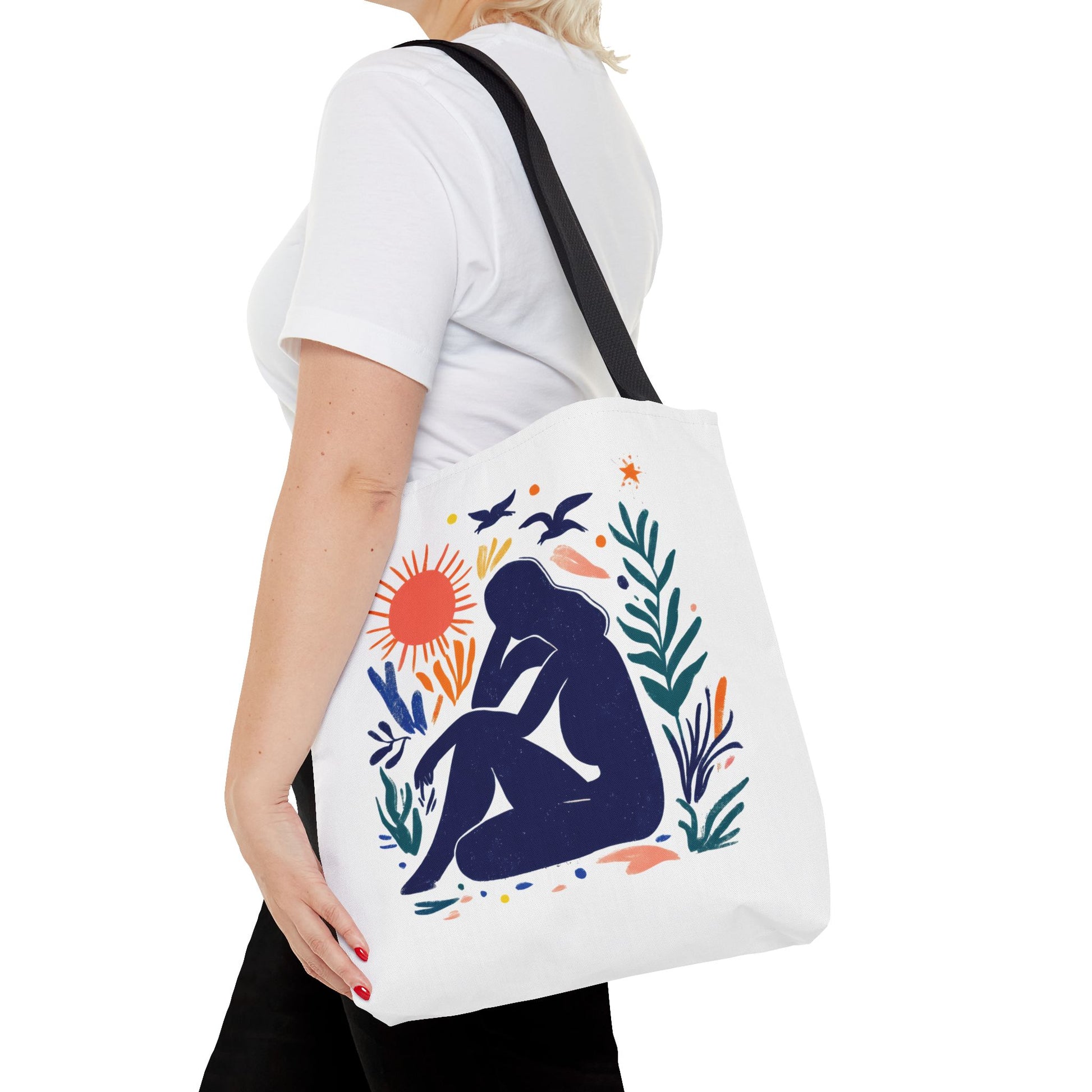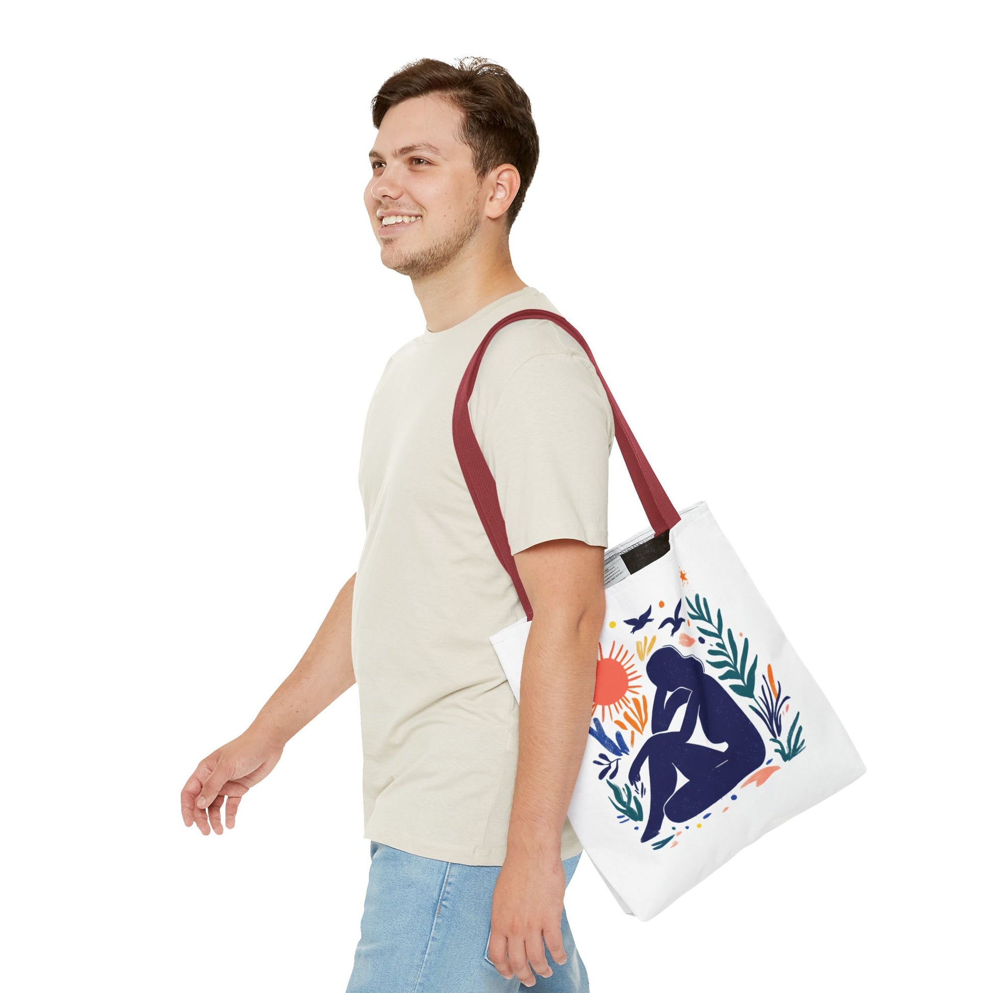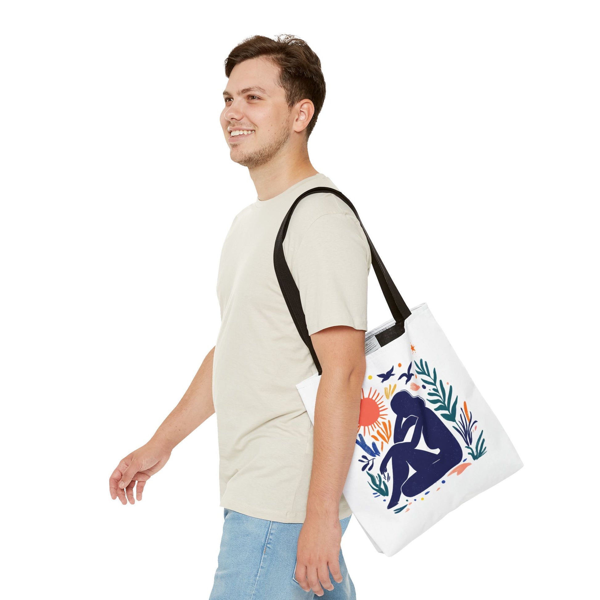 Embrace everyday adventures with this stylish Tote Bag. Designed with vibrant art, it exudes creativity and positivity, making it the perfect accessory for those who love to express themselves. Whether you’re heading to the farmer’s market, running errands, or enjoying a day at the beach, this tote bag blends functionality and artistry effortlessly. Ideal for trendsetters and eco-conscious shoppers, it’s a great gift option for holidays, birthdays, or as a thoughtful surprise for friends and family. Include it in your casual ensemble, and let it reflect your unique personality and spirit! Product features - 100% Polyester body for durability and quick drying - Reinforced stitching on handles for extra strength - Boxed corners for added space and functionality - Available in multiple sizes to suit your needs - 5 color handle options to match your style Care instructions - Remove all items from the bag before cleaning. Suggested to pretreat visible stains with stain remover. Mix warm water with laundry detergent and clean the bag with terry washcloth or a soft bristle brush. Let the bag air dry.