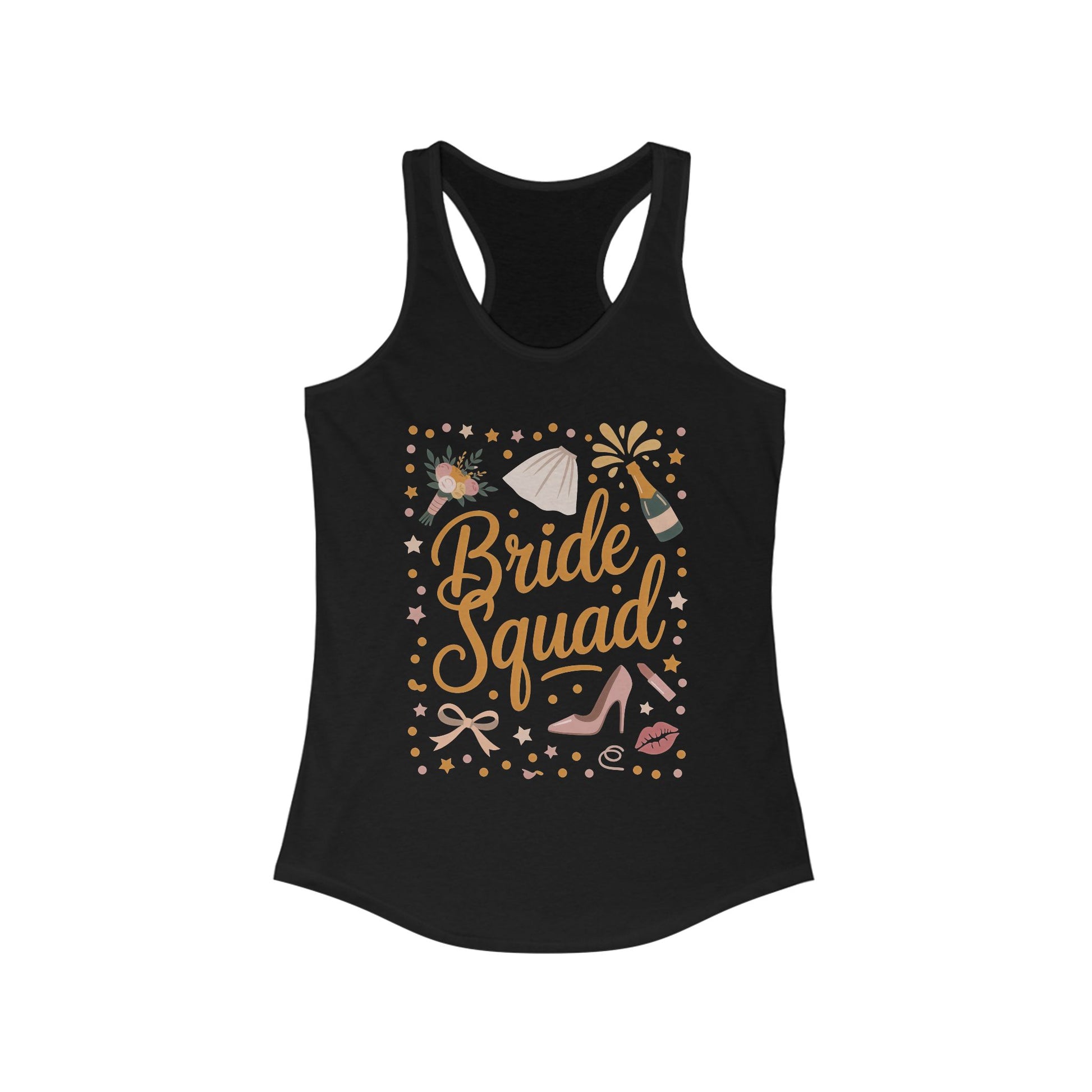 Introducing the perfect addition to your wardrobe: this women's racerback tank top is designed for those who love to combine comfort with style. With its lightweight fabric and classic fit, this tank exudes a laid-back vibe that’s ideal for sunny days or workout sessions. Perfect for bridal parties, beach outings, or casual gatherings, it’s a fantastic choice to celebrate special moments with friends and loved ones. The stylish ‘Bride Squad’ design makes it particularly relevant for wedding festivities and bridal showers, adding a fun and memorable touch to the occasion. Whether you’re dancing the night away or just hanging out, this tank will keep you looking fabulous while feeling comfortable. It’s a must-have for the fashion-forward woman who enjoys effortless elegance in her everyday life. Product features - Side seams provide structure and support for durability. - Self-fabric binding ensures a polished look with no discomfort. - Made from a luxurious blend of 60% combed ring-spun cotton and 40% polyester for a soft feel. - Supremely lightweight fabric makes it perfect for active lifestyles. - Tear-away label allows for a scratch-free wearing experience. Care instructions - Do not iron - Do not dryclean - Machine wash: cold (max 30C or 90F) - Do not bleach - Tumble dry: low heat