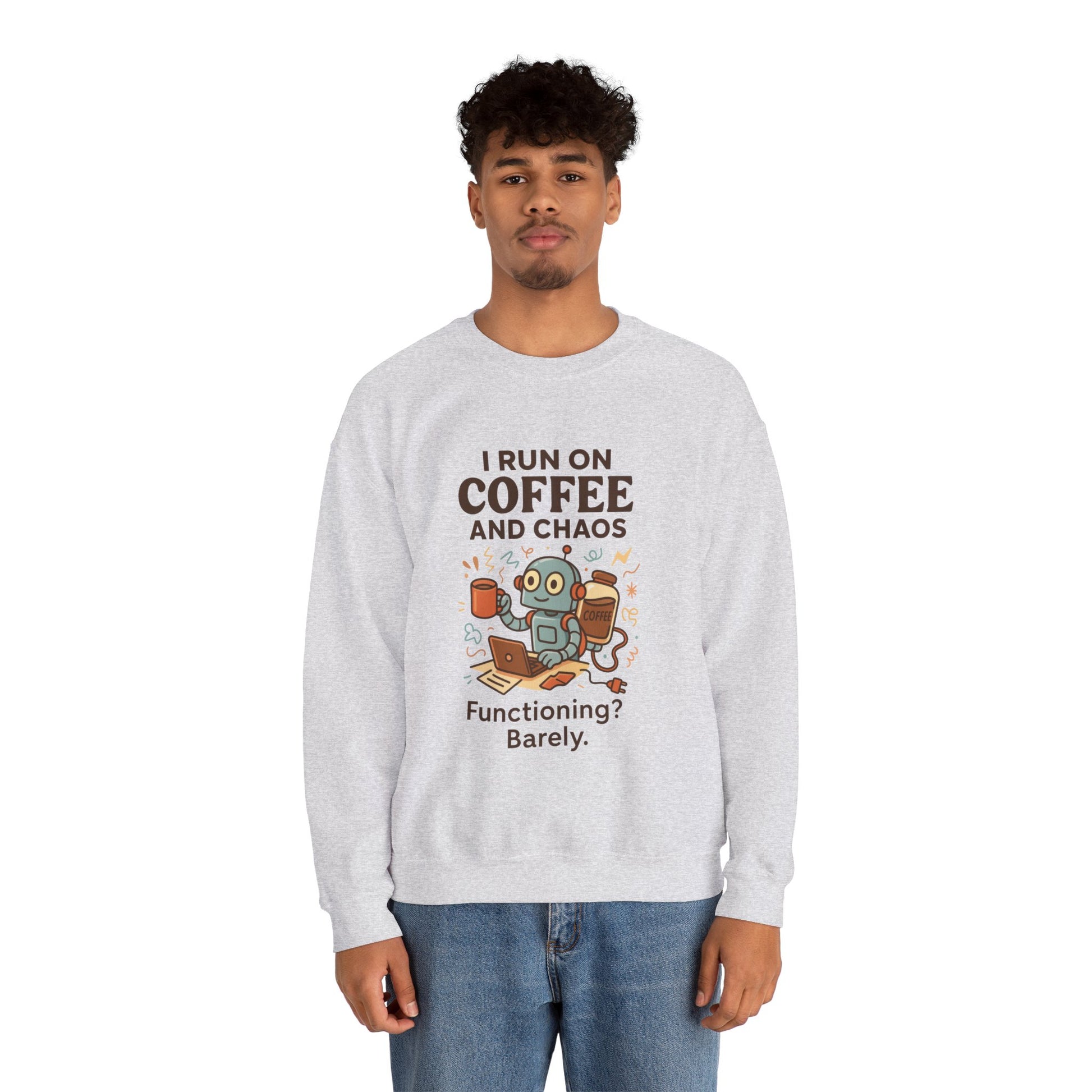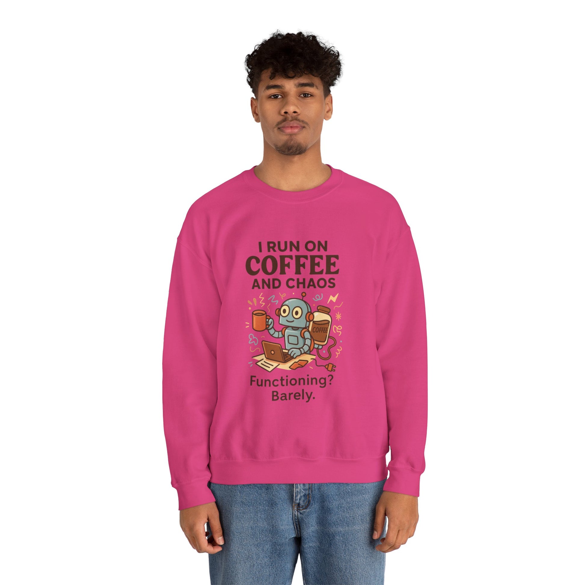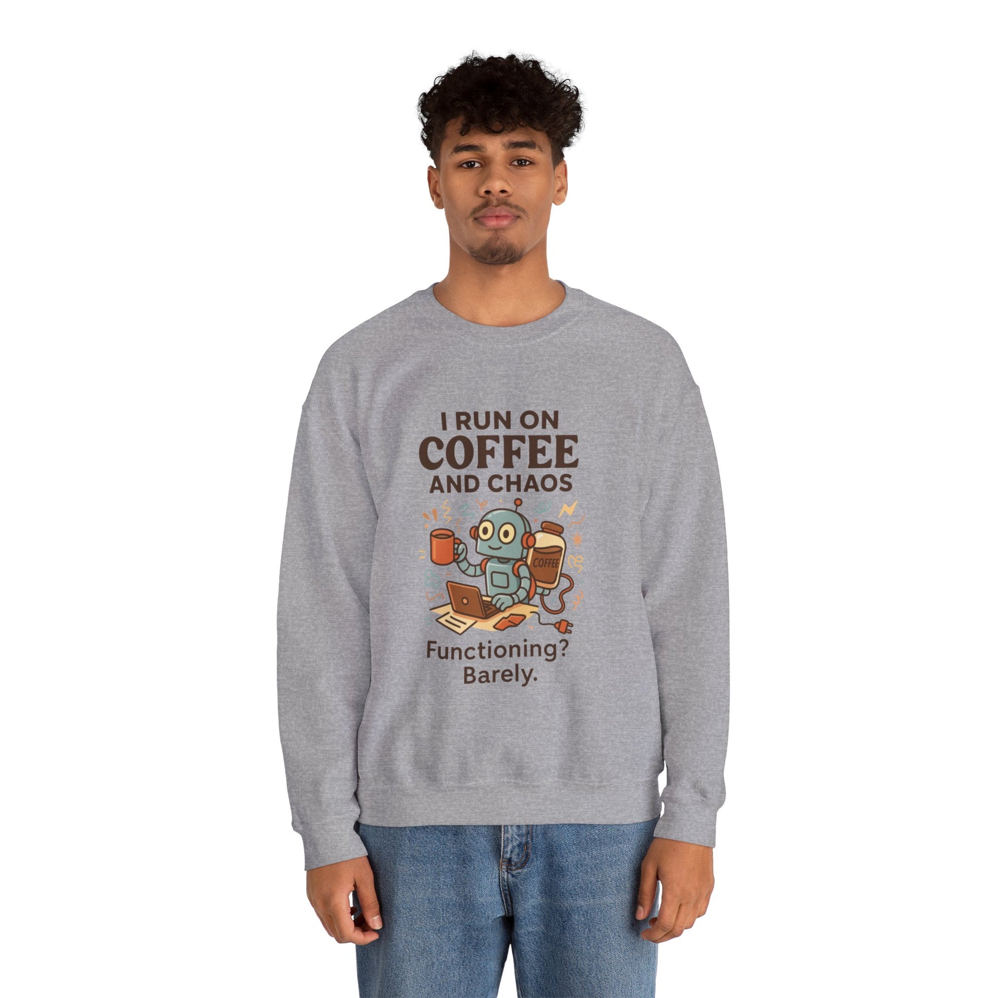 Coffee and Chaos Crewneck Sweatshirt, Funny Sweatshirt for Coffee Lovers, Unisex Gift, Cozy Everyday Wear, Ideal for Holidays