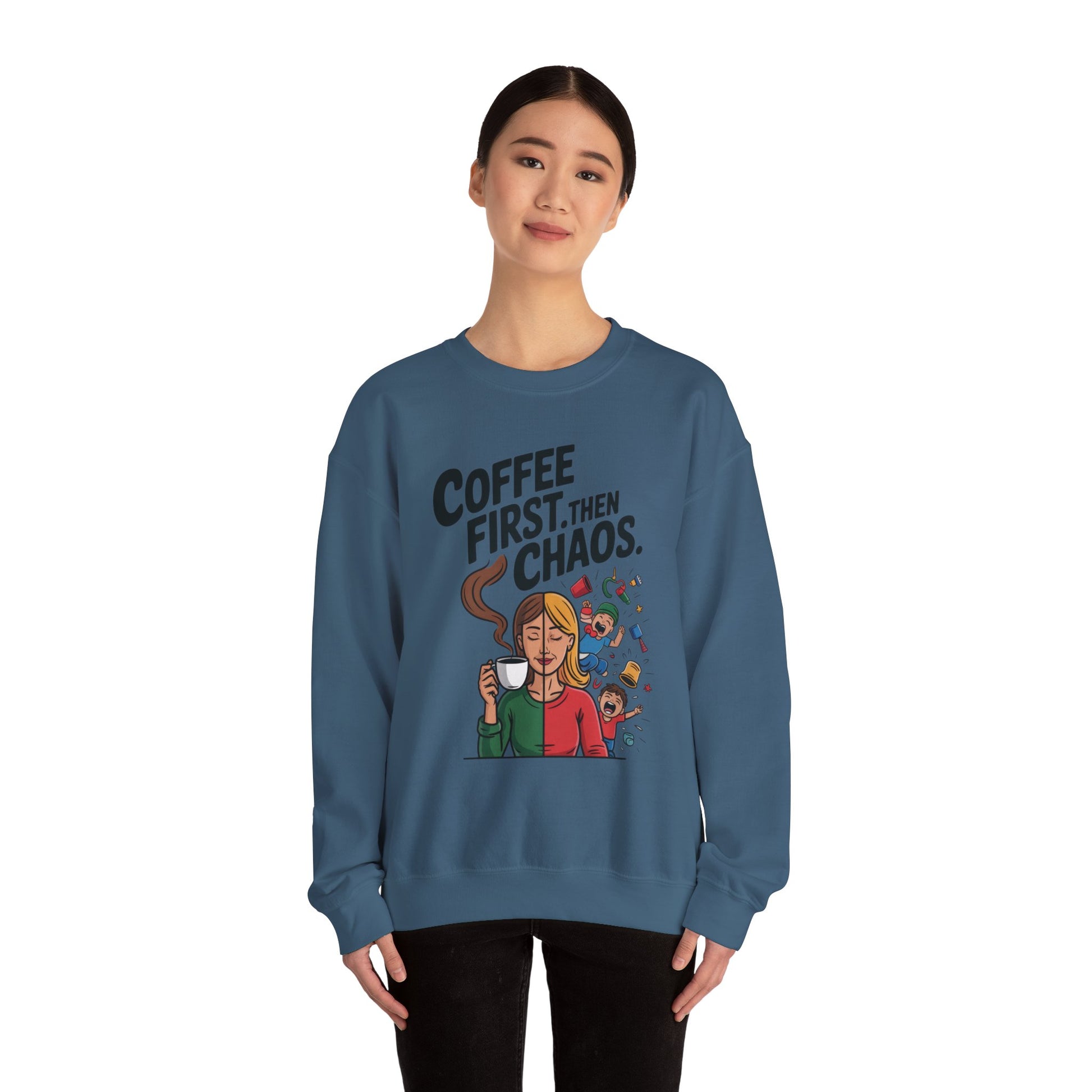 Coffee First Then Chaos Sweatshirt, Ideal Gift for Moms, Fun Casual Wear, Funny Mom Life Sweatshirt, Mother's Day Gift