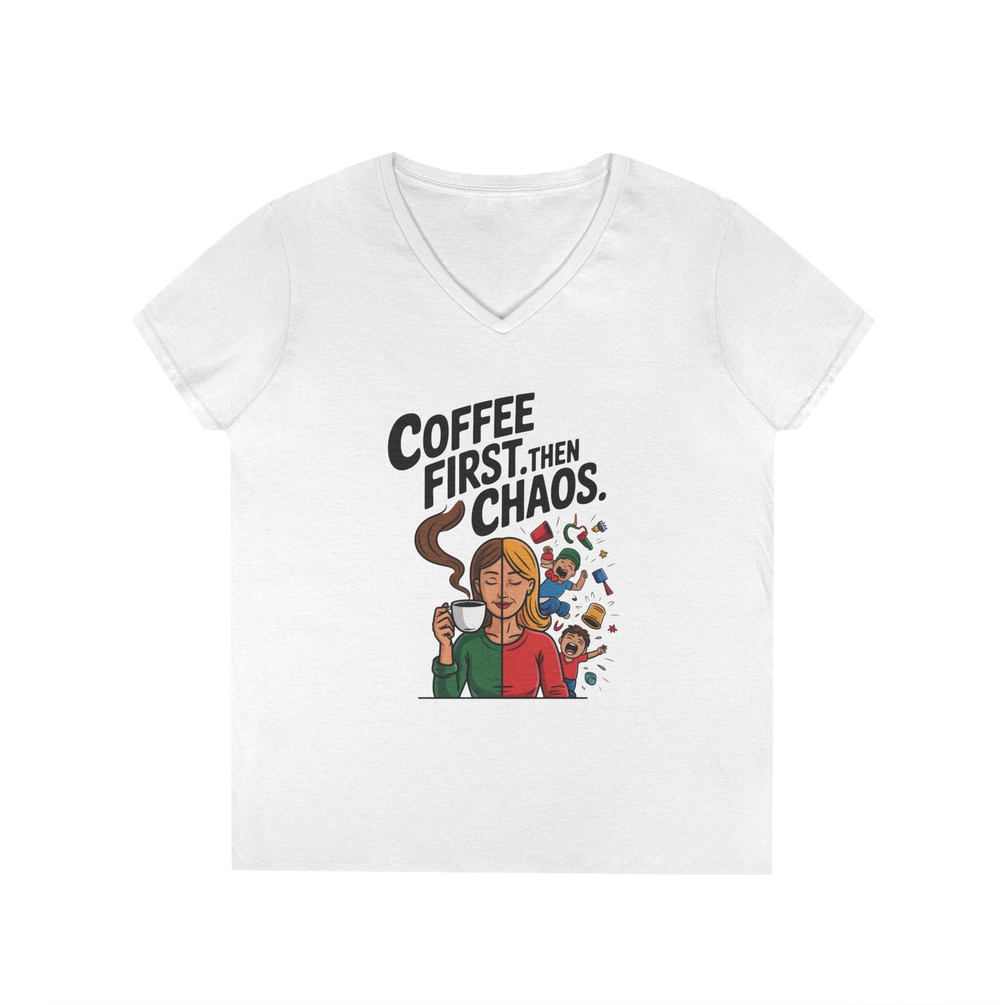 Coffee First Then Chaos V-Neck T-Shirt, Funny Mom Life Shirt, Mother's Day Gift, Mom Humor Tee, mom graphic tee, caffeine lover tee