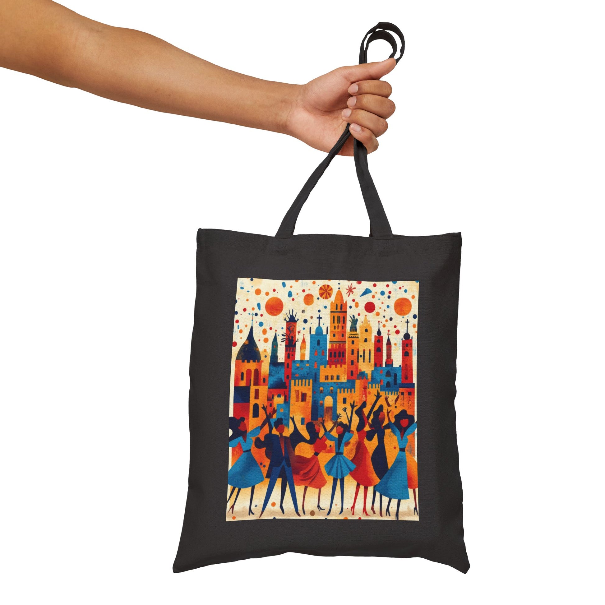 Colorful Dance Scene Cotton Canvas Tote Bag, Eco-Friendly Shopping Bag, Artsy Gift, Everyday Use Tote, Festival Tote Bag, Stylish Beach Bag