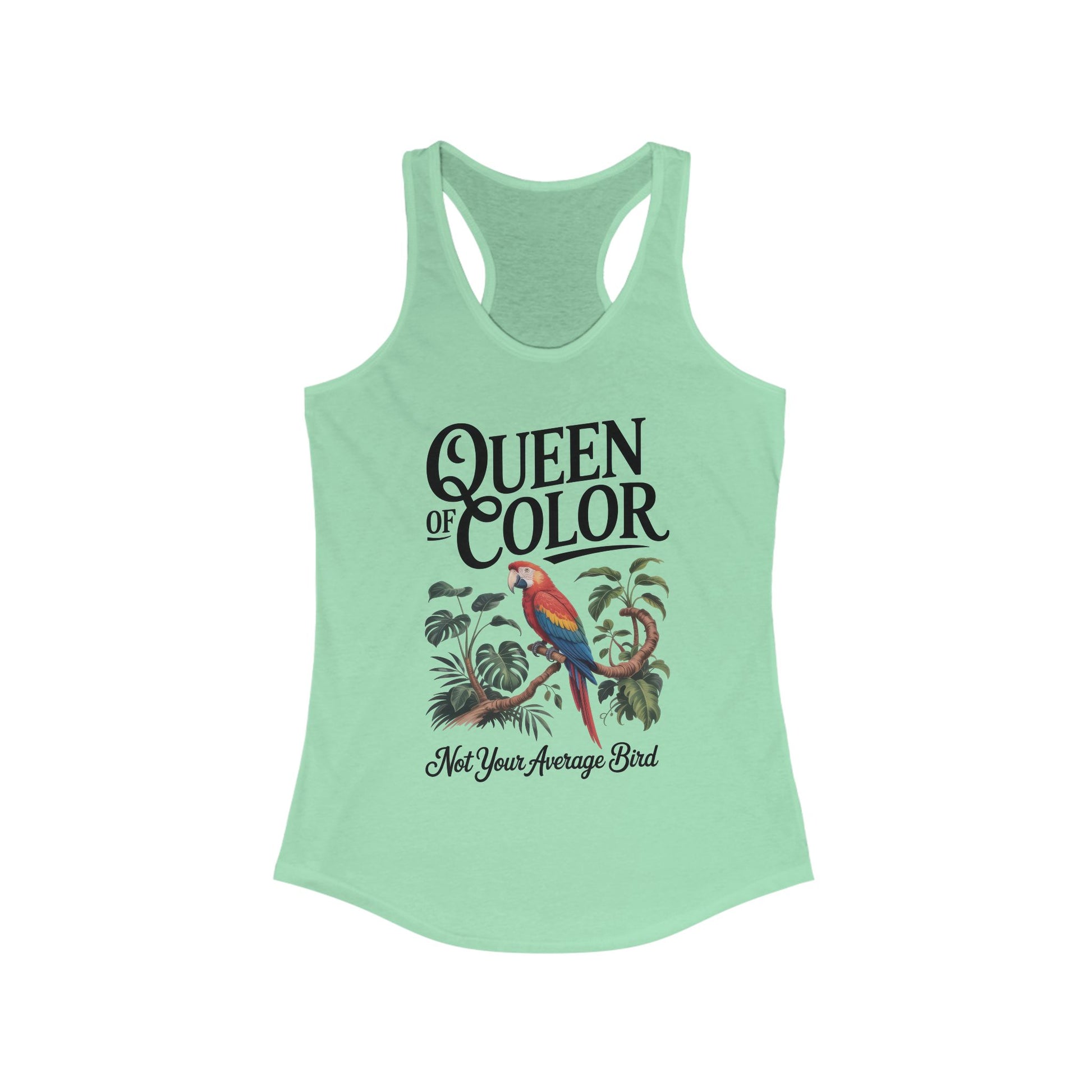 Colorful Queen Racerback Tank: Not Your Average Bird, Summer Fitness Top, Tropical Workout Shirt, Gifts for Women, Eco-Friendly Activewear