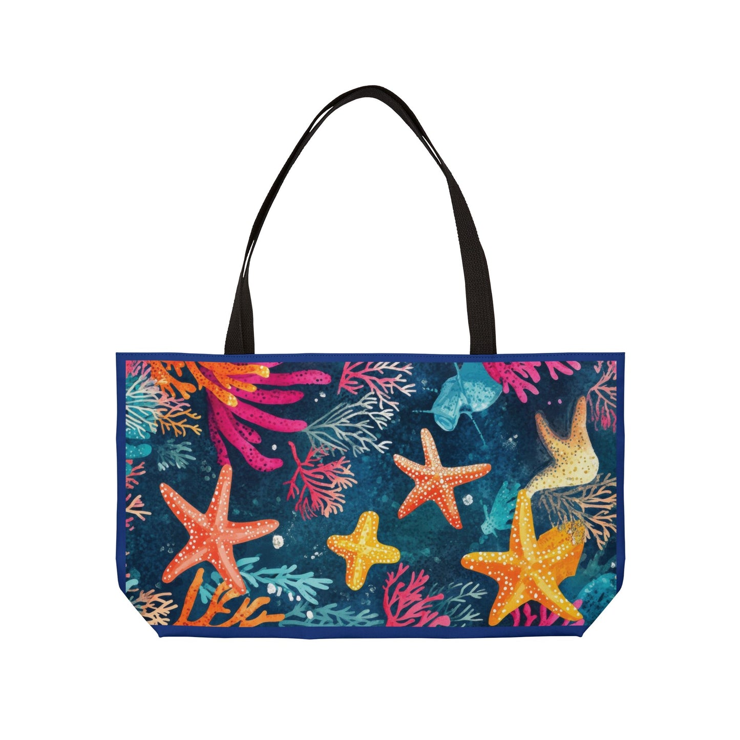 Colorful Starfish Weekender Tote Bag, Beach Essentials, Summer Travel, Vacation, Poolside Carryall, Eco-Friendly Bag, Beach Bag