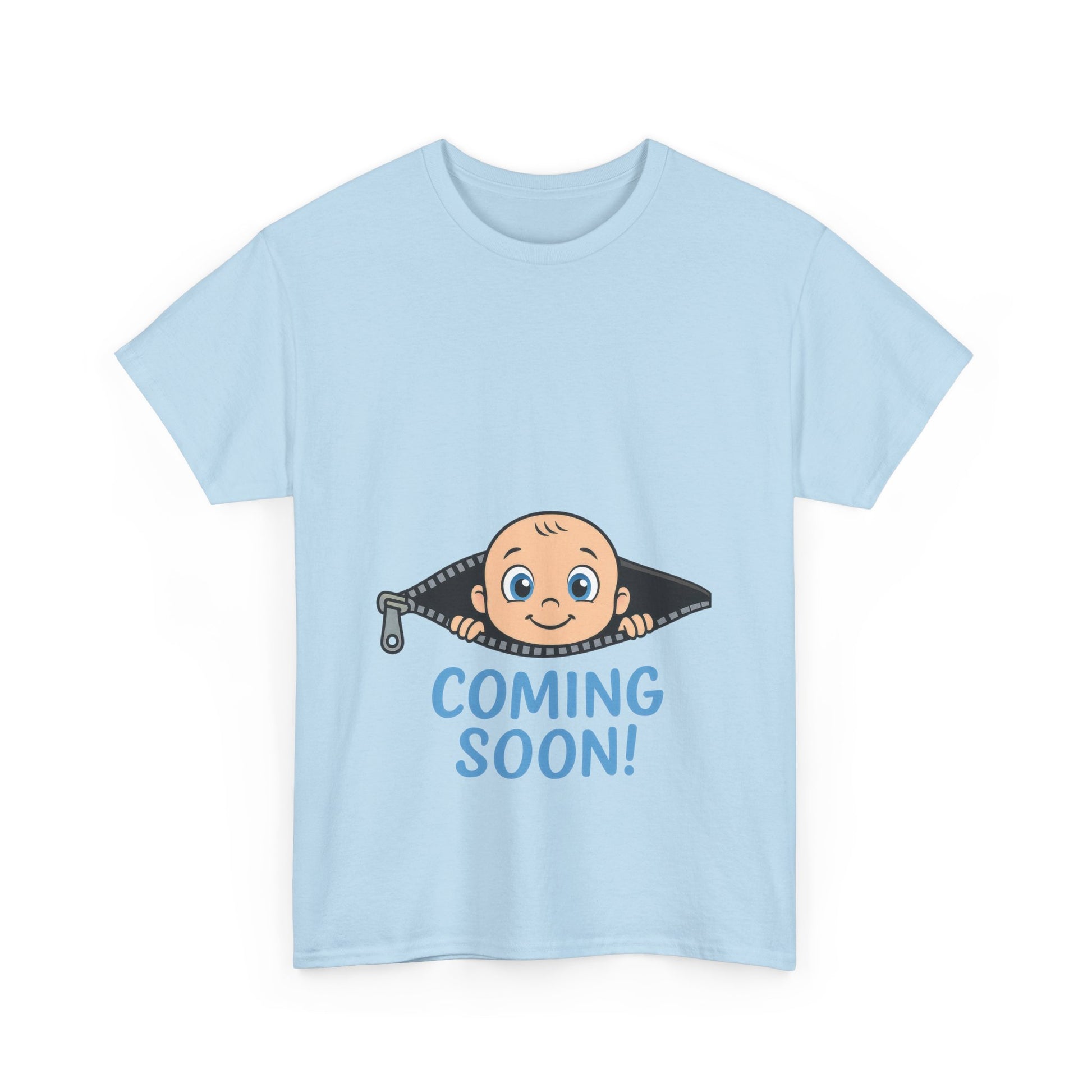 Introducing a versatile Unisex Heavy Cotton Tee, designed for comfort and style. This tee embodies a cheerful vibe with its playful "Coming Soon!" graphic, perfect for anyone looking to add a touch of humor to their wardrobe. Ideal for welcoming new beginnings or celebrating milestones, this shirt makes a great gift for expectant parents at baby showers or fun announcements. Crafted for year-round wear, it fits seamlessly into casual outings or relaxed gatherings, ensuring you feel comfortable wherever you go. Perfect for friends, family, or anyone who loves unique, conversational apparel, this tee will be a staple for celebrating life's joyful moments. Product features - Shoulder tape for added durability and comfort. - No side seams for a sleek appearance and reduced fabric waste. - Elastic ribbed collar that retains shape wash after wash. - Crafted from smooth, strong, and sustainable fabric. - Made from ethically sourced US cotton, ensuring quality and responsibility. Care instructions - Non-chlorine: bleach as needed - Do not iron - Do not dryclean - Machine wash: cold (max 30C or 90F) - Tumble dry: low heat