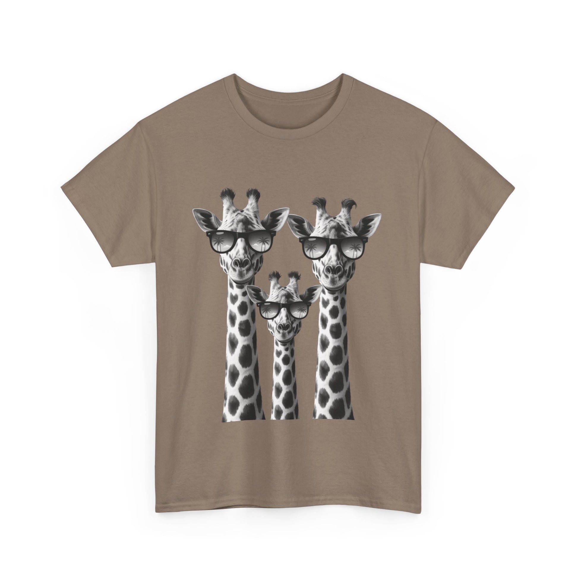 Introducing our Unisex Heavy Cotton Tee, the perfect blend of comfort and style for any casual occasion. With its playful design featuring stylish giraffes, this tee adds a fun vibe to your wardrobe. It's ideal for animal lovers and anyone who enjoys quirky fashion. Whether you're heading to a casual gathering, a day out with friends, or just lounging at home, this tee fits right in. It's also a great gift for birthdays, holidays, or just because! Embrace a relaxed, cheerful atmosphere with this lightweight, durable shirt that keeps you looking fresh and stylish all year long. Product features - Shoulder tape for enhanced durability. - Seamless design reduces waste and enhances aesthetics. - Ribbed knit collar holds its shape well. - Made from strong, smooth fabric perfect for prints. - Ethically sourced cotton, certified for quality. Care instructions - Non-chlorine: bleach as needed - Do not iron - Do not dryclean - Machine wash: cold (max 30C or 90F) - Tumble dry: low heat
