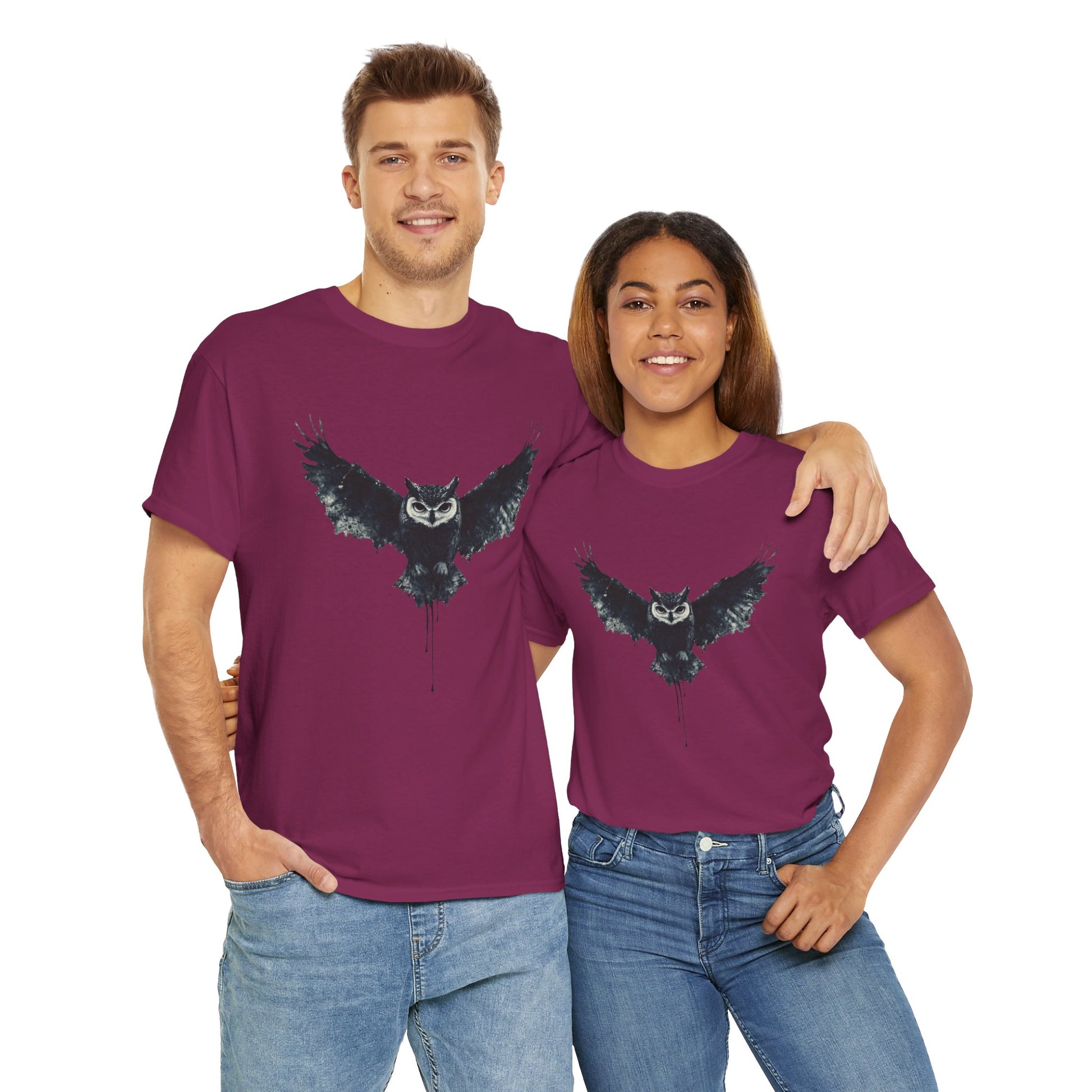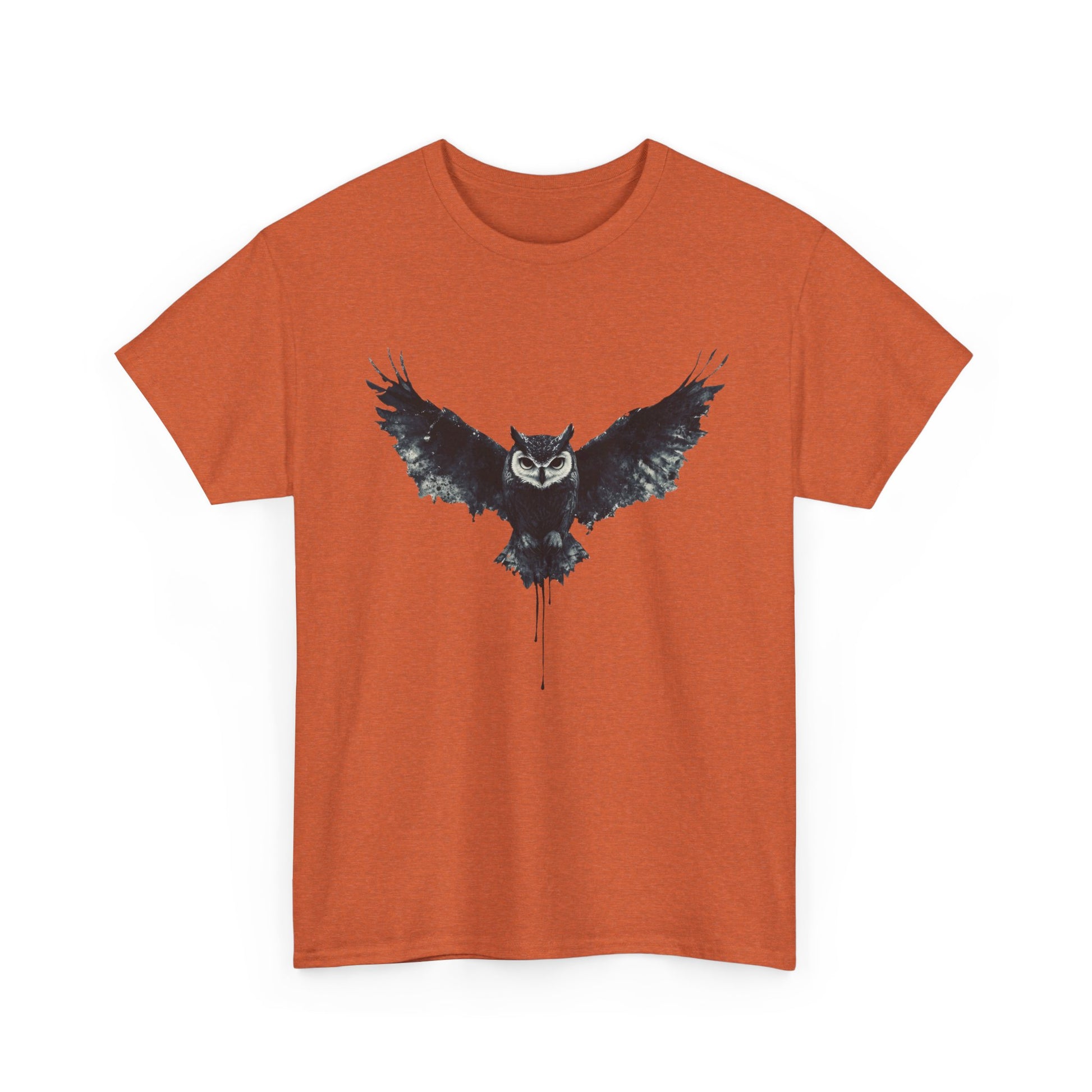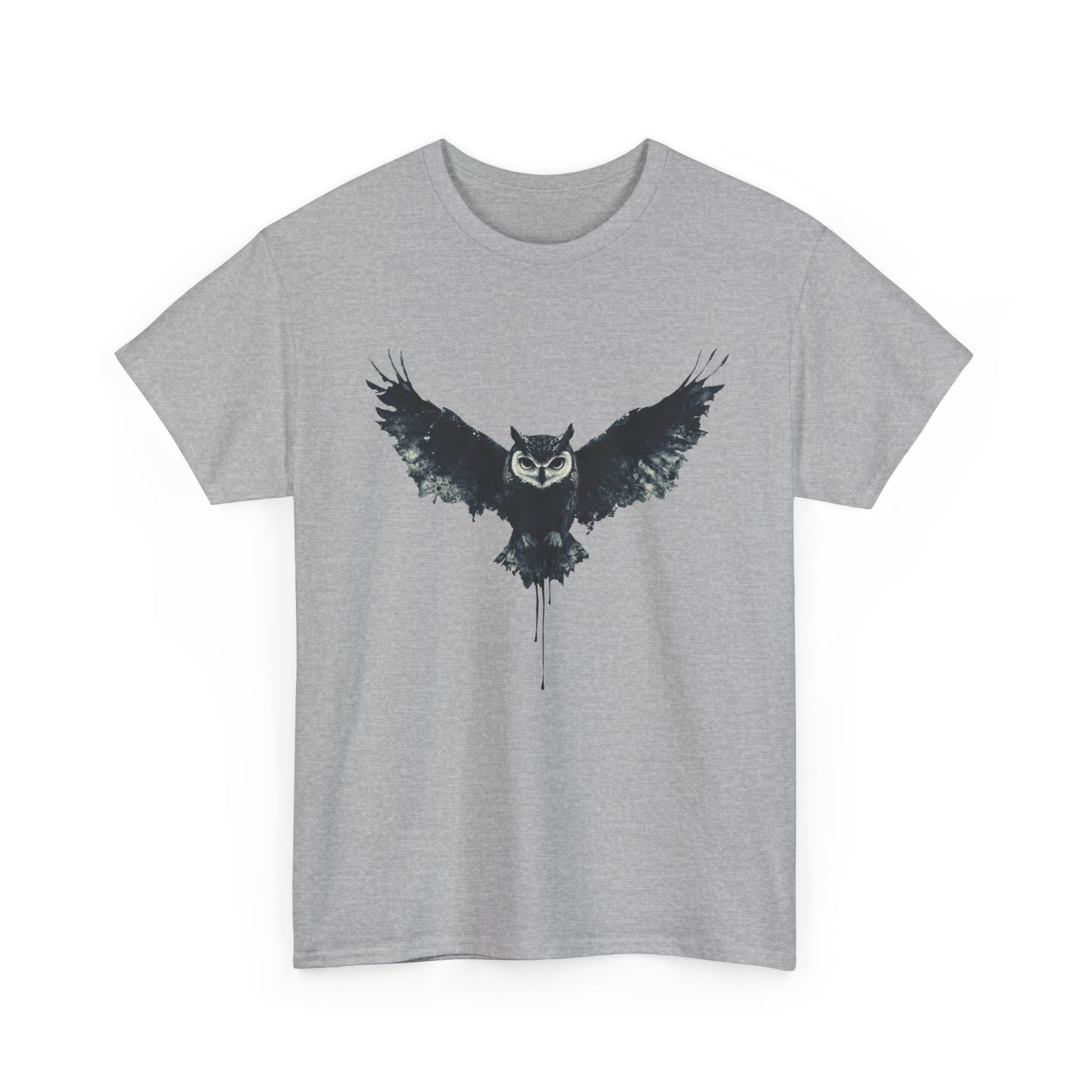 Cool Owl Graphic Unisex Heavy Cotton Tee, Flying Owl Ink Art T-Shirt, Nature Lover Gift, Animal Print Tee, Gothic Bird Graphic Tee