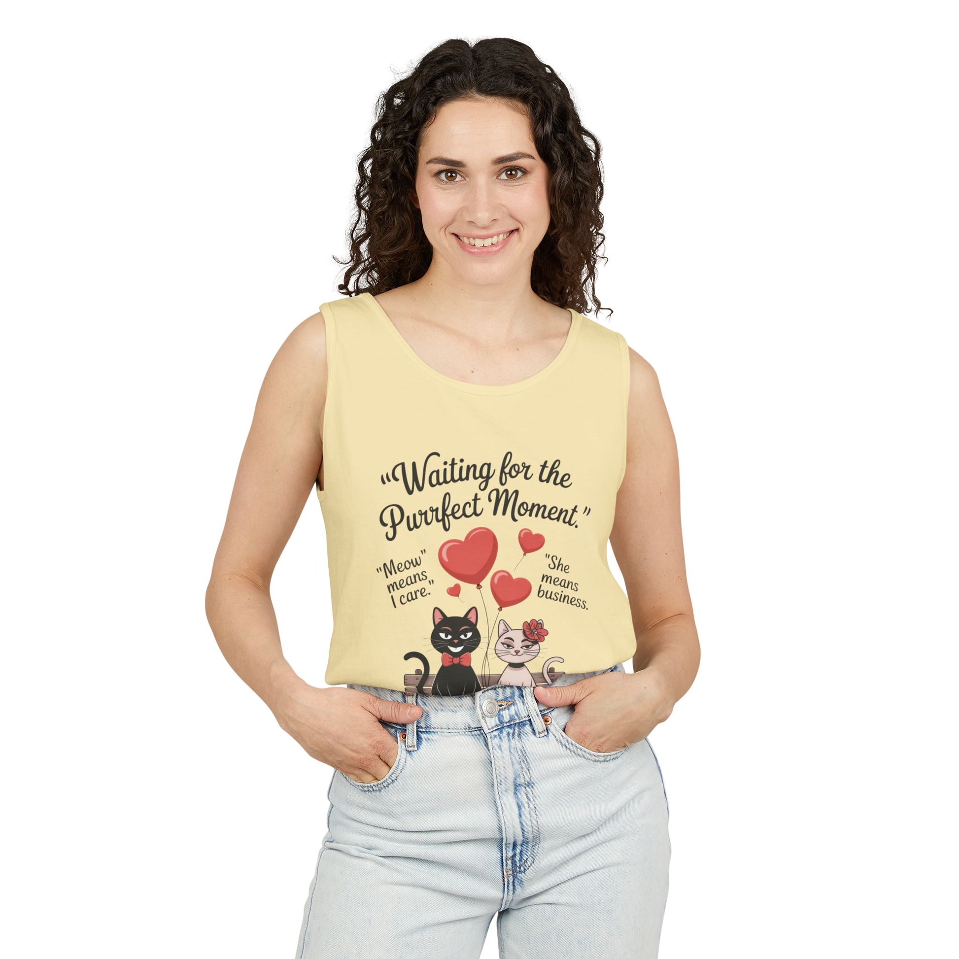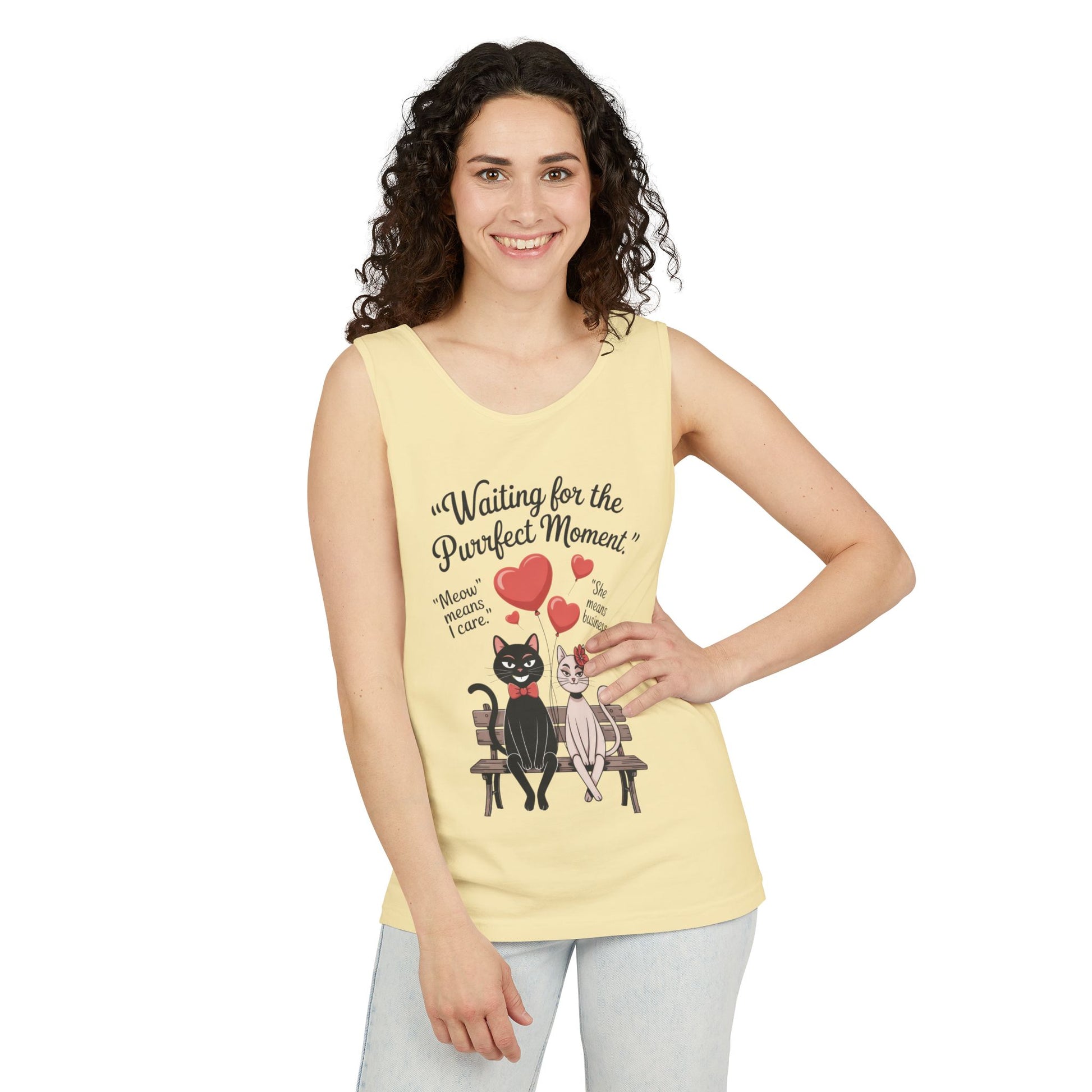 Embrace comfort and style with this unisex garment-dyed tank top, perfect for cat lovers and anyone who appreciates whimsical designs. The soft, vibrant colors create a lighthearted vibe, making it a fantastic addition to your wardrobe for casual outings or cozy days at home. Its relaxed fit ensures all-day comfort, while the playful print sparks joy and conversation wherever you go. Ideal for summer festivals, picnics, or hanging out with friends, this tank top offers a unique way to express your love for feline companions. It's a delightful gift for birthdays or just because, and perfect for celebrating holidays like National Cat Day or any casual gathering with fellow cat enthusiasts. Product features - 100% Ring spun cotton for a soft, durable feel. - Self fabric binding for a polished look. - Seamless design reduces waste and enhances comfort. - Garment-dyed for rich colors and a unique texture. - Relaxed fit offers comfort for all body types. Care instructions - Machine wash: cold (max 30C or 90F) - Non-chlorine: bleach as needed - Tumble dry: low heat - Iron, steam or dry: low heat - Do not dryclean