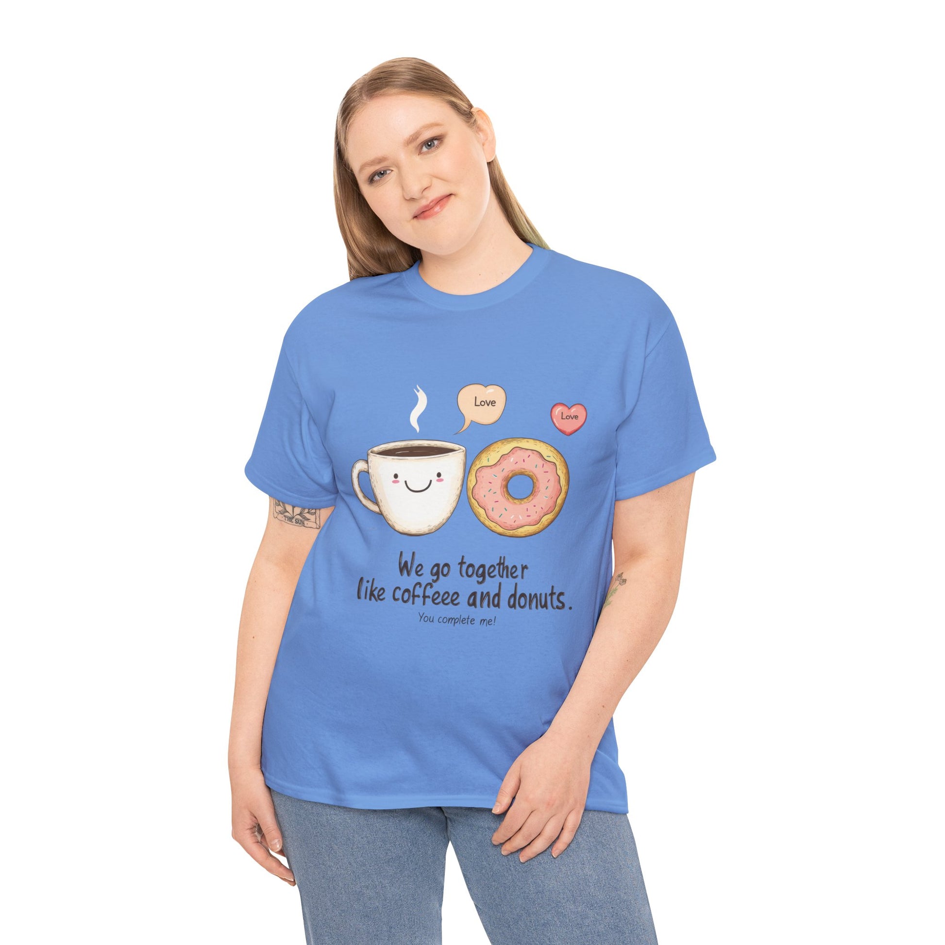 Introducing a delightful Unisex Heavy Cotton Tee that radiates charm and warmth! This playful tee, featuring an adorable coffee and donut design, is perfect for those who appreciate life's simple joys. It seamlessly blends comfort and style, making it an ideal addition to any casual outfit or comfortable loungewear. Whether you're enjoying a cozy weekend brunch or just want to add a touch of fun to your daily attire, this tee fits effortlessly into your lifestyle. It’s especially relevant for food lovers, friends, and anyone who enjoys a good cuppa and a treat! Perfect for gifting during holidays, birthdays, and celebrations like National Coffee Day or just as a sweet surprise for a loved one. Product features - Durable shoulder tape prevents stretching - Seamless design reduces fabric waste - Ribbed knit collar retains shape - Made from ethically sourced 100% cotton - Comfortable fit for year-round wear Care instructions - Non-chlorine: bleach as needed - Do not iron - Do not dryclean - Machine wash: cold (max 30C or 90F) - Tumble dry: low heat