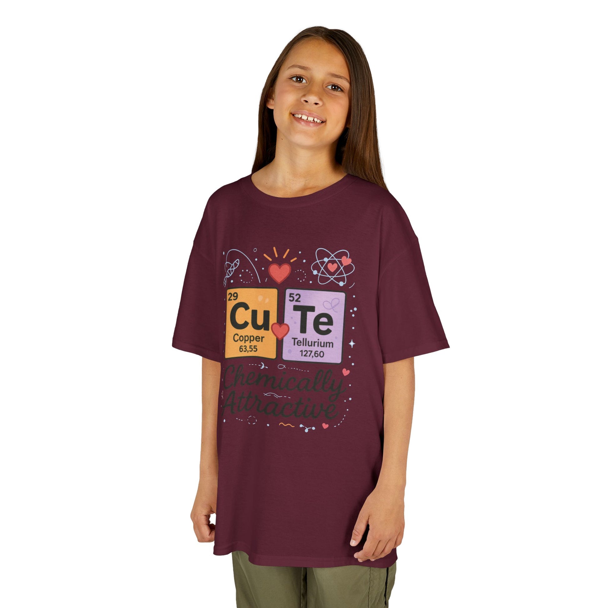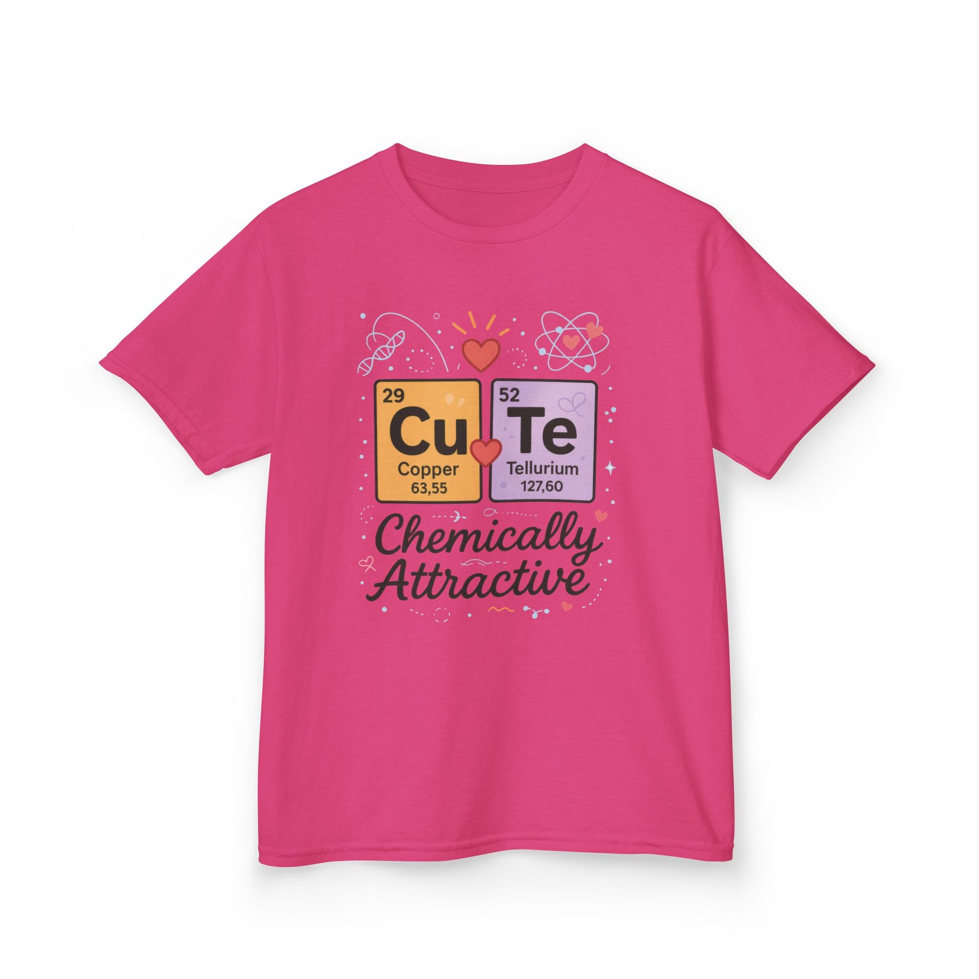 Introducing a delightful Kids Heavy Cotton™ Tee that combines comfort and fun, perfect for young ones who love to express themselves. Featuring a creative design that celebrates both cuteness and chemistry, this tee is sure to spark joy and conversation! Its soft, midweight cotton is breathable and versatile enough for any season, making it a must-have in every child's wardrobe. Ideal for everyday adventures at school, playdates, or family outings, this tee is also a fantastic choice for birthdays or special occasions. Crafted for kids who love science with a playful twist, it's perfect for little budding chemists and imaginative explorers alike! Product features - Made with 100% midweight US cotton for a soft, comfortable feel. - Seamless construction reduces fabric waste and adds to the neat appearance. - Ribbed collar retains shape and offers flexibility for easy wear. - Includes tear-away labels for added comfort and a scratch-free experience. - Ethically sourced materials ensure safety and sustainable production. Care instructions - Machine wash: warm (max 40C or 105F) - Non-chlorine: bleach as needed - Tumble dry: medium heat - Iron, steam or dry: low heat - Do not dry clean