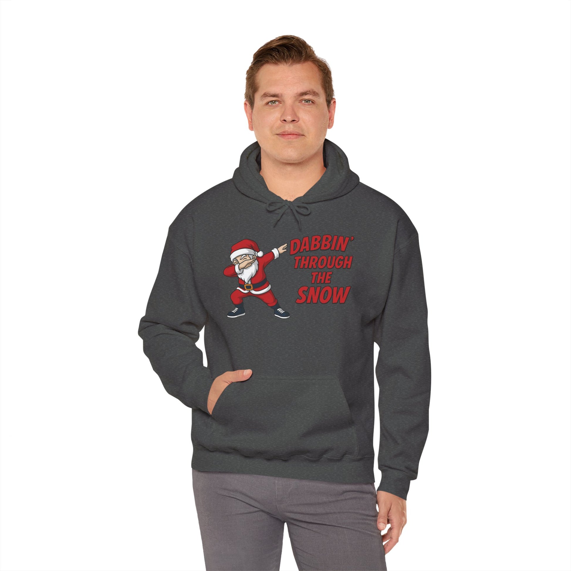 Get festive and funny this Christmas with our “Dabbin’ Through The Snow” Santa hoodie! Perfect for men who love humor, dance, and the holiday spirit — a cozy and hilarious Christmas sweatshirt. The Gildan Heavy Blend™ hoodie, made from a soft cotton-poly blend, provides warmth and durability. Its unisex fit offers everyday versatility, with ribbed cuffs and hem to keep the shape intact. A large front pocket adds convenience, while the double-lined hood with matching drawcord gives it a clean, cohesive look. Trusted for custom printing and casual wear, the Gildan 18500 is a reliable choice that balances comfort and longevity. Disclaimer: - Due to the fabric properties, the White color variant may appear off-white rather than bright white. .: The Gildan 18500 is made from a medium-heavy fabric (8.0 oz/yd² (271 g/m²)) made of 50% cotton and 50% polyester. This blend delivers cozy warmth and a soft feel that makes it perfect for chilly days. .: The classic fit along with the pouch pocket and the tear-away label make for a highly comfortable, scratch-free wearing experience. .: The color-matched drawcord and the double-lined hood add a stylish flair and durability that tie everything together. .: Made using 100% ethically grown US cotton. Gildan is also a proud member of the US Cotton Trust Protocol ensuring ethical and sustainable means of production. The blank tee's dyes are OEKO-TEX-certified dyes with low environmental impact. .: Fabric blends: Heather Sport colors - 60% polyester, 40% cotton .: Embroidery decoration method available on either left chest, center chest, or large center chest, as well as right + left wrists