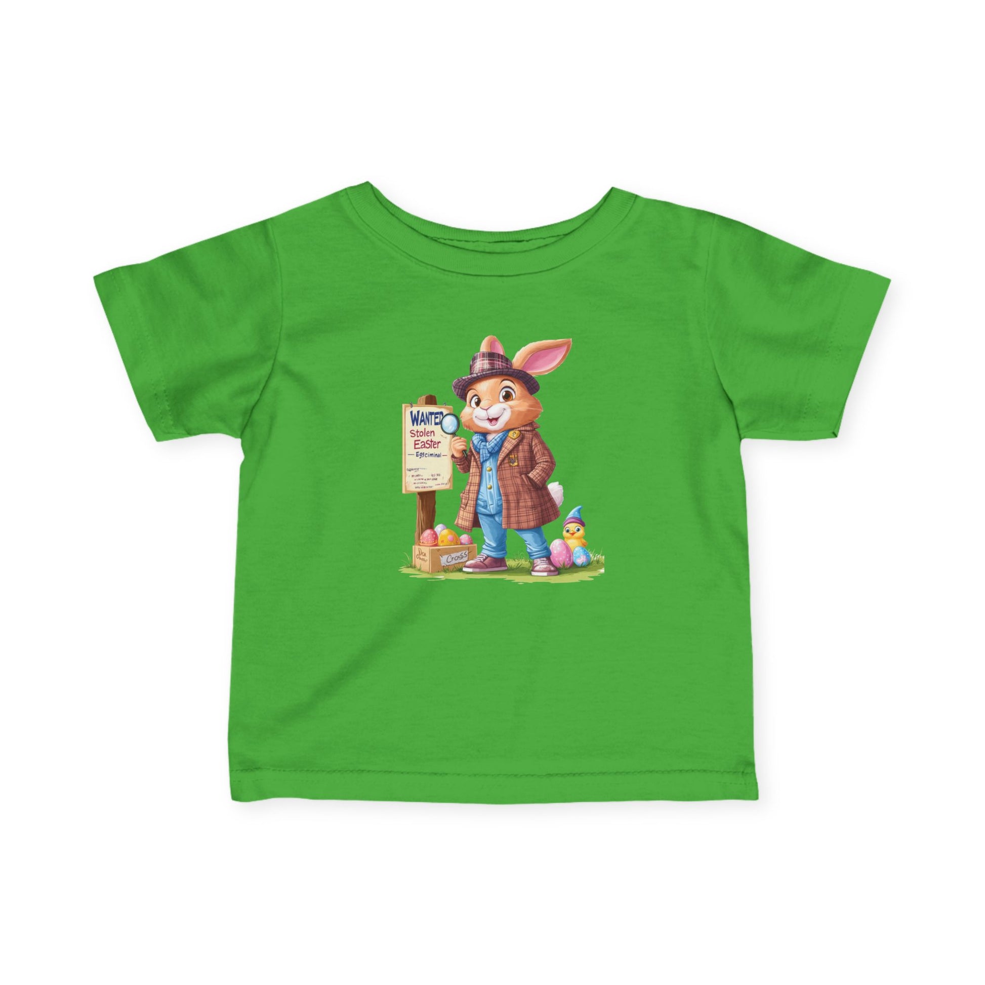 Detective Bunny Baby Tee - Cute Easter Egg Hunt Shirt for Infants 6-24 Months, Fun Spring Outfit with Mystery Bunny & Colorful Eggs