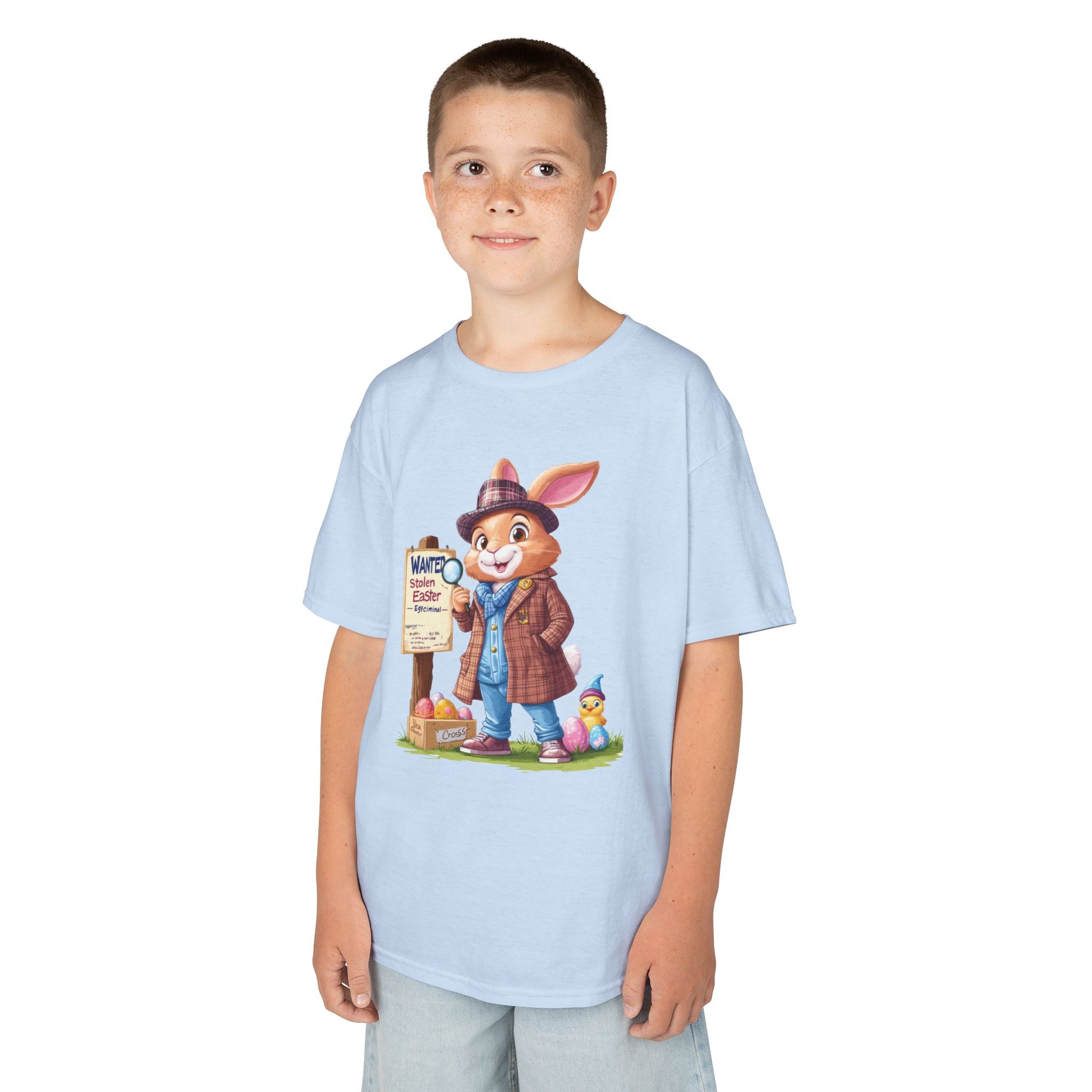 Detective Bunny Easter Kids Tee - Fun Egg Hunt T-Shirt with Mystery Theme, Cute Spring Gift for Kids, Heavy Cotton Easter Outfit