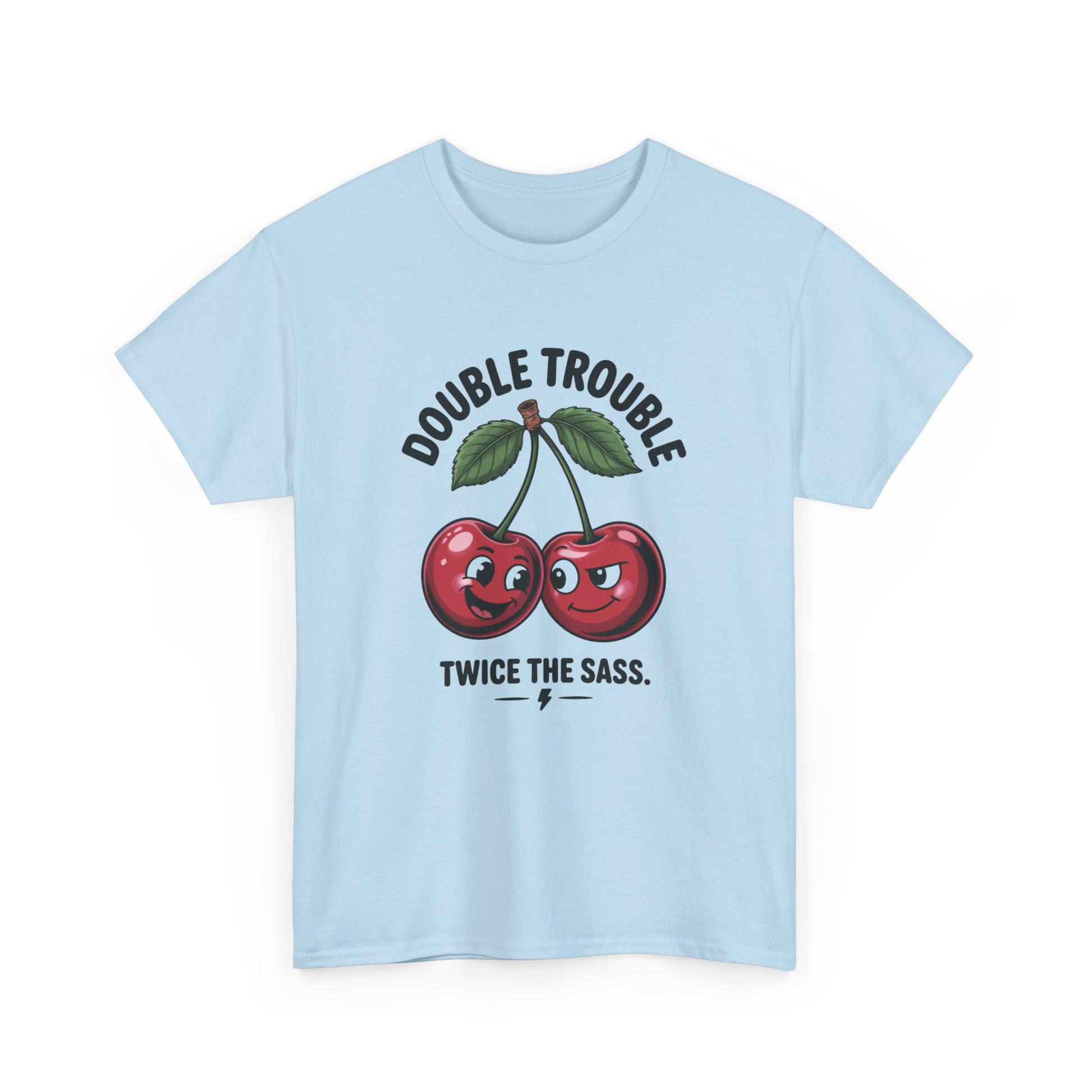 Double Trouble Cherry Graphic Tee, Funny Cute Womens T-Shirt, Twice the Sass Quote Shirt, Sassy Cherry Cartoon Gift