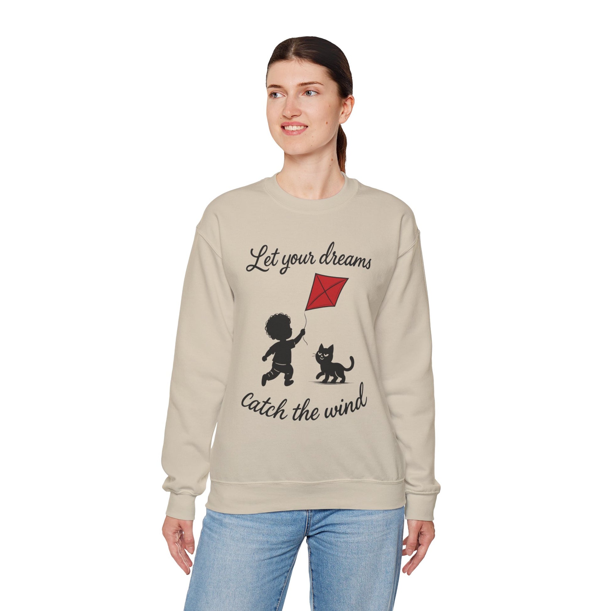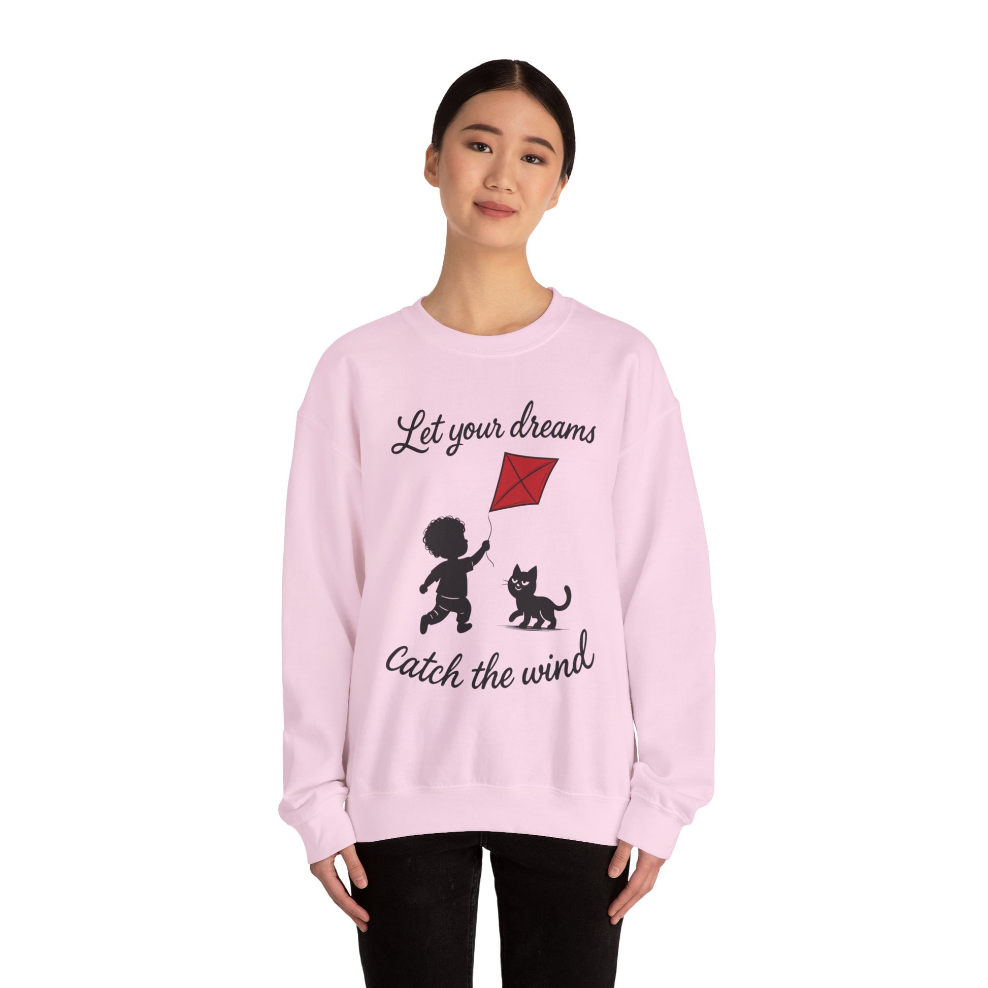 Dream Big Womens Crewneck Sweatshirt, Inspirational Gift, Cozy Lounge Wear, Cat Lover's Apparel, Kid's Motivation Sweatshirt