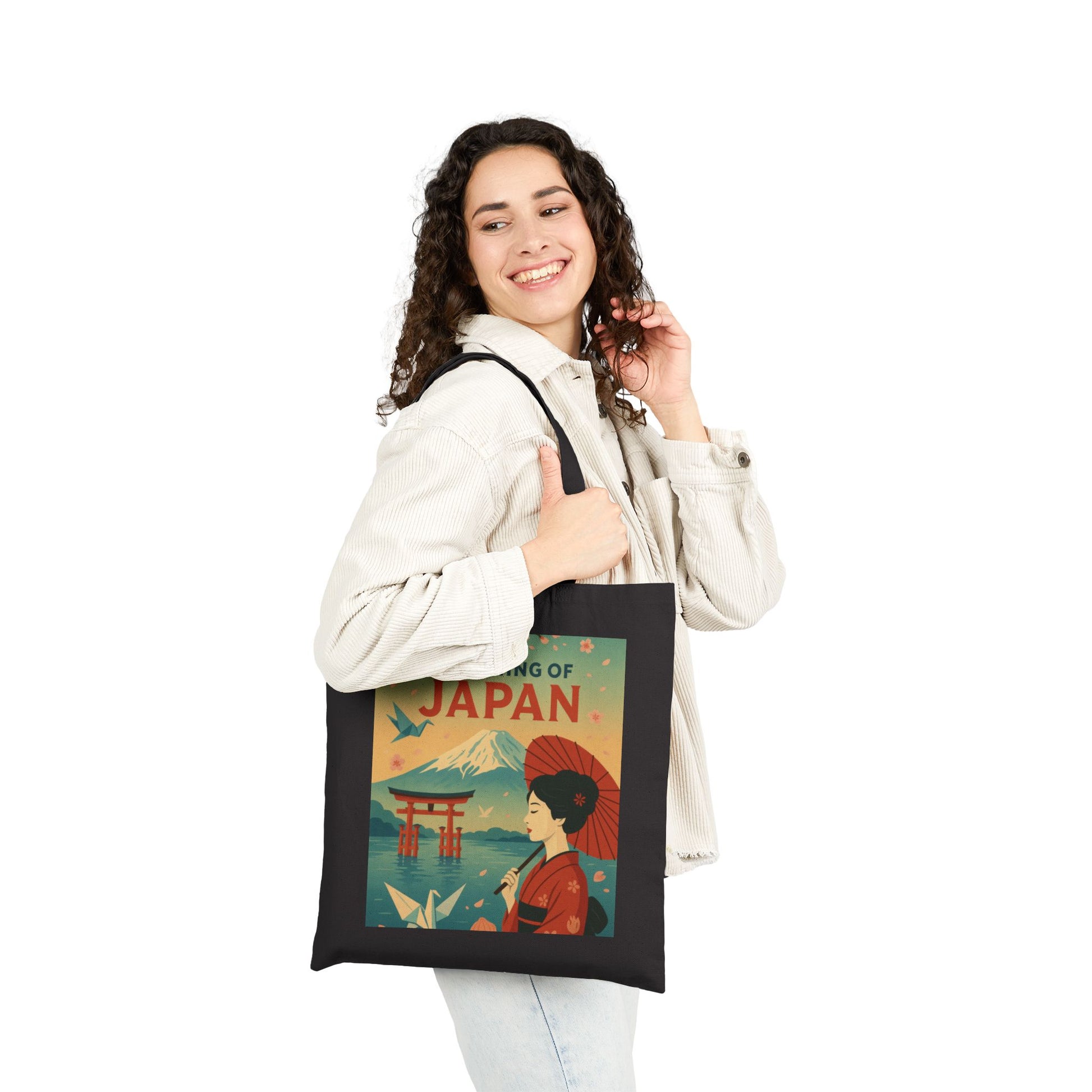 Dreaming of Japan Canvas Tote Bag, Eco-friendly Bag, Travel Tote, Gift for Travelers, Japanese Art Bag, Floral Design Bag