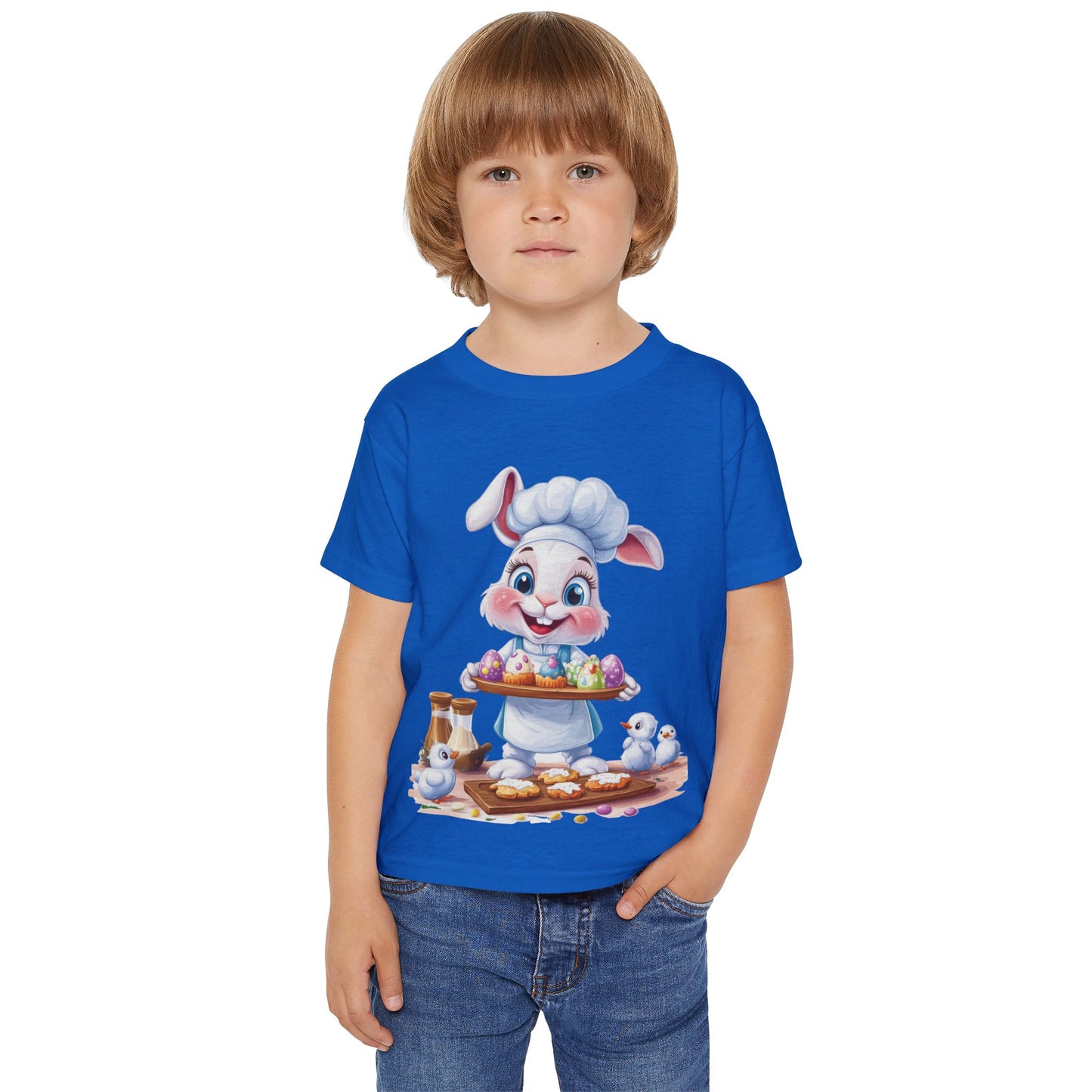 Easter Bunny Chef Toddler T-Shirt - Cute Spring Baking Shirt with Colorful Eggs - Cotton Easter Tee for Kids, Easter Toddler Gift