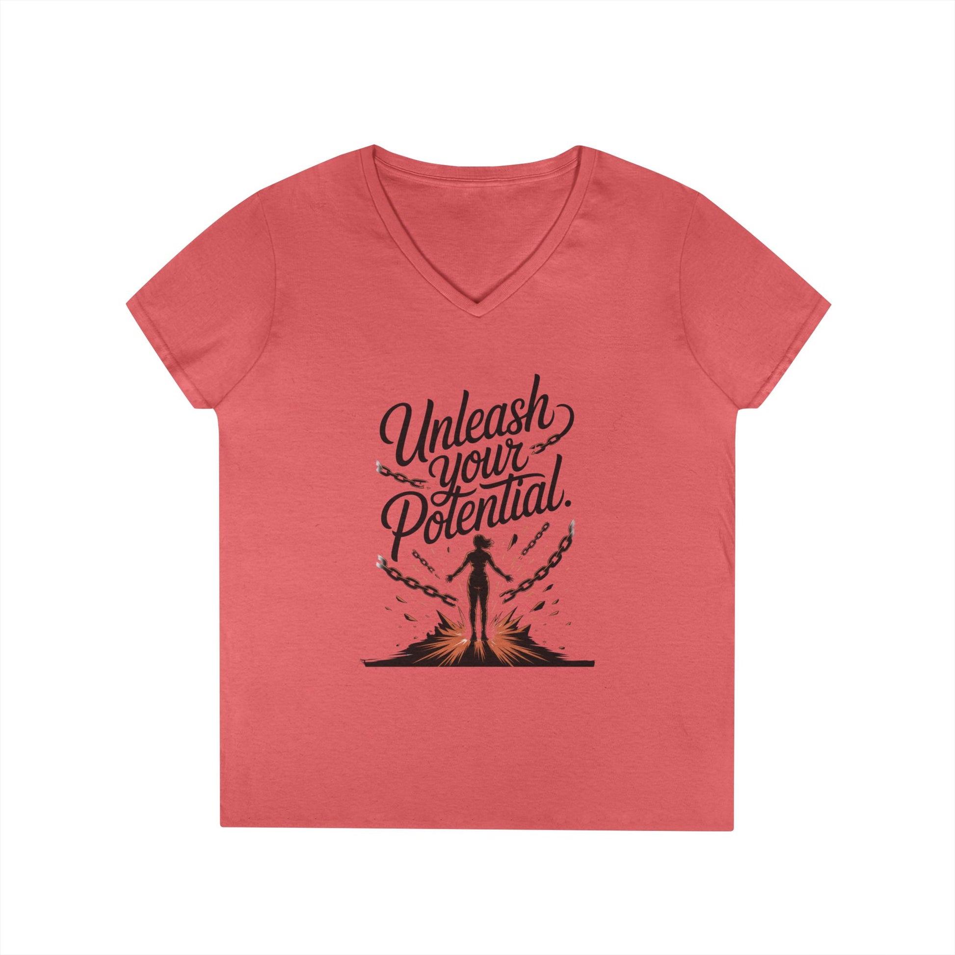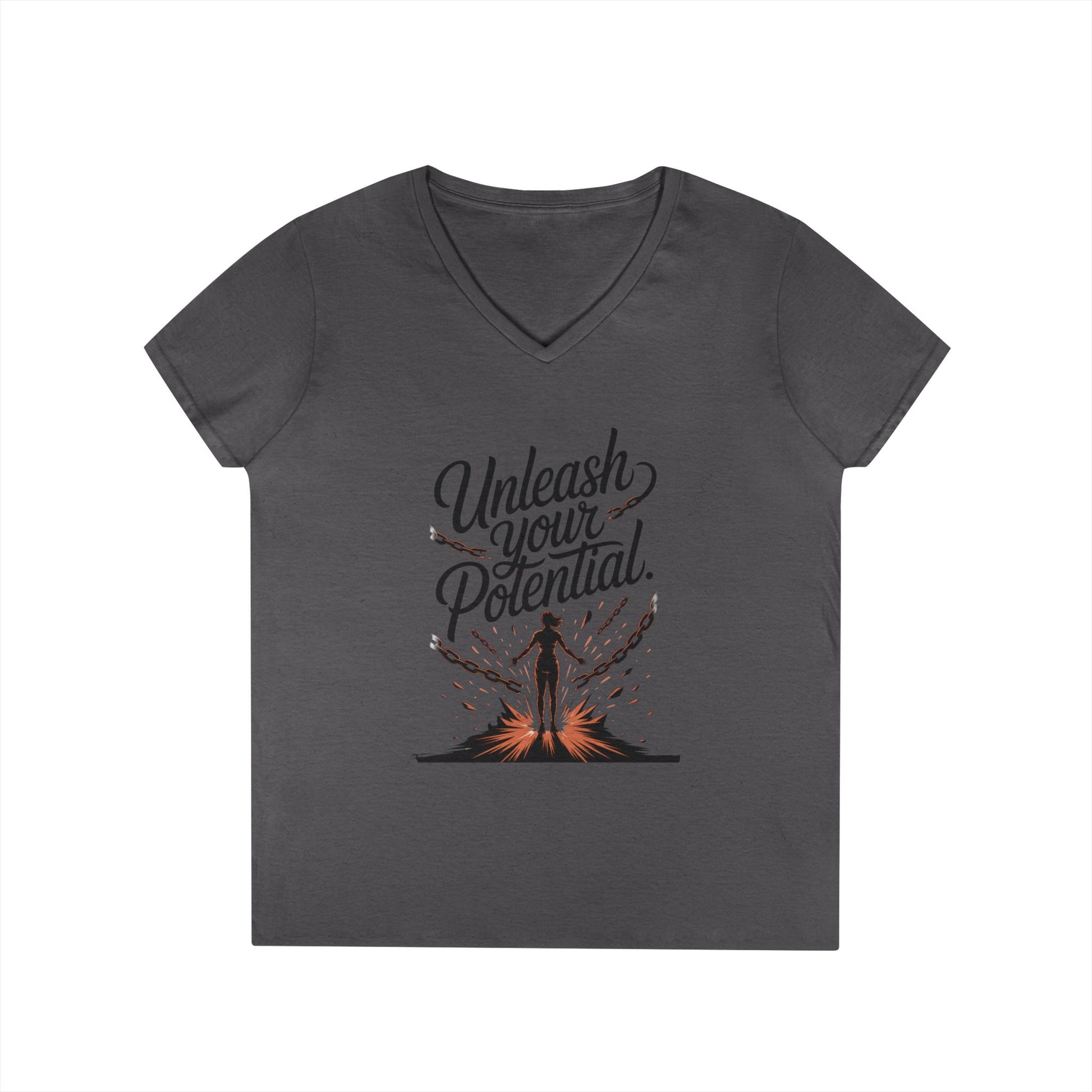 Empowering Ladies' V-Neck T-Shirt | Unleash Your Potential | Gift for Motivation, Birthday, Inspirational Wear, Positive Energy Top