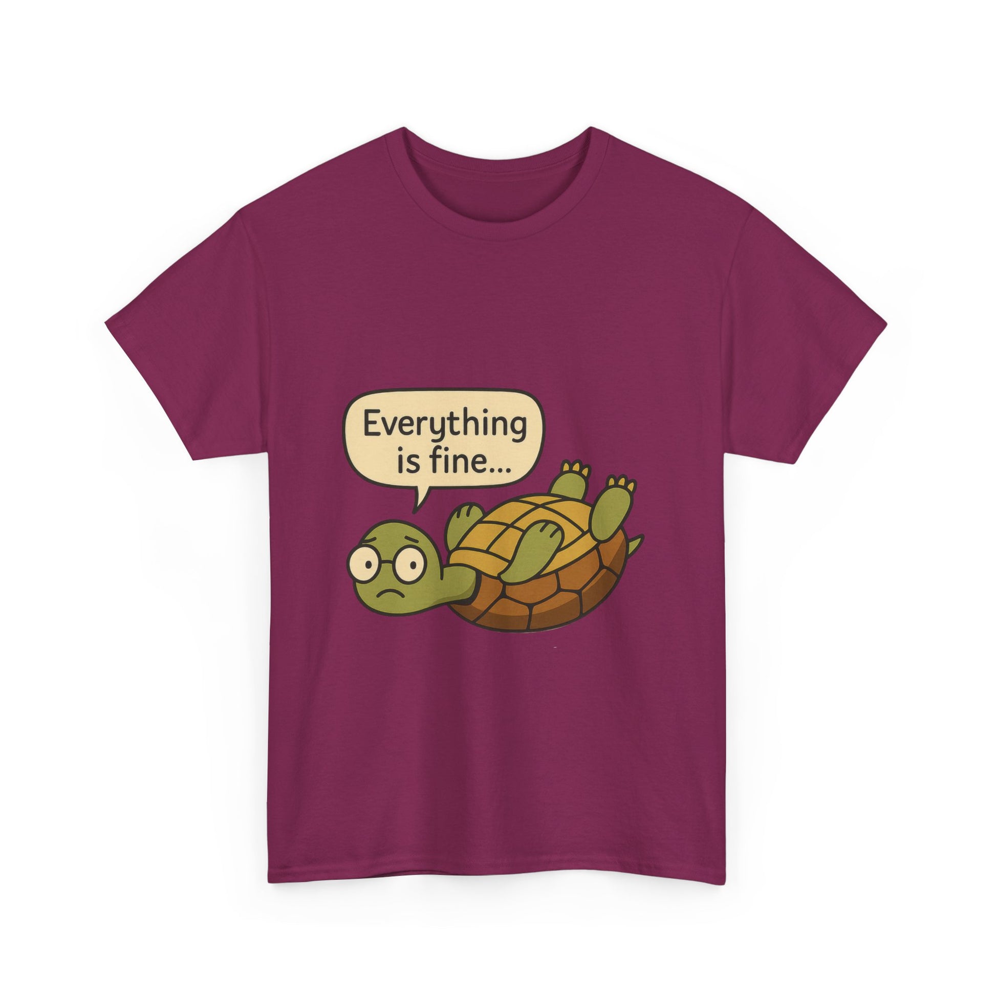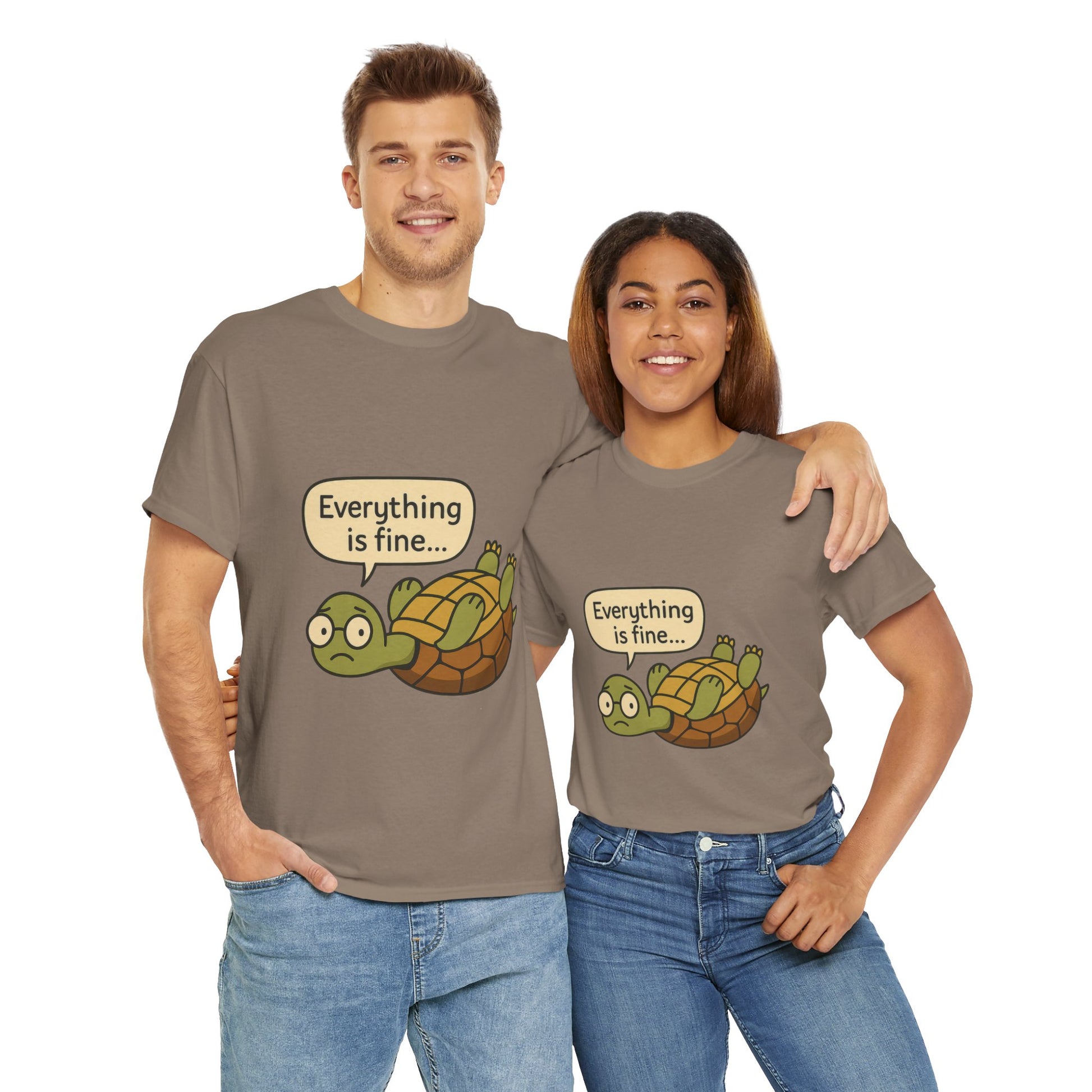 Everything is Fine Turtle Tee, Funny Unisex Cotton Tee, Cute Animal Shirt, Gift for Nature Lovers, Great for Humor, Positive message t-shirt