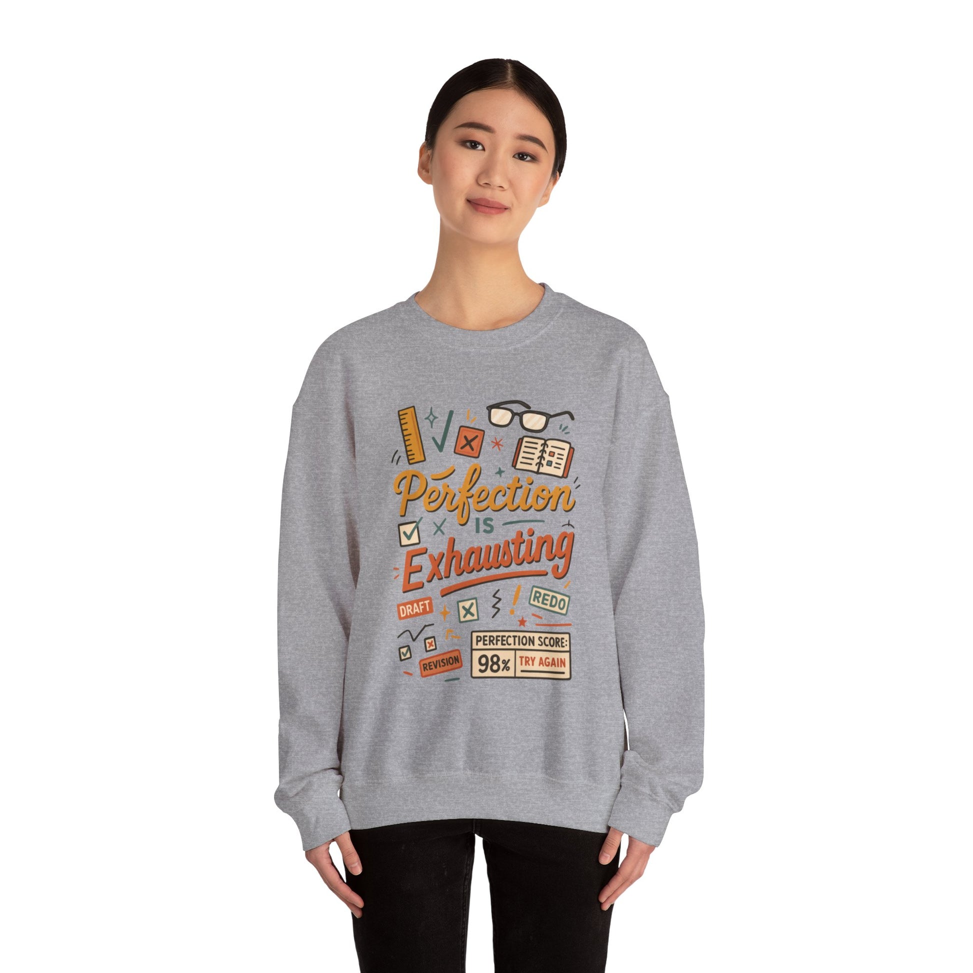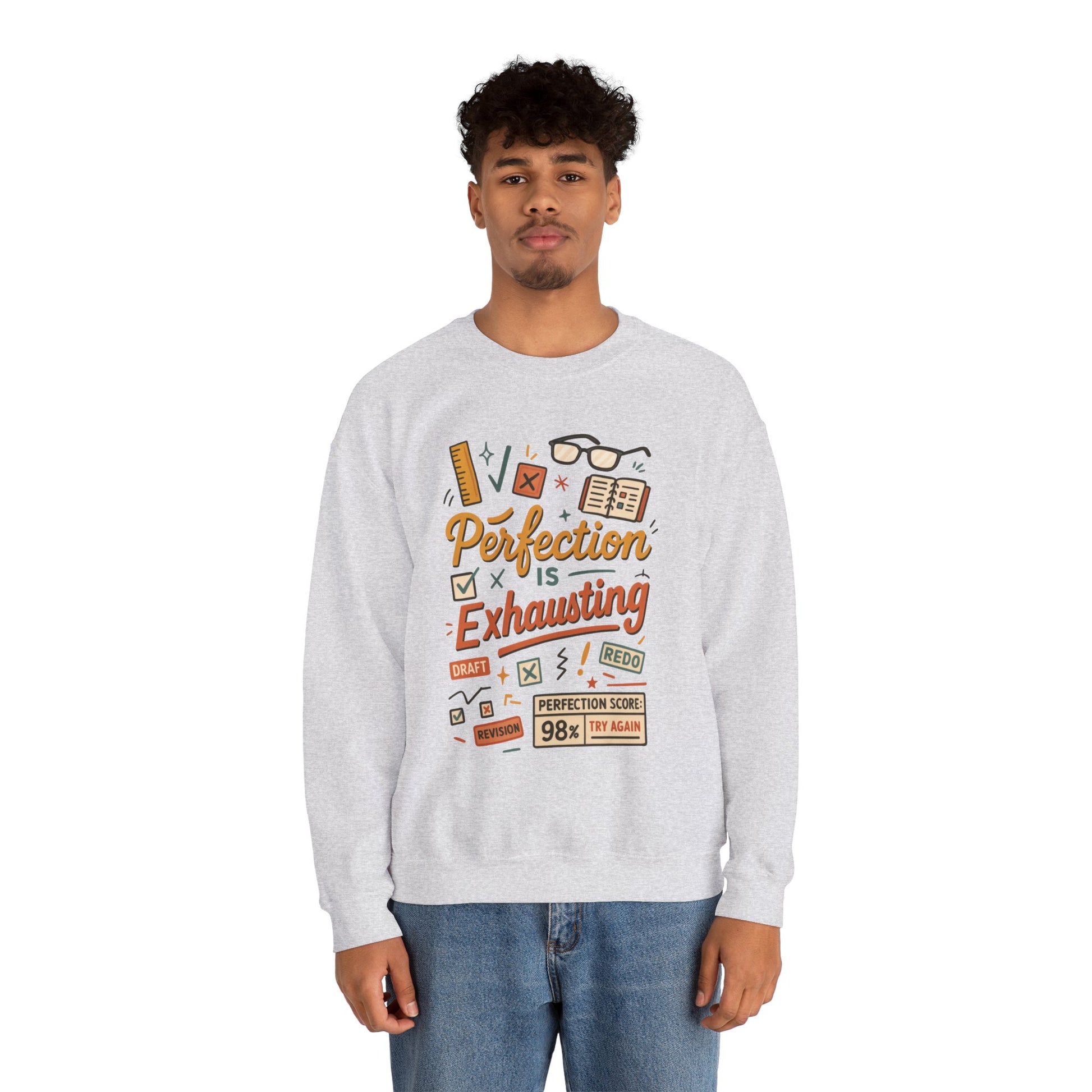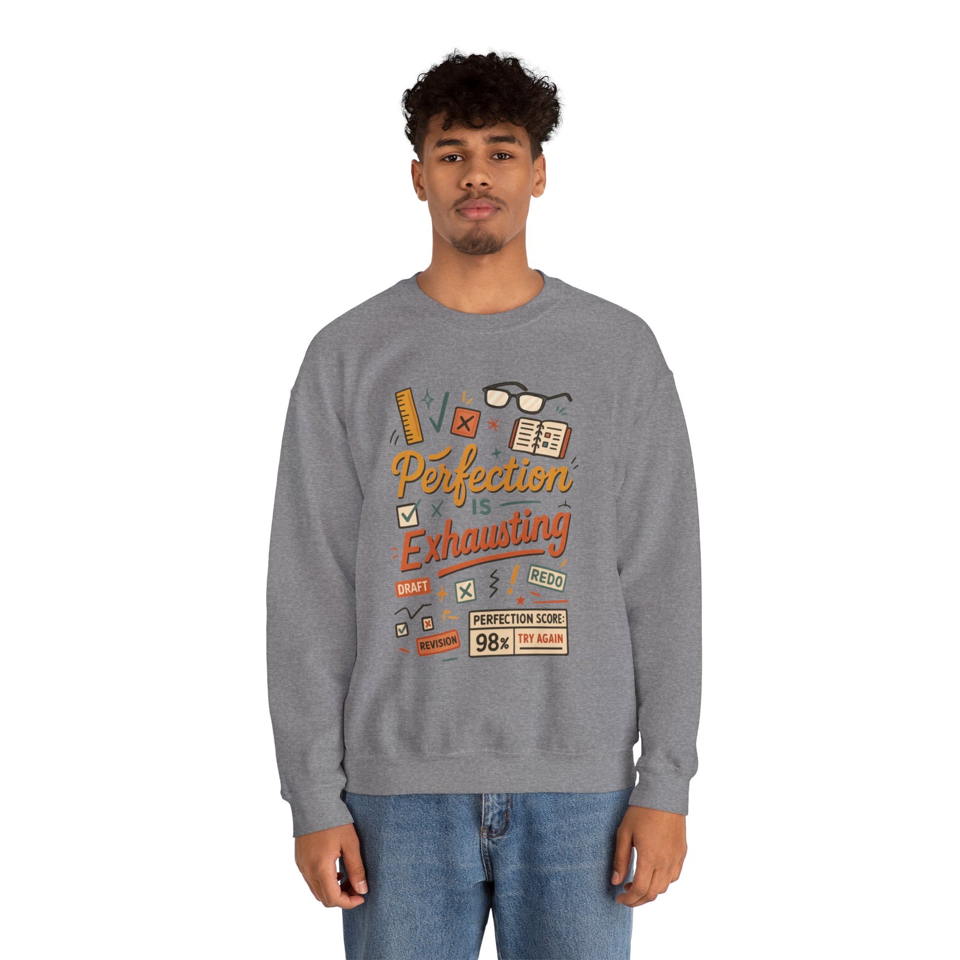 Exhausting Perfection Crewneck Sweatshirt, Funny Gift for Students, Cozy Unisex Sweater, Gift for Graduates, Motivational Apparel