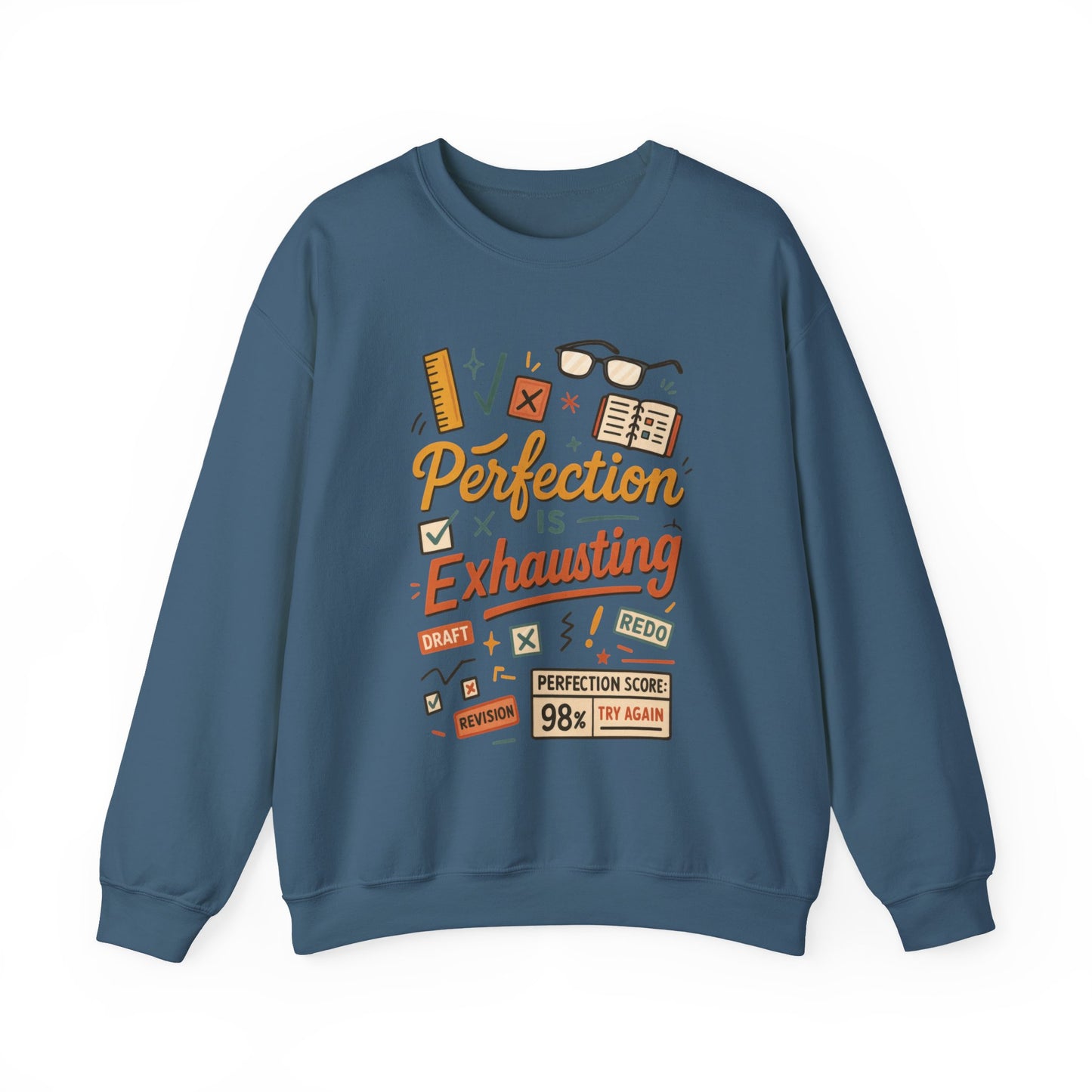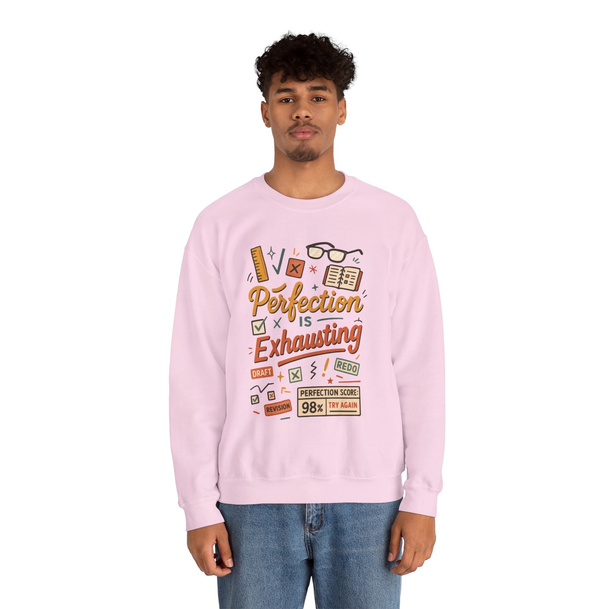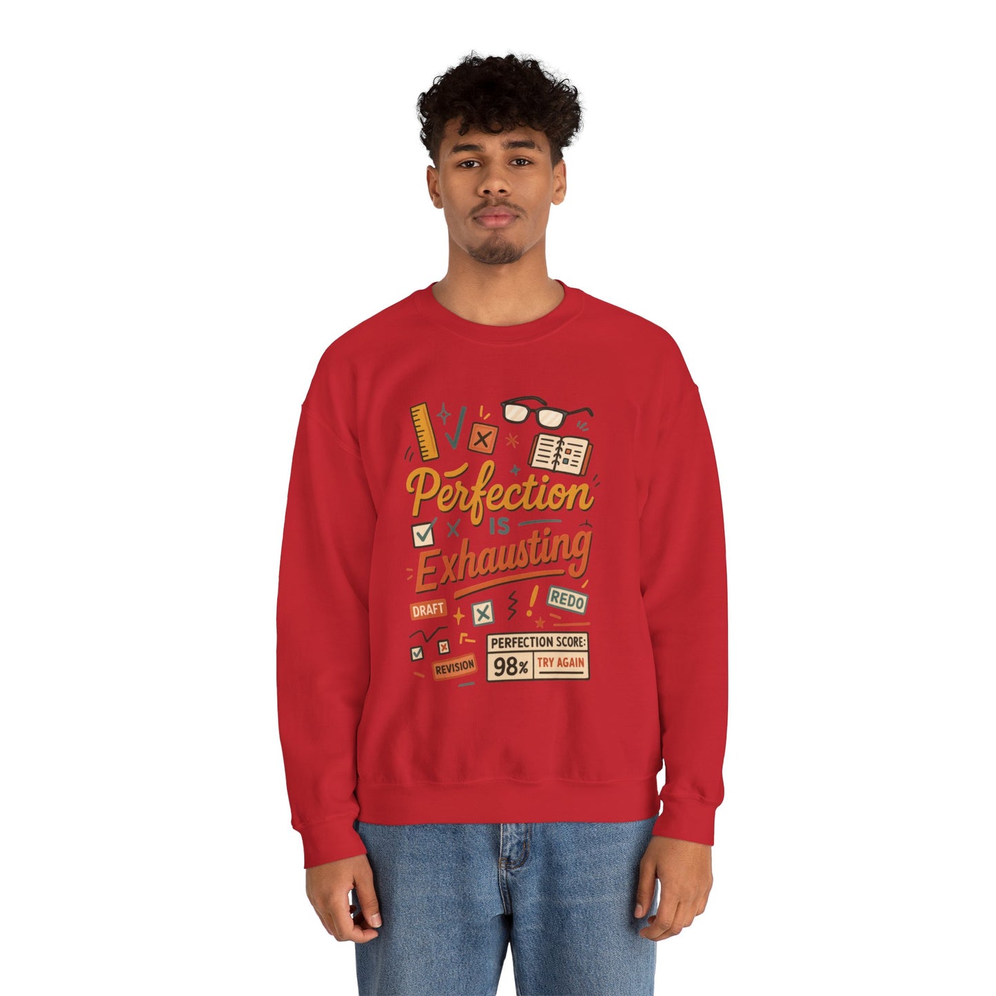 Exhausting Perfection Crewneck Sweatshirt, Funny Gift for Students, Cozy Unisex Sweater, Gift for Graduates, Motivational Apparel