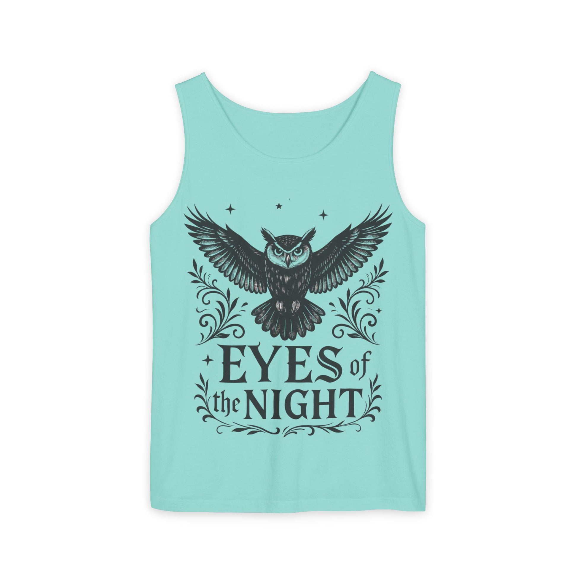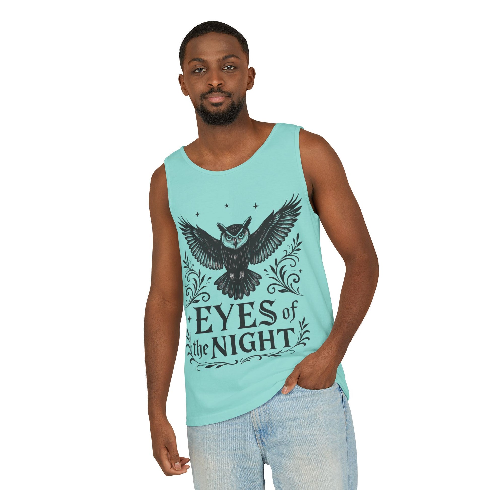 Eyes of the Night Owl Tank Top, Mens Summer Wear, Boho Aesthetic, Festival Outfit, Nature Lover Gift, Halloween Apparel