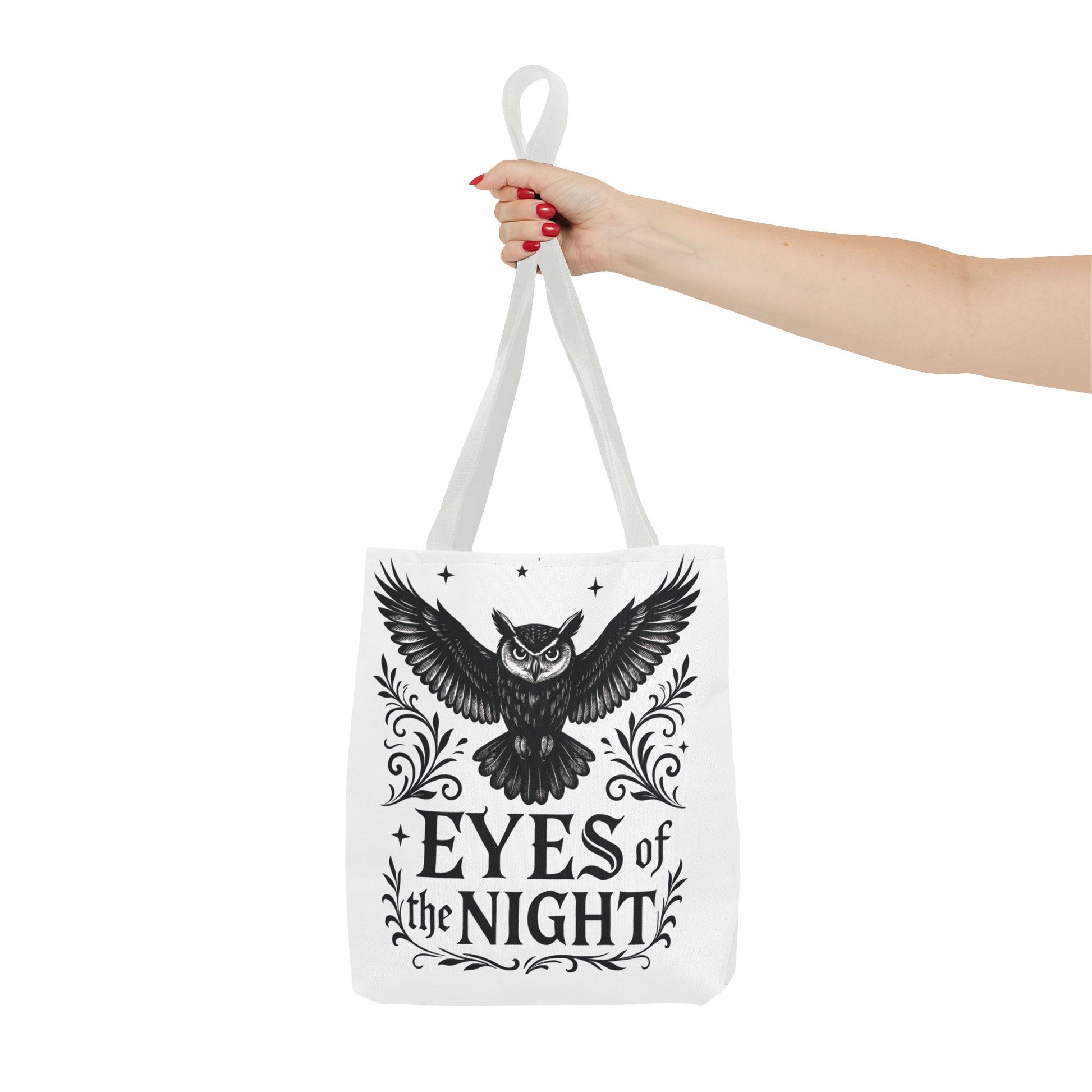 Eyes of the Night Owl Tote Bag, Artsy Shopping Bag, Eco-Friendly Carryall, Unique Gift for Animal Lovers, Halloween Decor, Beach Tote