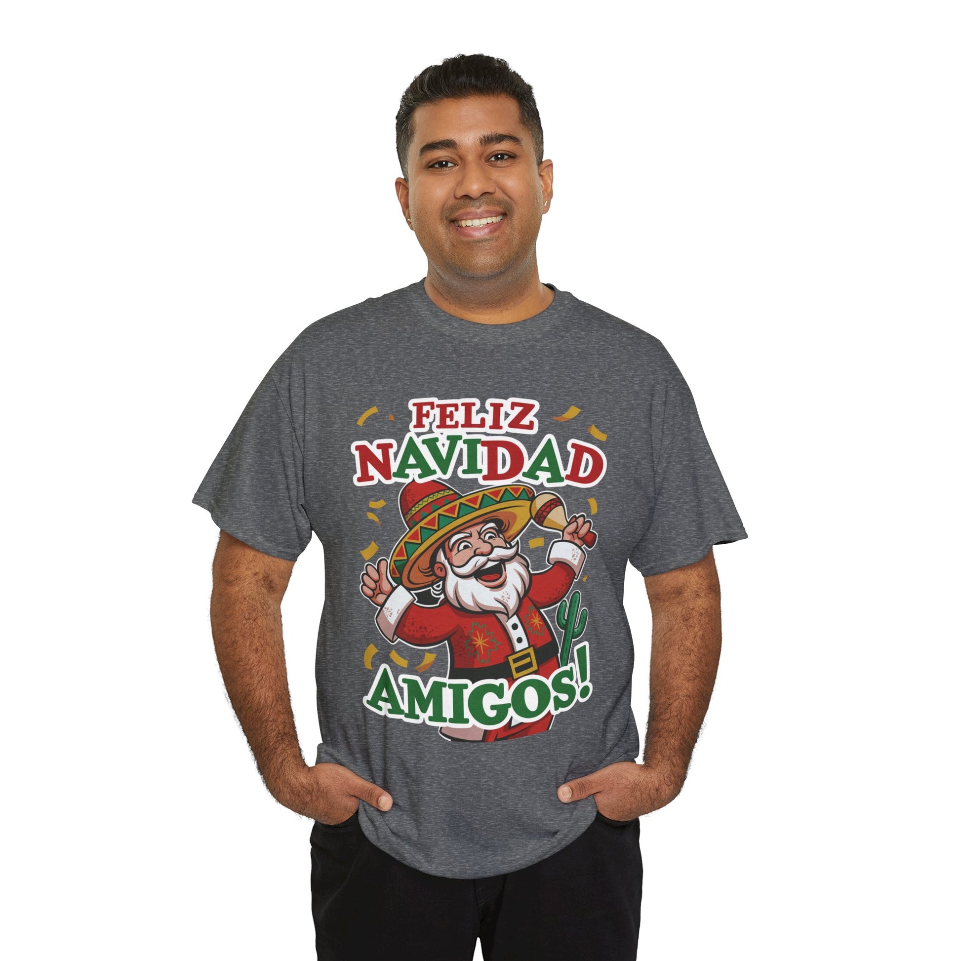 Feliz Navidad Amigos! Funny Mexican Santa Christmas T-Shirt, Latin Holiday Tee, Sombrero Santa Fiesta Shirt