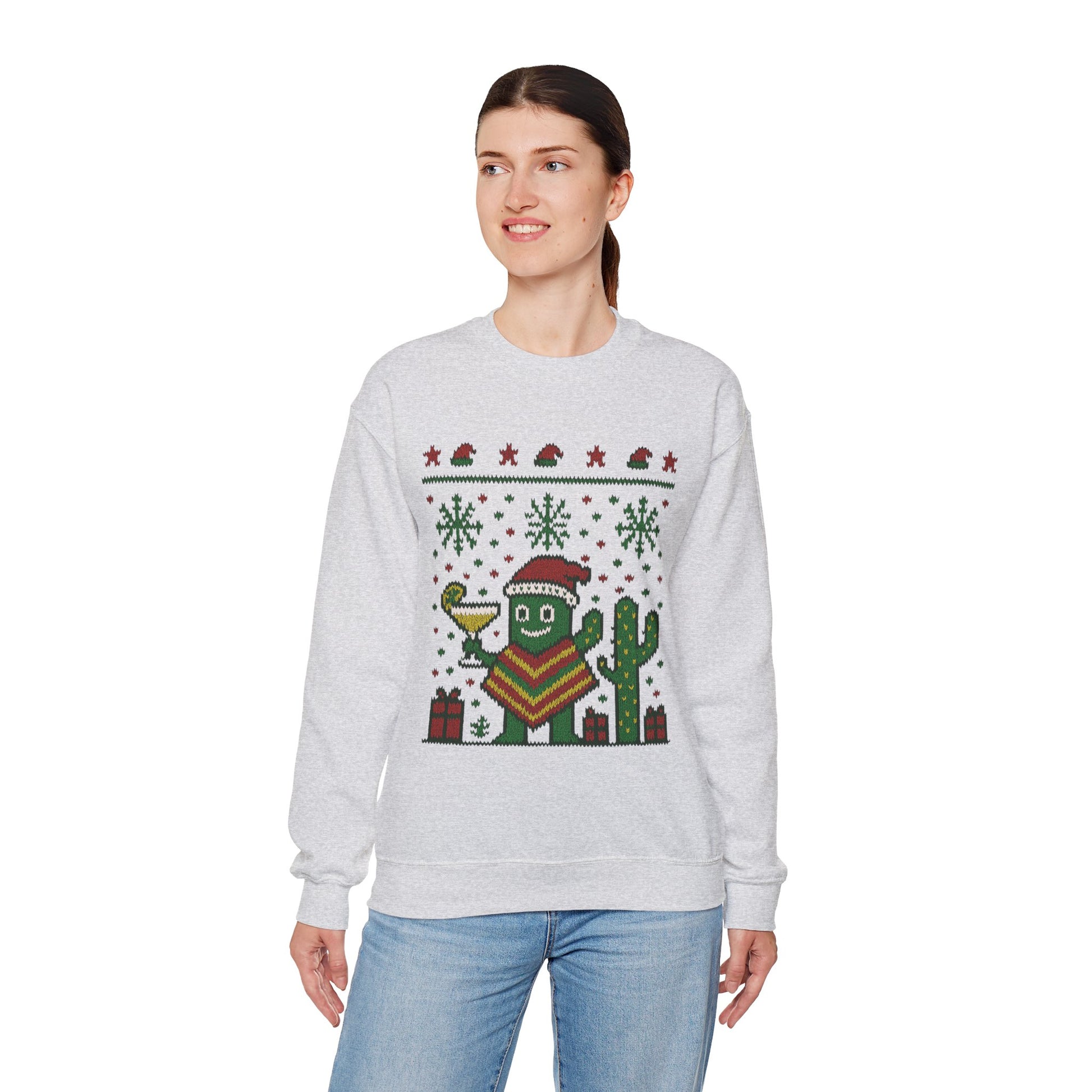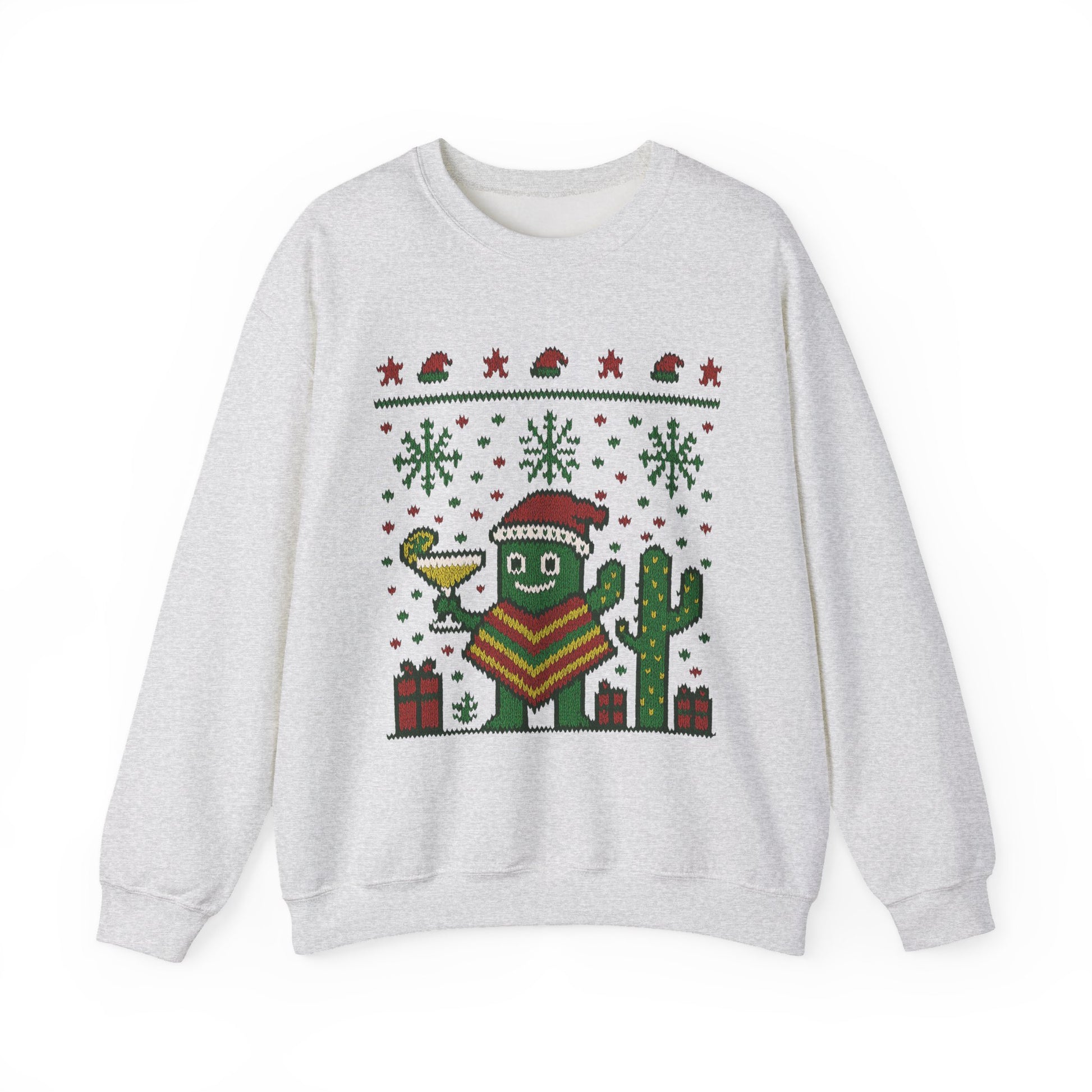 Celebrate Christmas with a twist! This “Festive Cactus” sweatshirt blends holiday warmth and humor — featuring a Santa hat, gifts, and a cheerful cactus with a margarita. Perfect for cozy winter days or Christmas parties. The Gildan 18000 sweatshirt is a unisex heavy blend crewneck made from a 50/50 cotton-polyester fabric, combining softness with lasting durability. Its smooth surface supports crisp, vibrant prints and embroidery, while the ribbed-knit collar and reinforced cuffs help it keep its shape over time. A seamless body design reduces irritation and adds to overall comfort. Practical, sturdy, and print-friendly, the Gildan 18000 sweatshirt remains a top choice for custom apparel. Disclaimers:- Due to the fabric properties, the White color variant may appear off-white rather than bright white. - Subtle orange hue shifts with lighting in the Orange color variant. .: The Gildan 18000 sweatshirt is built for comfort and durability, made from a medium-heavy (8.0 oz/yd² (271 g/m²)) 50/50 cotton-polyester blend. .: The classic fit along with the crew neckline deliver a comfy wearing experience with a clean-cut style. Meanwhile, the double-needle stitching at the shoulder, armhole, neck, waistband, and cuff seams add top-tier durability. .: Say goodbye to itchiness thanks to the gray, pearlized tear-away label. .: The Gildan 18000 sweatshirt is crafted from ethically grown US cotton and backed by the US Cotton Trust Protocol, with OEKO-TEX certified dyes that meet safety and environmental standards. .: Fabric blends: Heather Sport colors - 60% polyester, 40% cotton .: Embroidery decoration method available on either left chest, center chest, or large center chest, as well as right + left wrists
