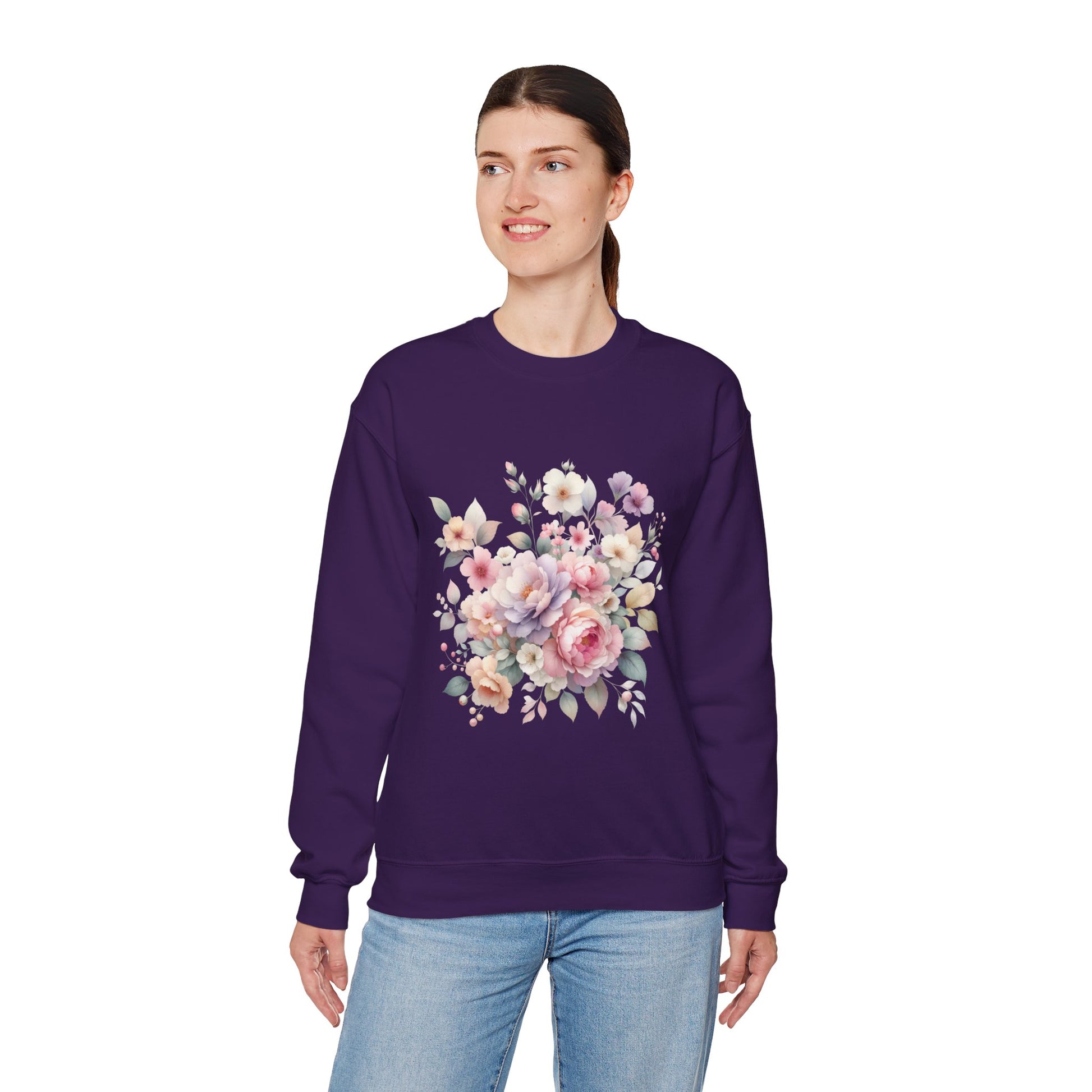 Floral Crewneck Sweatshirt, Cozy Floral Sweatshirt for Spring, Gift for Her, Women's Floral Top, Pastel Floral Sweatshirt