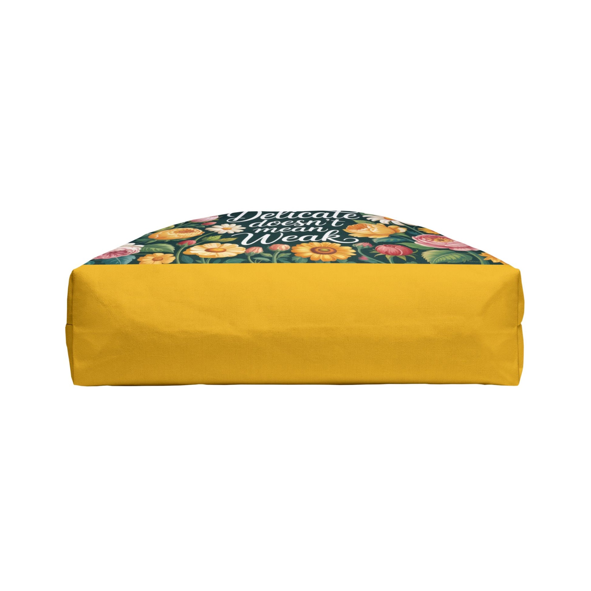 Elevate your day trips and getaways with this stylish Weekender Tote Bag. Adorned with vibrant floral designs and an empowering message, it brings warmth and positivity to every journey. Spacious and functional, it’s perfect for beach days, picnics, or weekend retreats. Designed for the modern woman who loves to blend practicality with flair, this tote complements an active lifestyle while making a fashion statement. Ideal for birthdays, graduations, Mother’s Day, or any occasion that celebrates individuality and strength, this bag is a thoughtful gift for friends and family. Let your adventures bloom with style! Product features - 100% spun polyester: Retains shape and is wrinkle-resistant, requiring no ironing. - Vibrant colors: Features bright, crisp designs that stand out. - Black woven handles: Strong, cotton webbing handles ensure easy carrying. - Spacious size: Generously sized at 24" x 13" (60.9 cm x 33 cm) to fit all essentials. - All-over print: Features eye-catching designs on every inch of the bag. Care instructions - Dryclean - Spot clean/Air dry