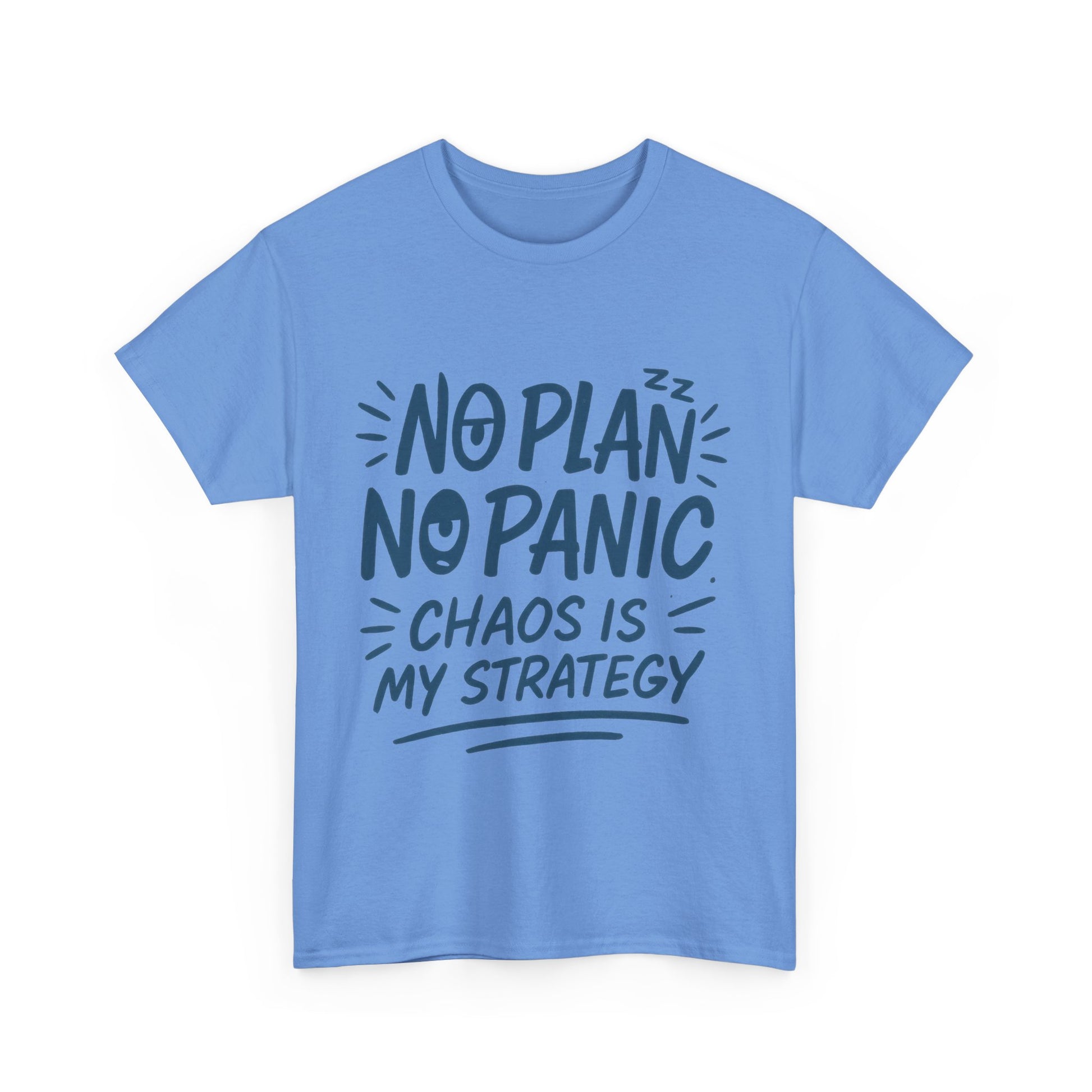 Funny Chaos Strategy T-Shirt, No Plan No Panic Quote Shirt, Cute Tee for Women, Humorous Gift Idea, Casual Relaxed Fit Top