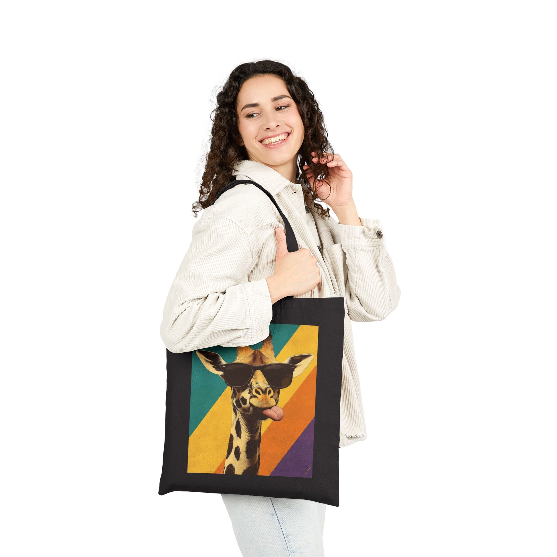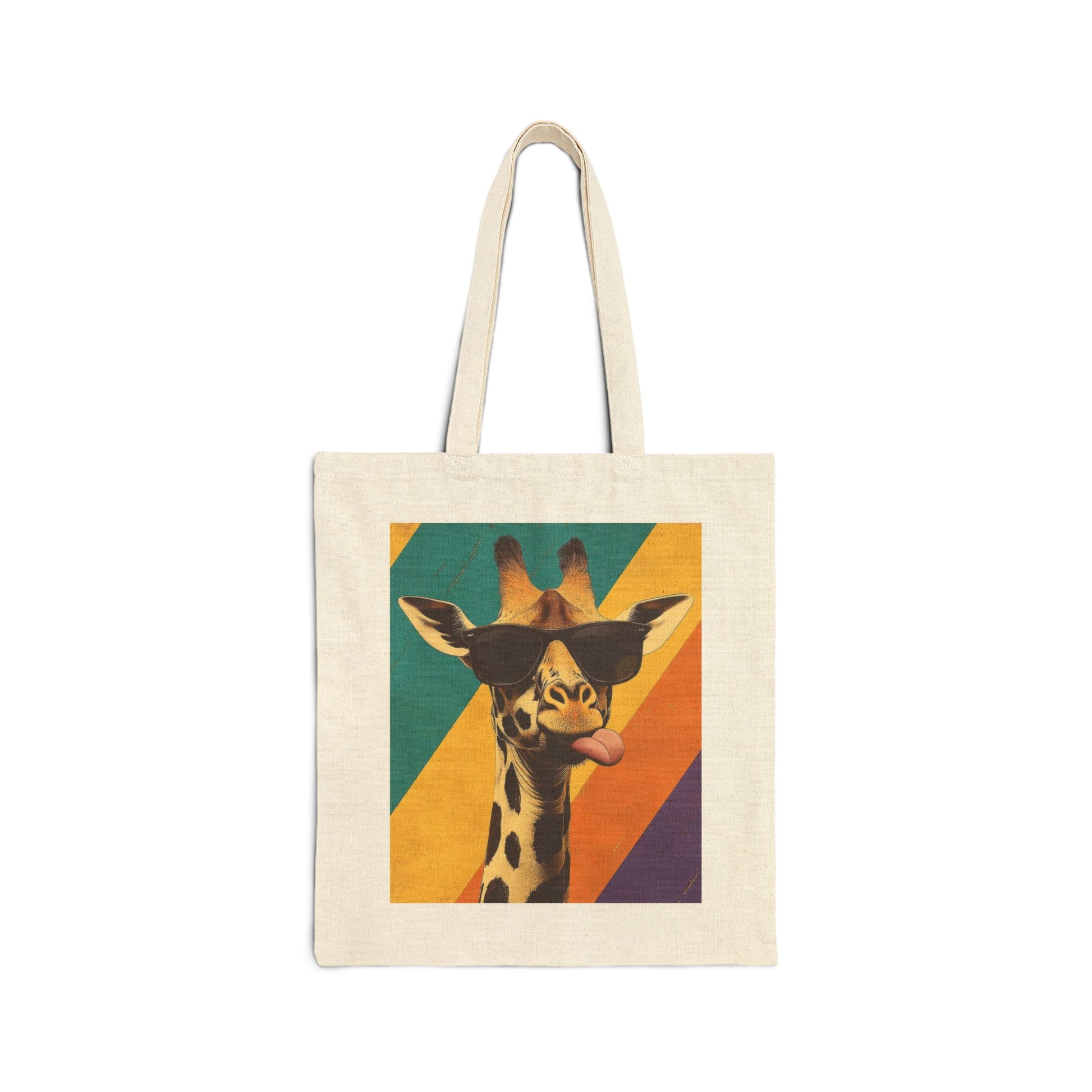 Funny Giraffe Tote Bag, Retro Pop Art Canvas Bag with Sunglasses & Attitude, Colorful Animal Print Tote, Quirky Gift for Cool People, Animal Lover Tote