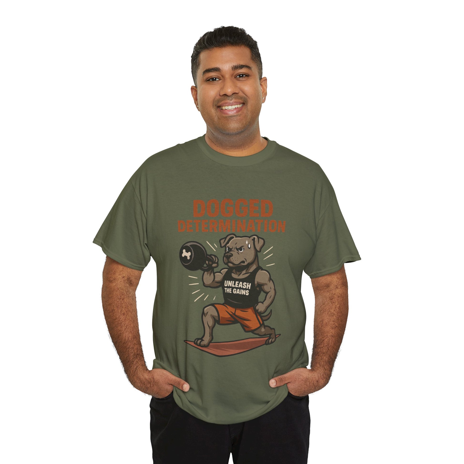 Funny Gym Dog T-Shirt for Men, Workout Bulldog Graphic Tee, Fitness Motivation Shirt, Dog Lover Gift, Dogged Determination Gym Tee