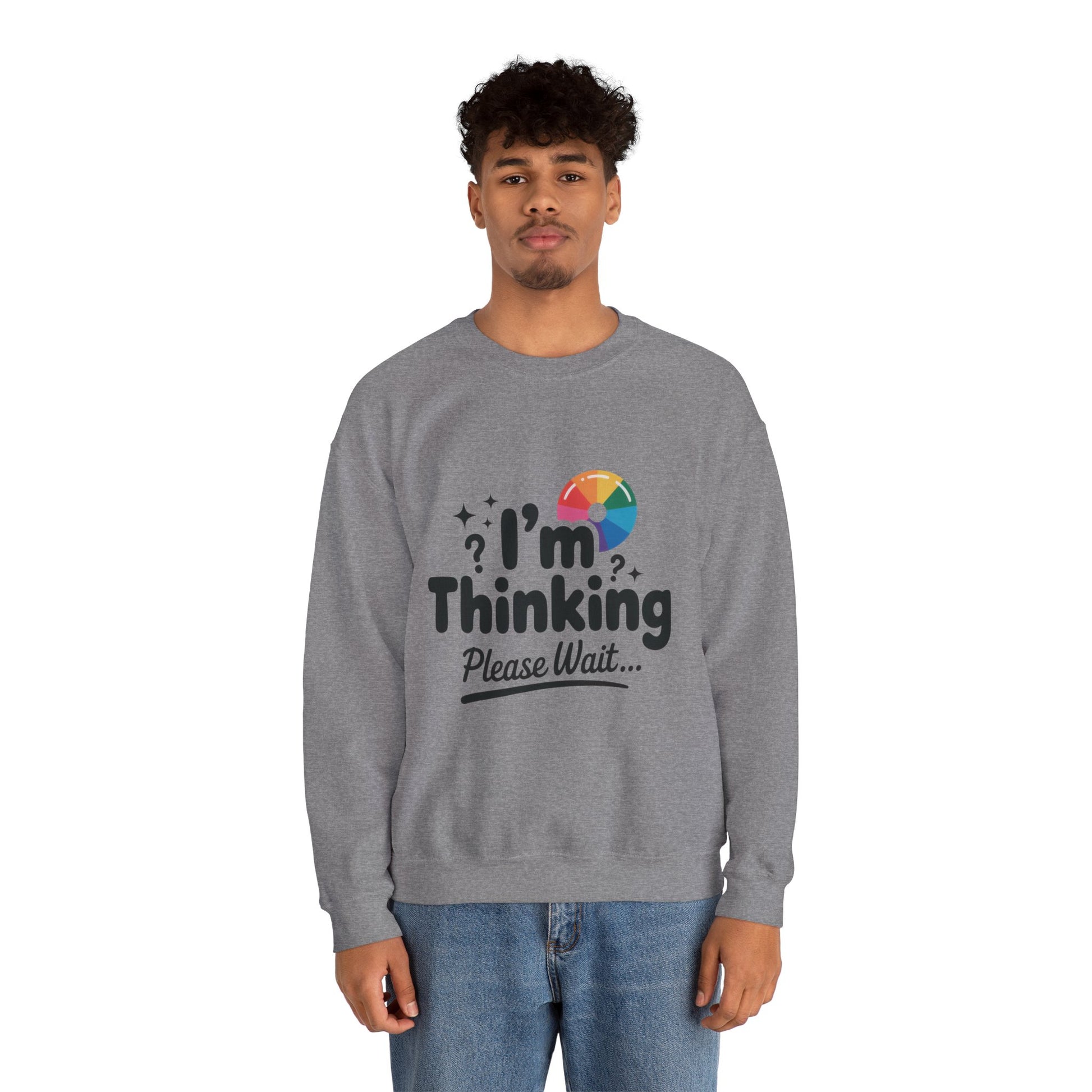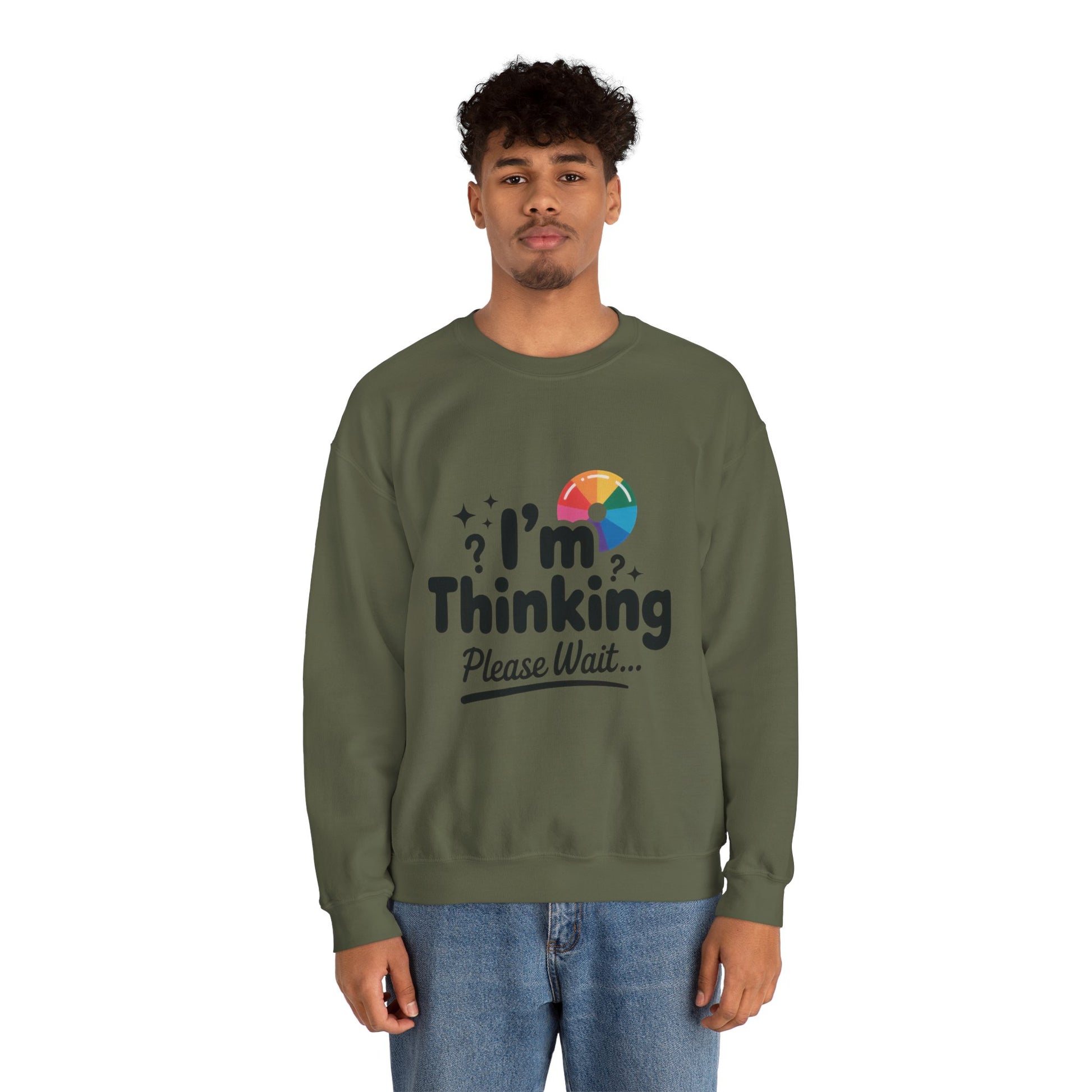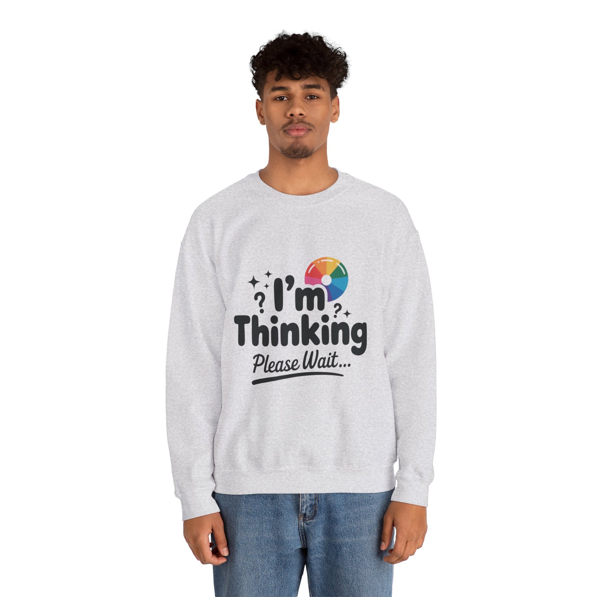 Funny - Im Thinking Please Wait - Mens Sweatshirt, Cute Geeky Gift for Introverts, Programmers, Designers, Humor Crewneck, Gift for Adults