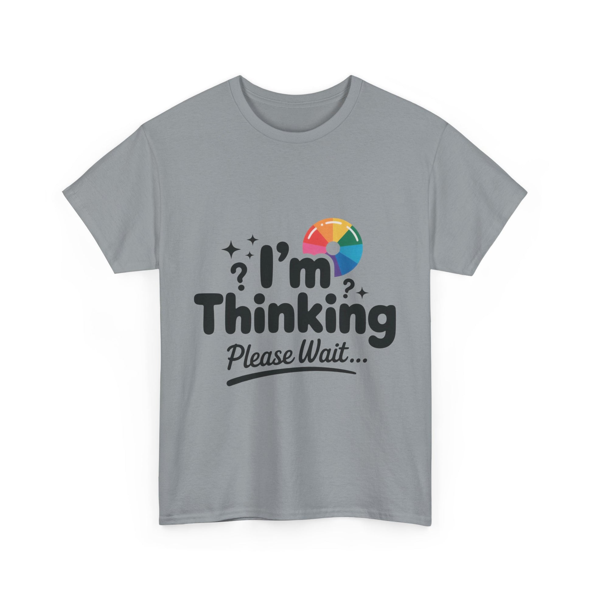 Introducing a stylish and comfortable unisex heavy cotton tee that blends functionality with fun! This shirt features a playful design that reads, 'I'm Thinking Please Wait...' adorned with a vibrant graphic, perfect for expressing your personality while providing a relaxed fit. The medium-weight fabric offers year-round comfort, making it an ideal addition to any wardrobe. Whether you're lounging at home, meeting friends, or just enjoying a casual day out, this tee is versatile enough to wear for a multitude of occasions. It's a wonderful gift for students, thinkers, and anyone who enjoys a touch of humor in their attire. Suitable for casual outings, birthdays, or just to treat yourself, this shirt is sure to become a staple in your everyday ensemble! Product features - Shoulder tape for stability and durability. - Seamless construction reduces fabric waste, enhancing appearance. - Ribbed collar retains shape for a polished look. - Soft, smooth fabric ideal for printing designs. - Eco-friendly materials with a focus on ethical production. Care instructions - Non-chlorine: bleach as needed - Do not iron - Do not dryclean - Machine wash: cold (max 30C or 90F) - Tumble dry: low heat