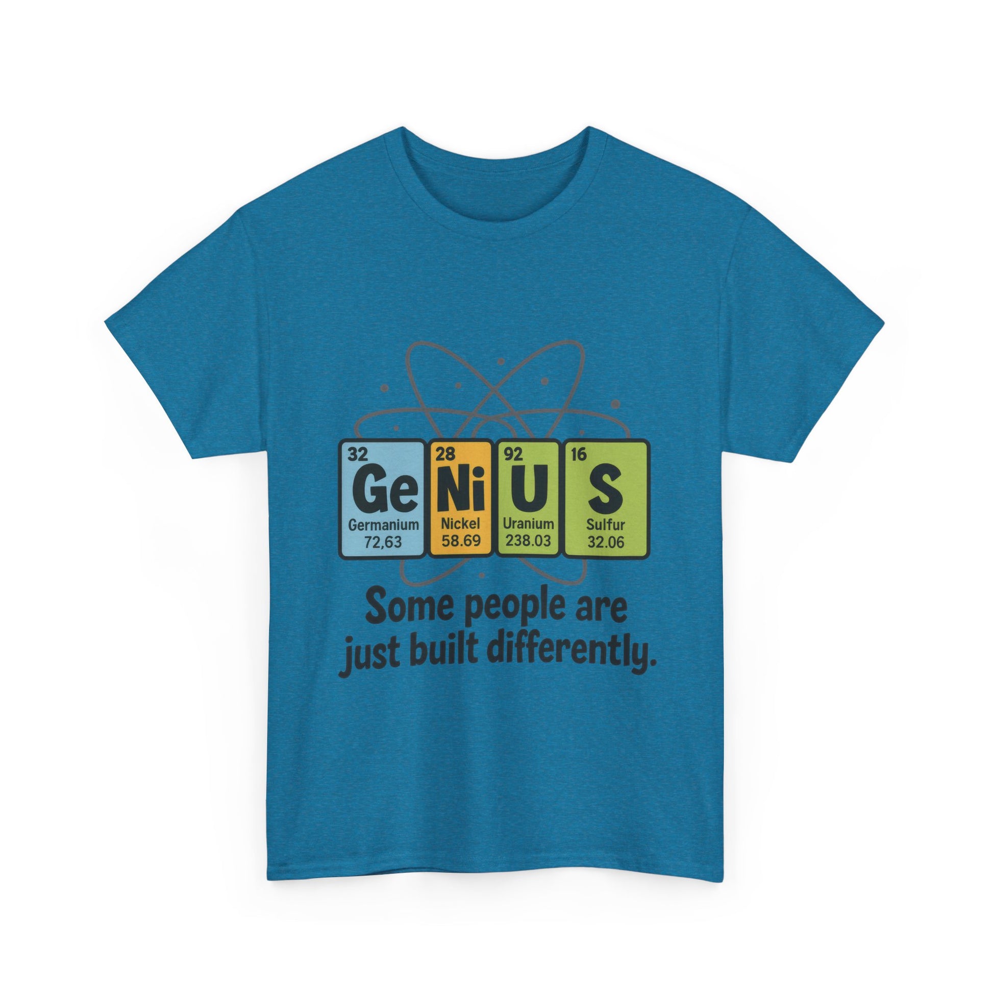 Introducing our Unisex Heavy Cotton Tee, a perfect blend of comfort and style that speaks to those who embrace their unique genius. This tee captures a laid-back yet vibrant atmosphere, ideal for casual outings, family gatherings, or even relaxed office days. Its classic fit and soft fabric make it suitable for anyone seeking a touch of personality in their wardrobe. This shirt is perfect for science enthusiasts, educators, or anyone celebrating milestones like birthdays, graduations, or even casual get-togethers during the holidays. Wear it proudly while highlighting your one-of-a-kind brilliance! Product features - Shoulder tape for enhanced durability and a stable fit. - Seamless design to reduce fabric waste and enhance aesthetics. - Ribbed knit collar retains shape and adds a refined touch. - Made with high-quality cotton fibers for comfort and strength. - Ethically produced cotton ensures sustainability and quality. Care instructions - Non-chlorine: bleach as needed - Do not iron - Do not dryclean - Machine wash: cold (max 30C or 90F) - Tumble dry: low heat