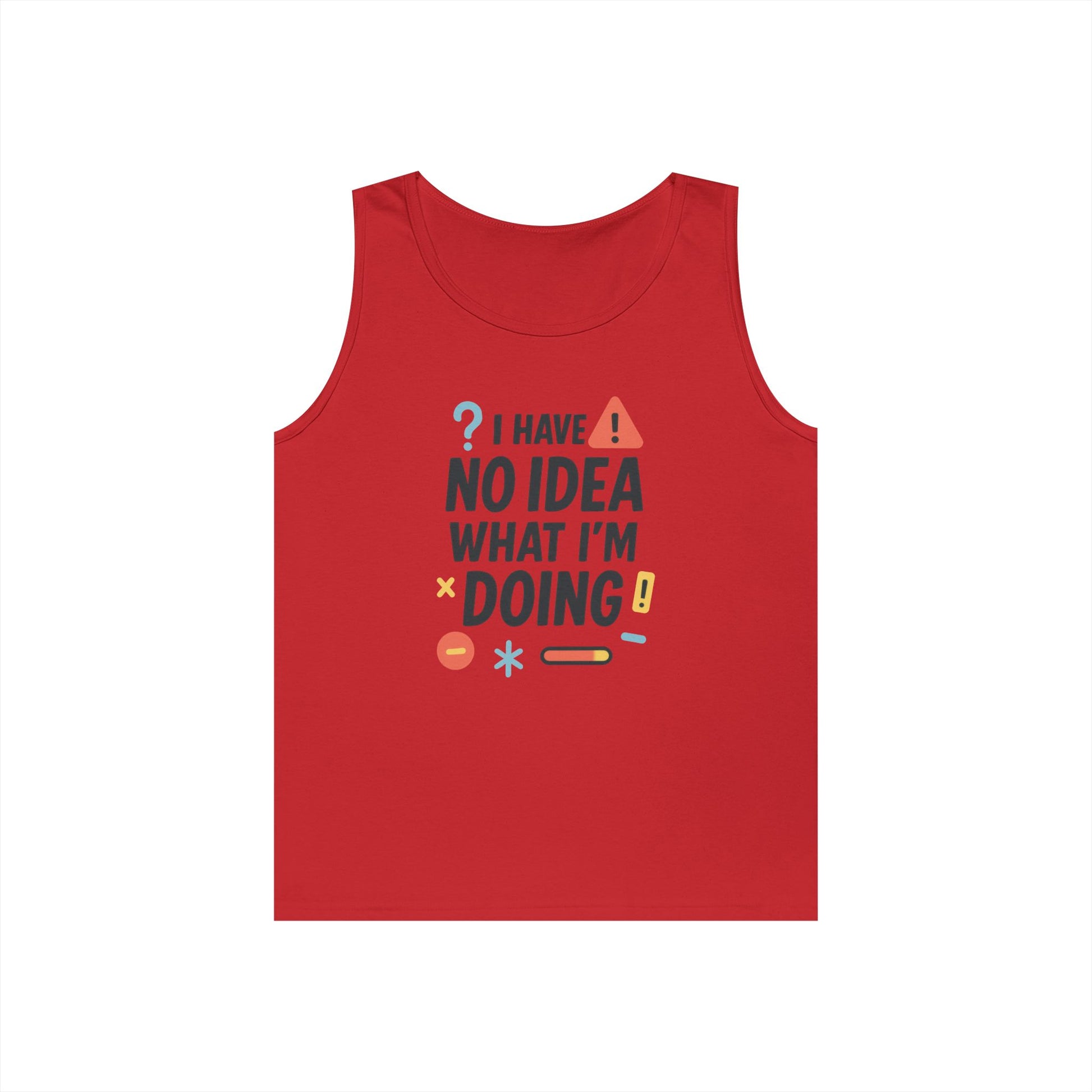 Funny Mens Heavy Cotton Tank Top, I Have No Idea What Im Doing, Sarcastic Chaos Humor Tee for Him, Summer Style, Playful Apparel