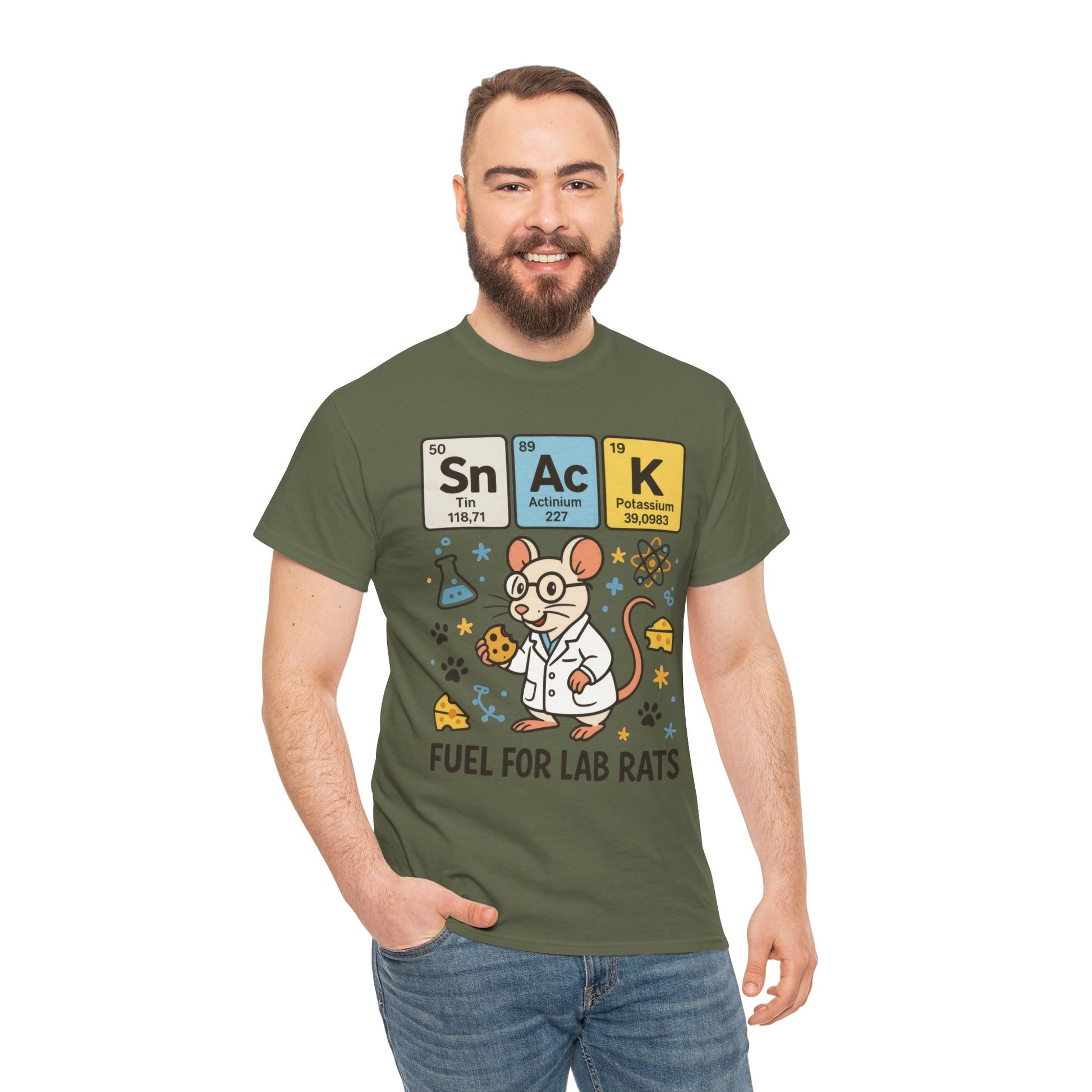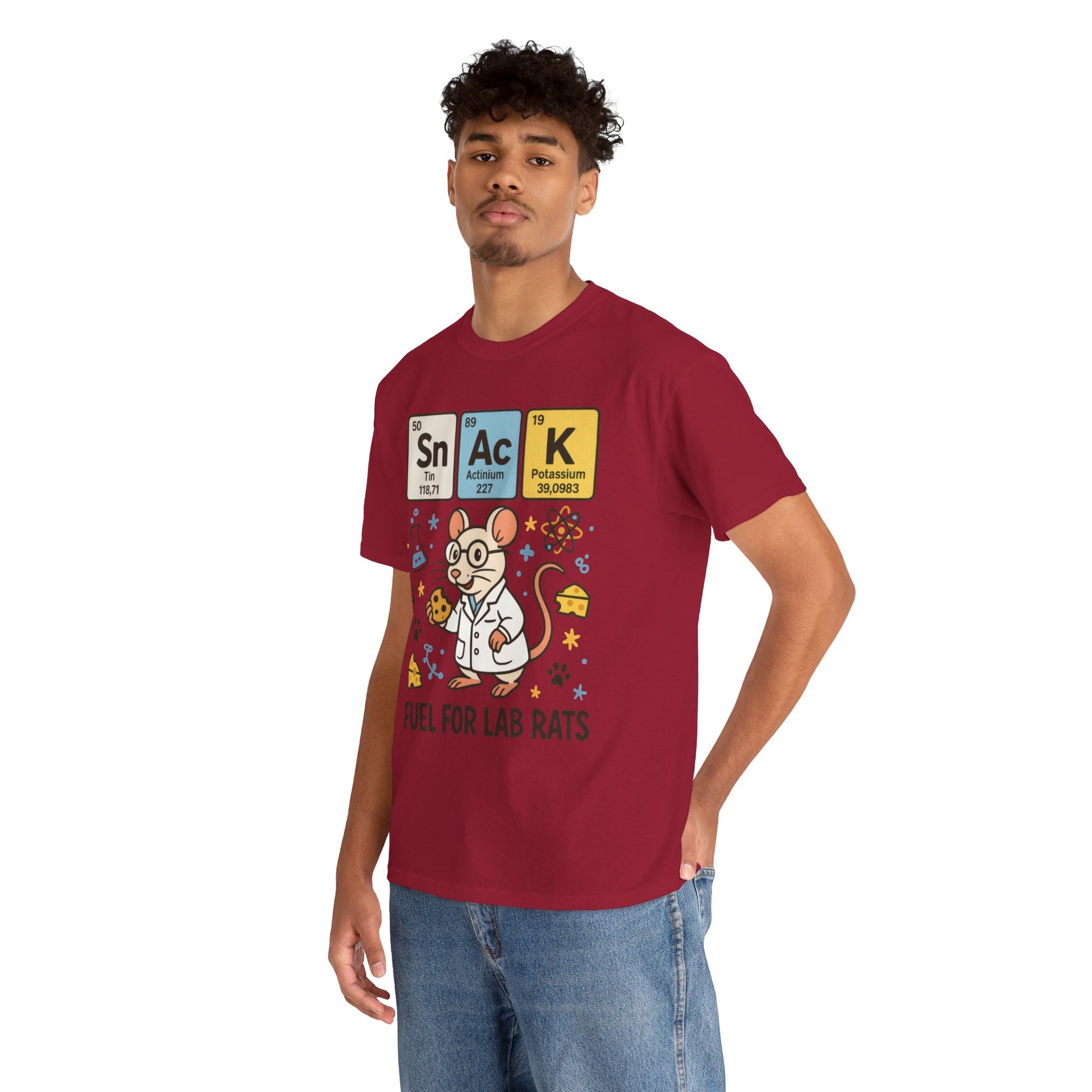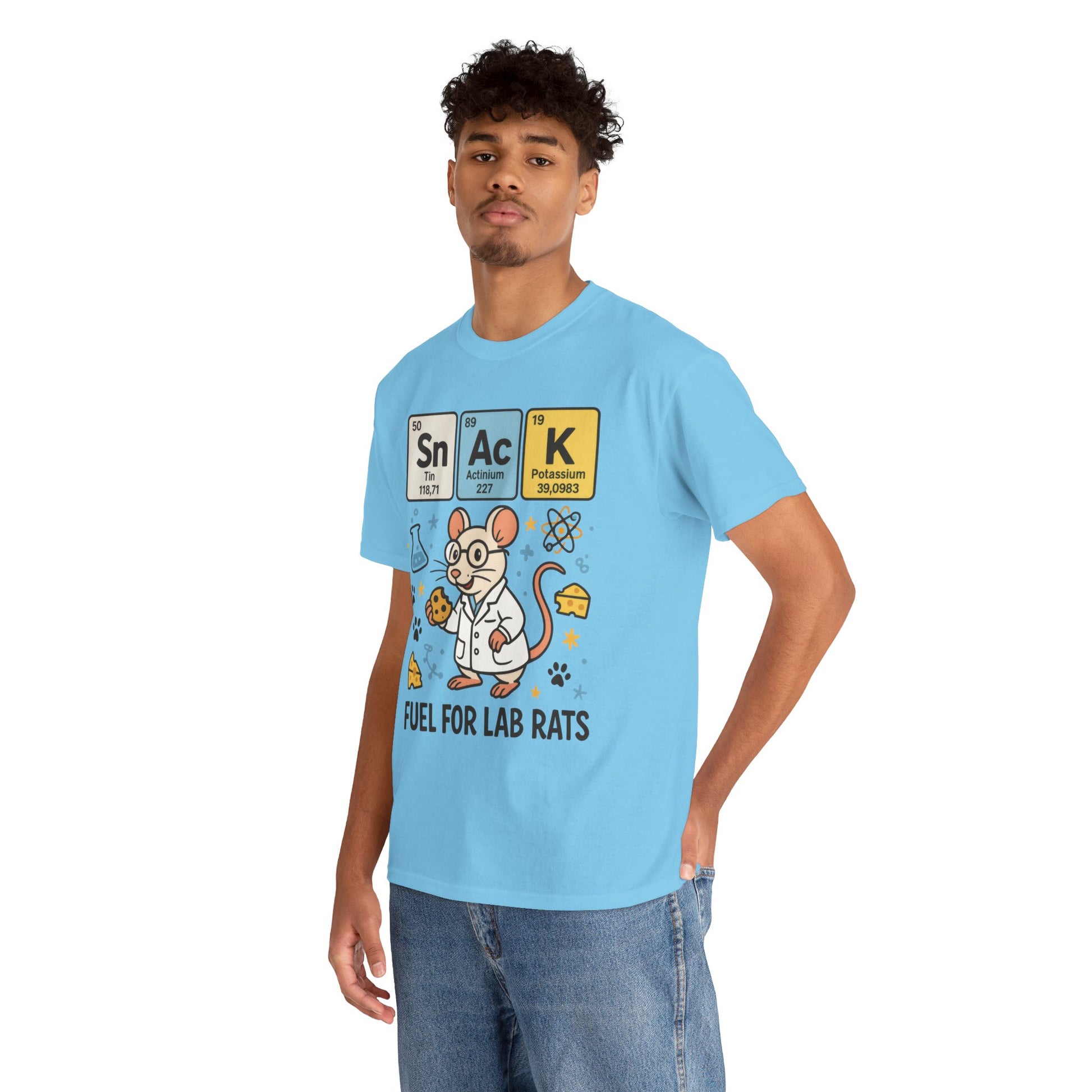 Introducing a fun and quirky Unisex Heavy Cotton Tee, perfect for those who love to blend humor with comfort. This tee, featuring a playful lab rat design, instantly brings a smile and adds a touch of whimsy to your wardrobe. Whether you're grabbing coffee with friends, attending casual gatherings, or simply lounging at home, this shirt enhances your everyday vibe with its relaxed fit and soft fabric. It's a great choice for science enthusiasts, educators, or anyone who enjoys a clever twist in their fashion. Ideal for gifting during holidays like National Science Day or special celebrations like birthdays. This tee promises to bring joy and laughter to any occasion! Product features - Shoulder tape for added durability and comfort. - Seamless construction for a smooth look and minimal waste. - Elastic ribbed collar maintains shape and style. - Made from sustainably sourced cotton for a soft touch. - Crisp print quality thanks to dual printing techniques. Care instructions - Non-chlorine: bleach as needed - Do not iron - Do not dryclean - Machine wash: cold (max 30C or 90F) - Tumble dry: low heat