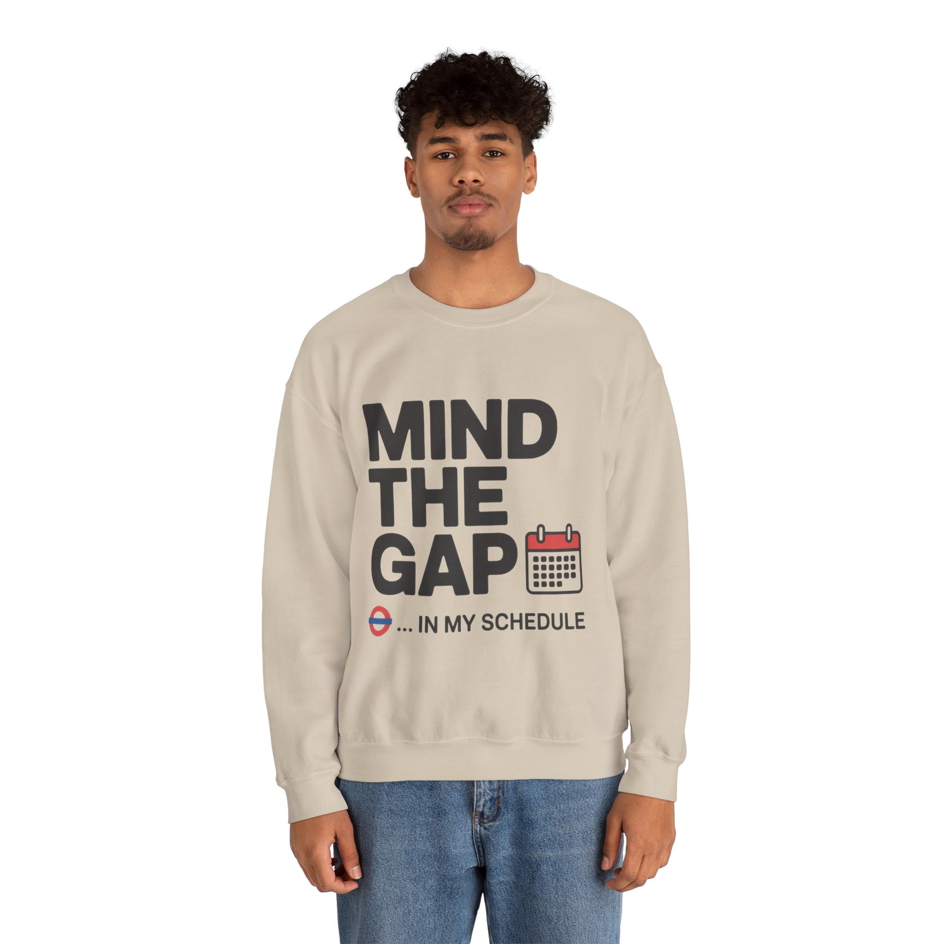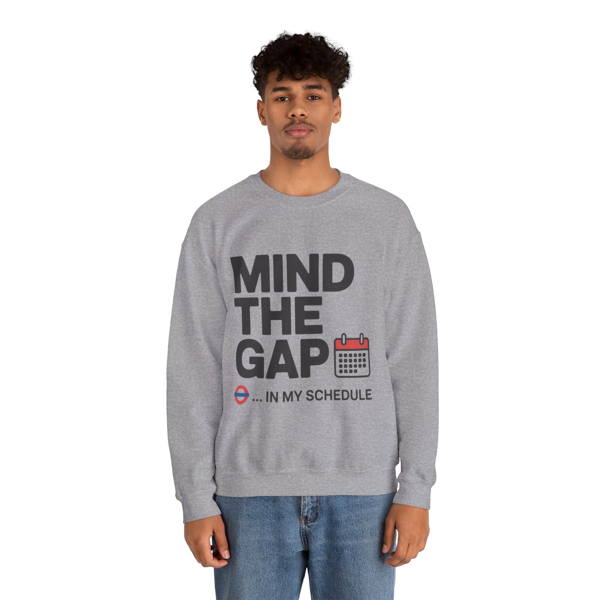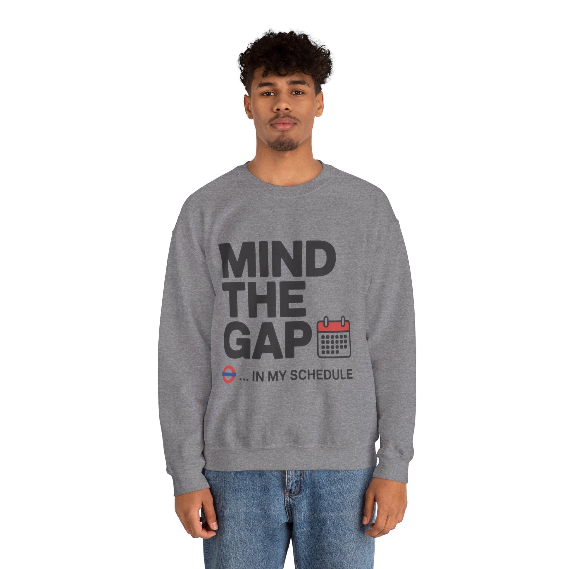 Funny Men's Sweatshirt, Mind The Gap Office Humor, London Underground Inspired Graphic Pullover