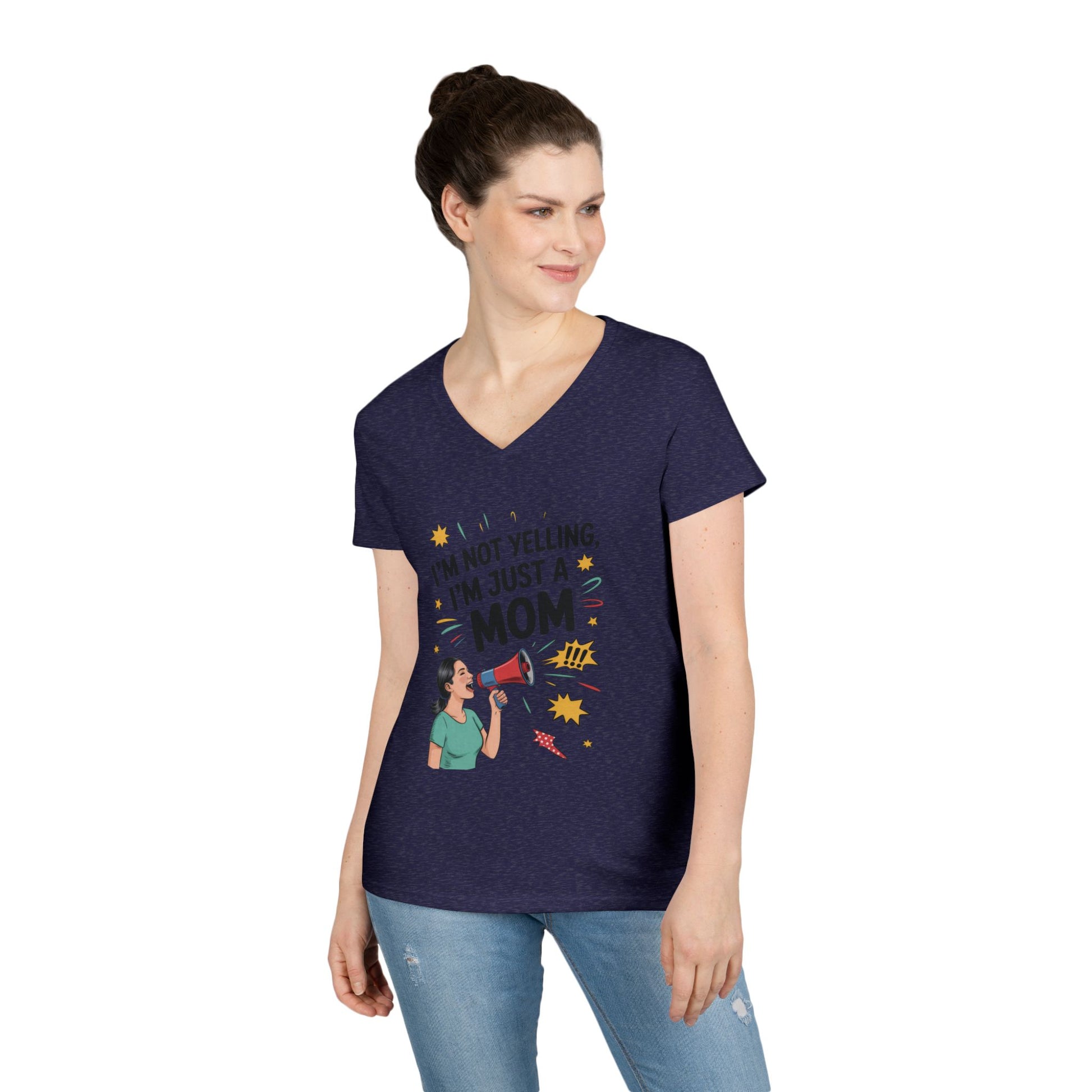 Funny Mom V-Neck T-Shirt, I'm Not Yelling I'm Just a Mom, Mother's Day Gift, Loud Mom Life T-Shirt, Mother's Day Apparel, Family Humor Shirt