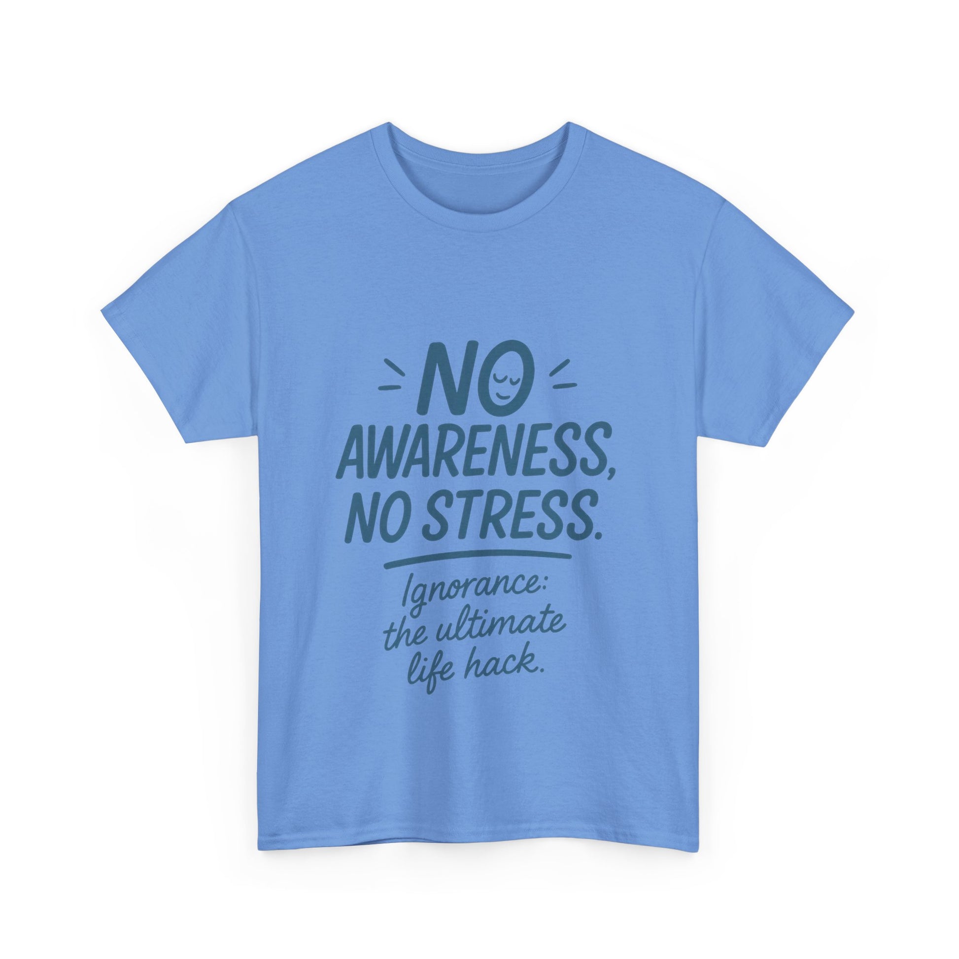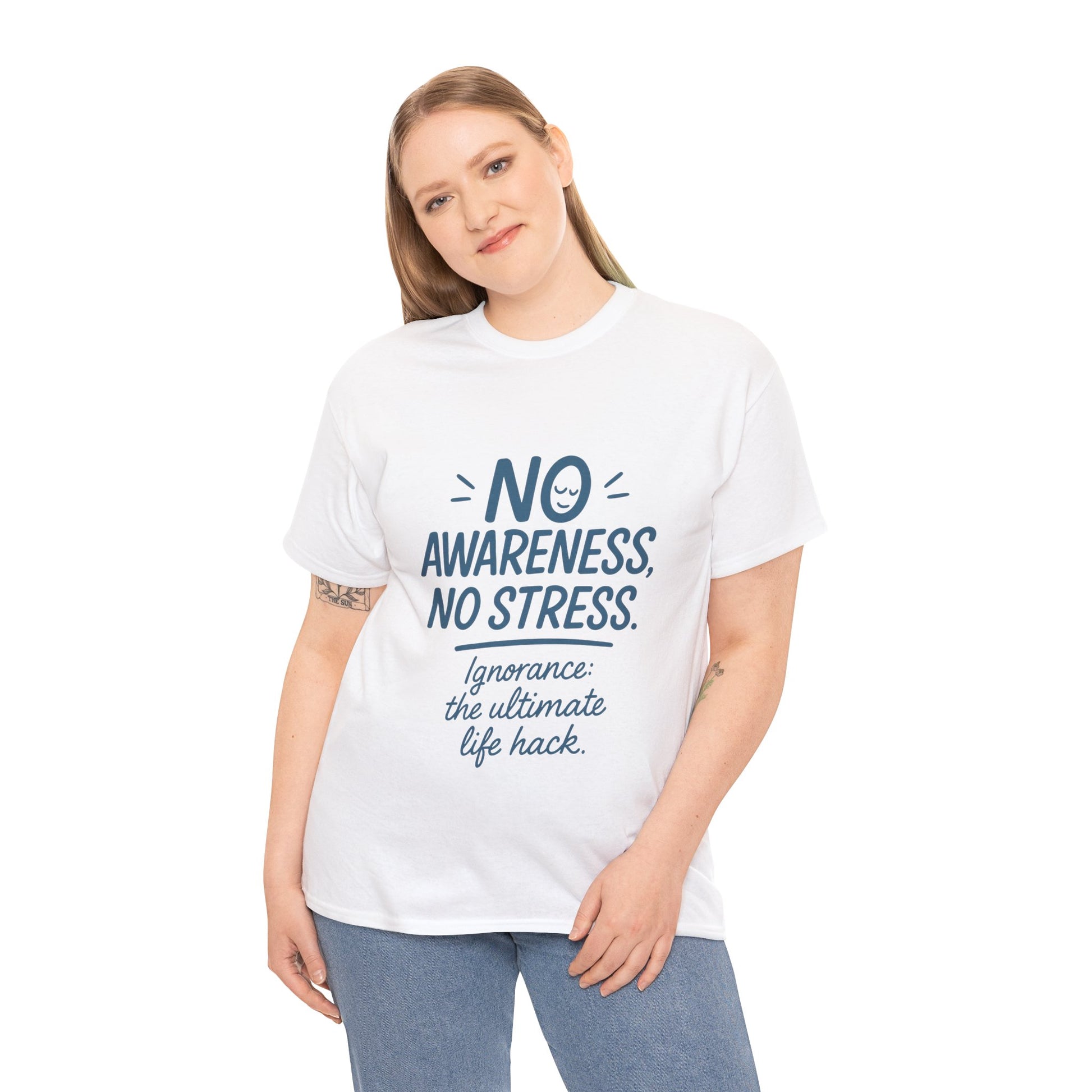 Funny No Awareness Womens T-Shirt, No Stress Quote Tee, Ignorance Is the Ultimate Life Hack, Relaxed Fit Gift, Motivational T-Shirt