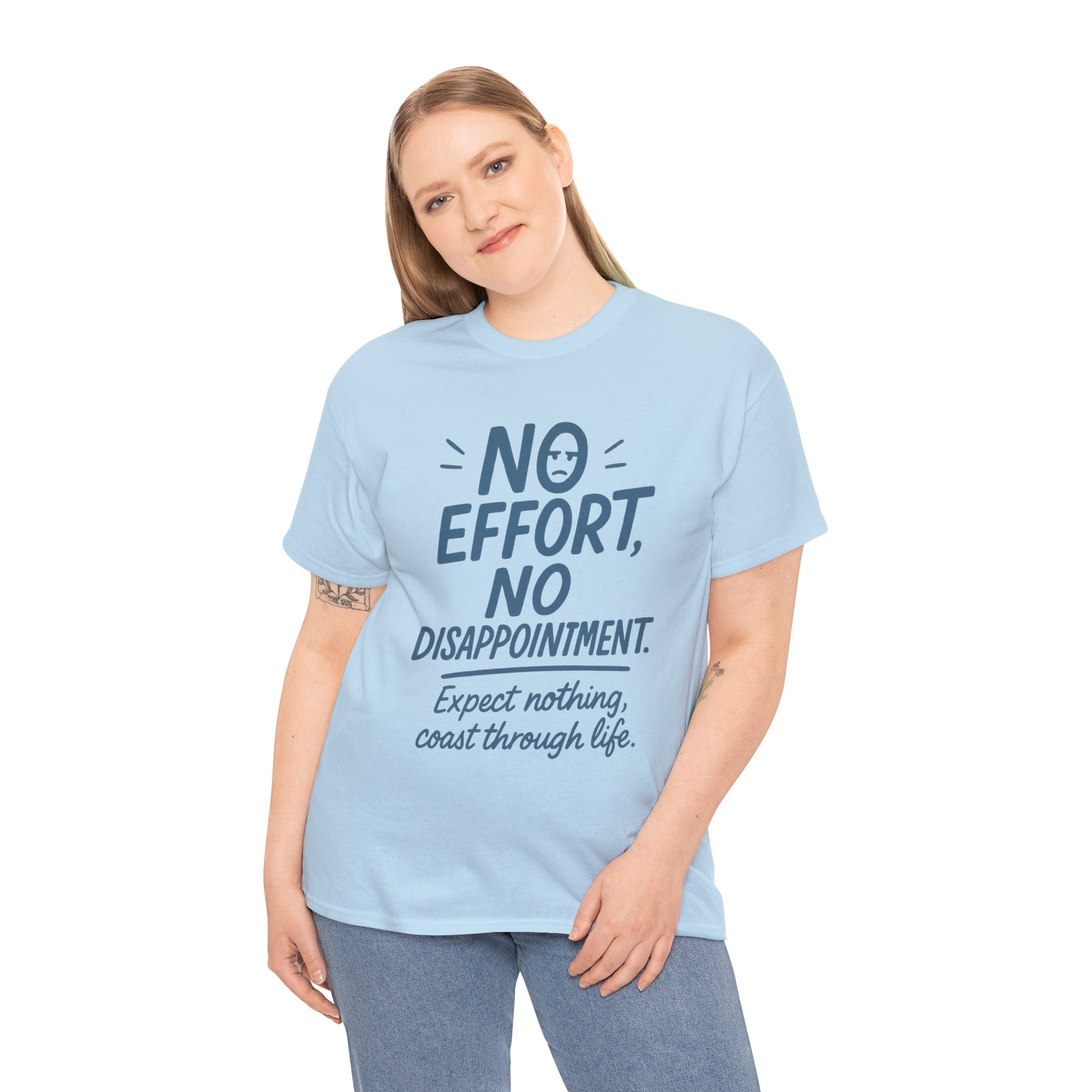 Funny No Effort Womens T-Shirt, No Disappointment Lazy Life Quote Shirt, Cute Graphic Tee for Her, Life Philosophy Shirt, Gift Idea